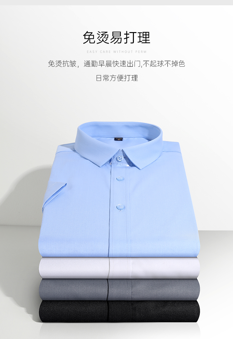 【通勤短衬】夏季纯色翻领男款半袖T恤短袖短衬衫衬衣上衣休闲百搭通勤经典简单大方顺滑免烫修身短衬