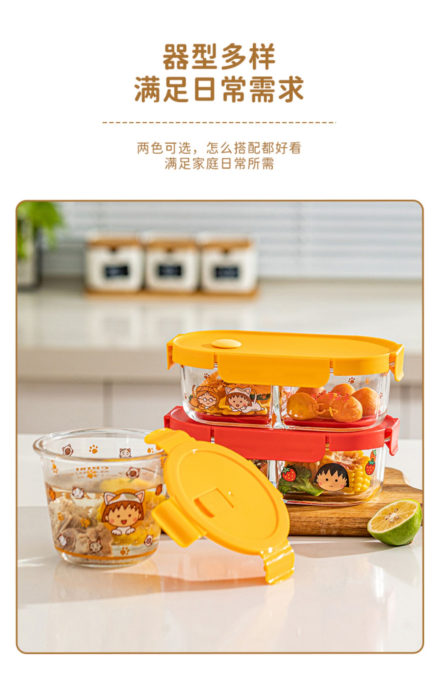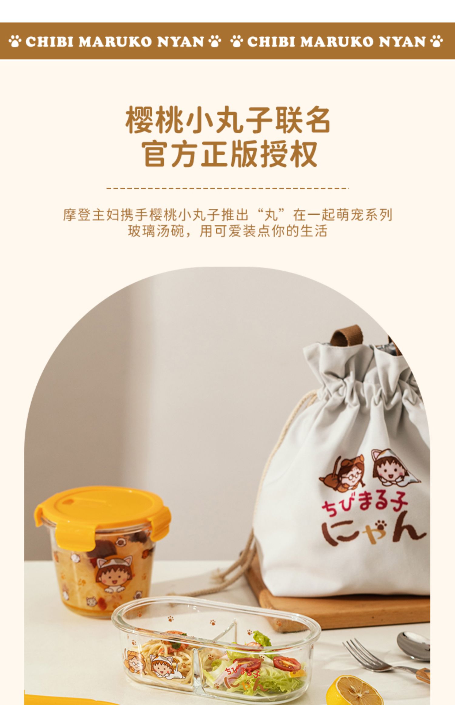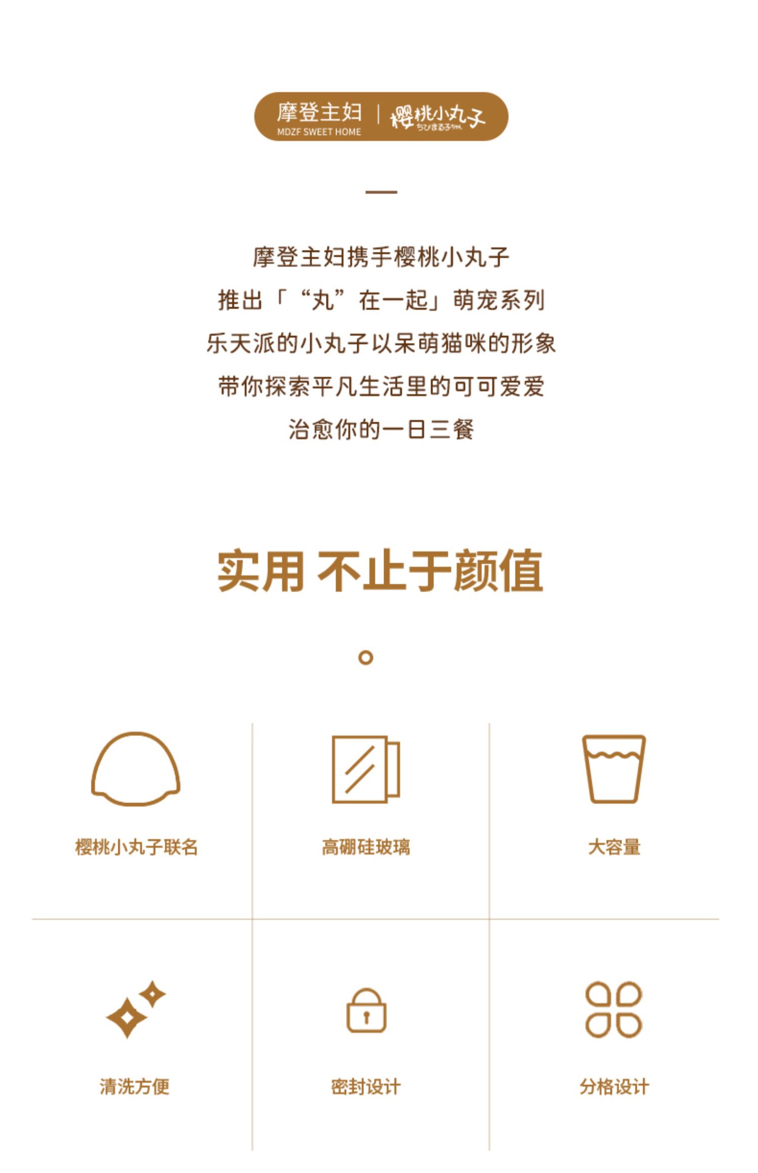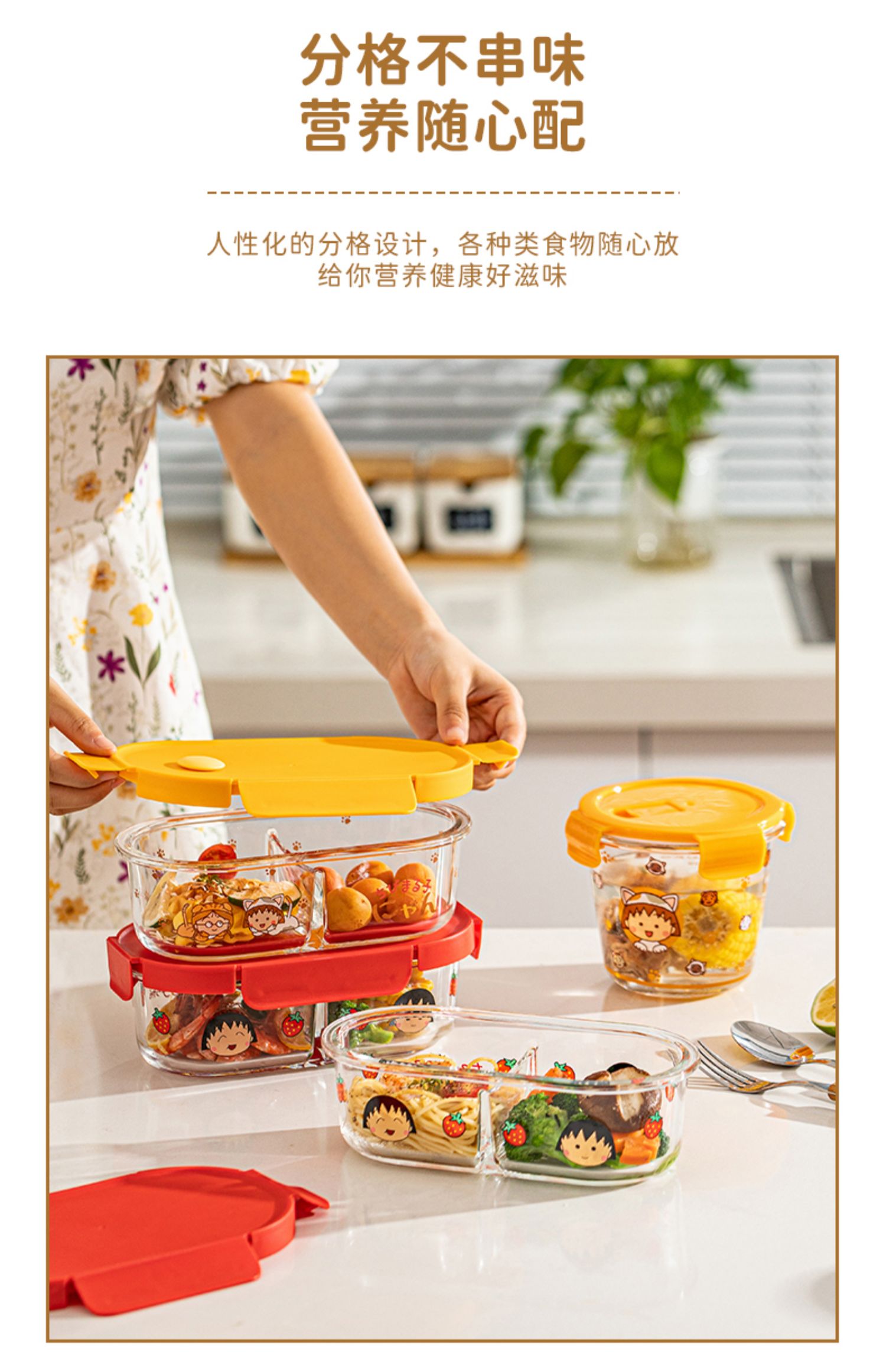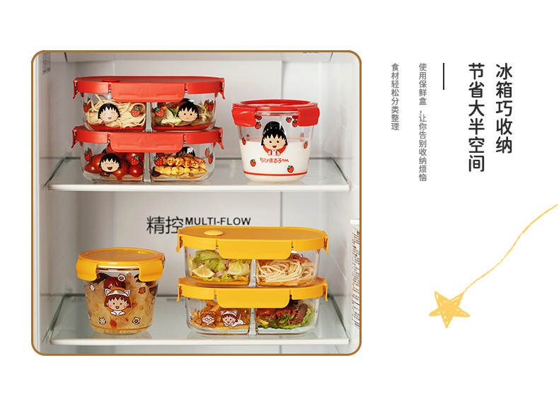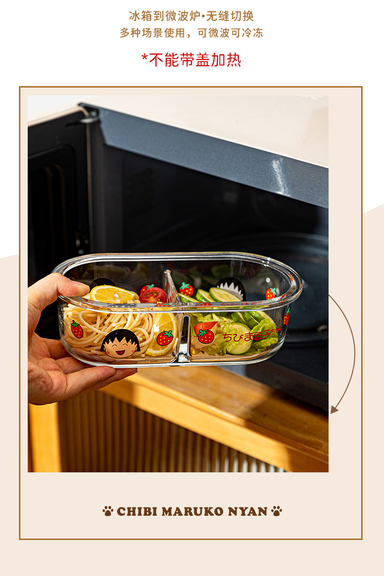【摩登主妇&樱桃小丸子联名】玻璃饭盒微波炉加热专用保鲜便当盒