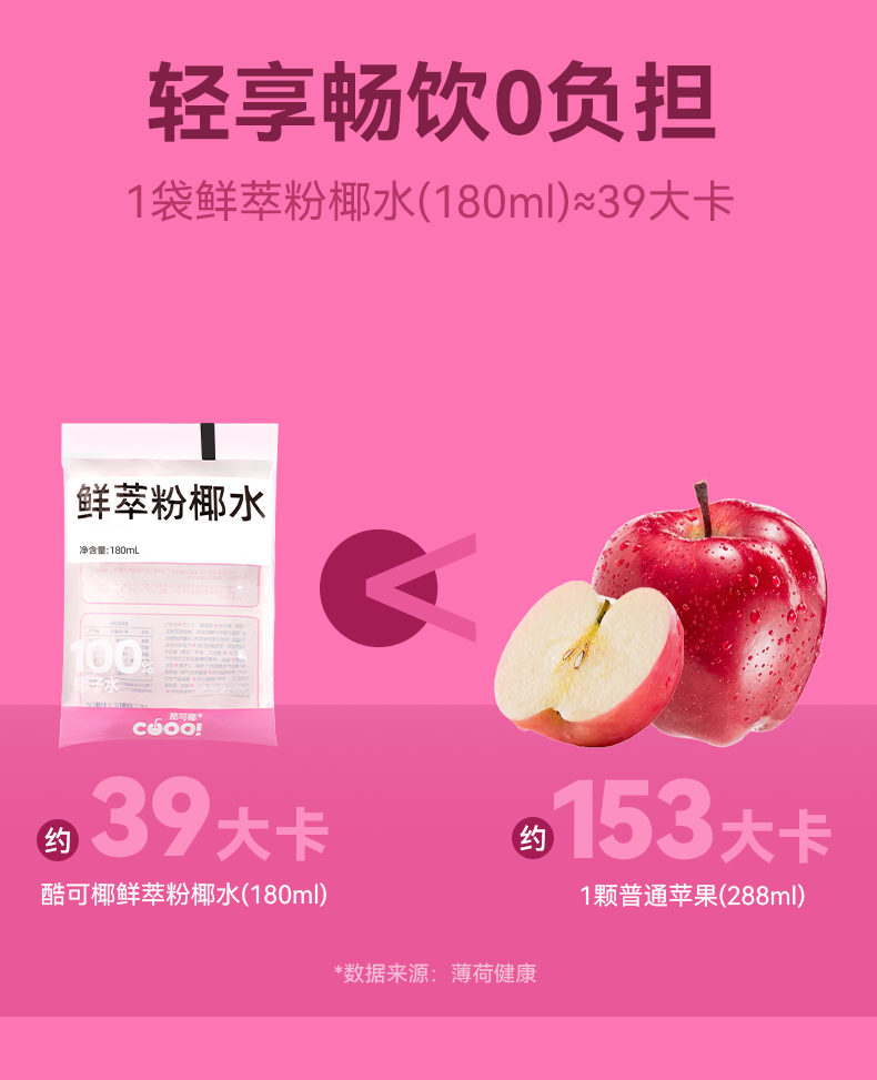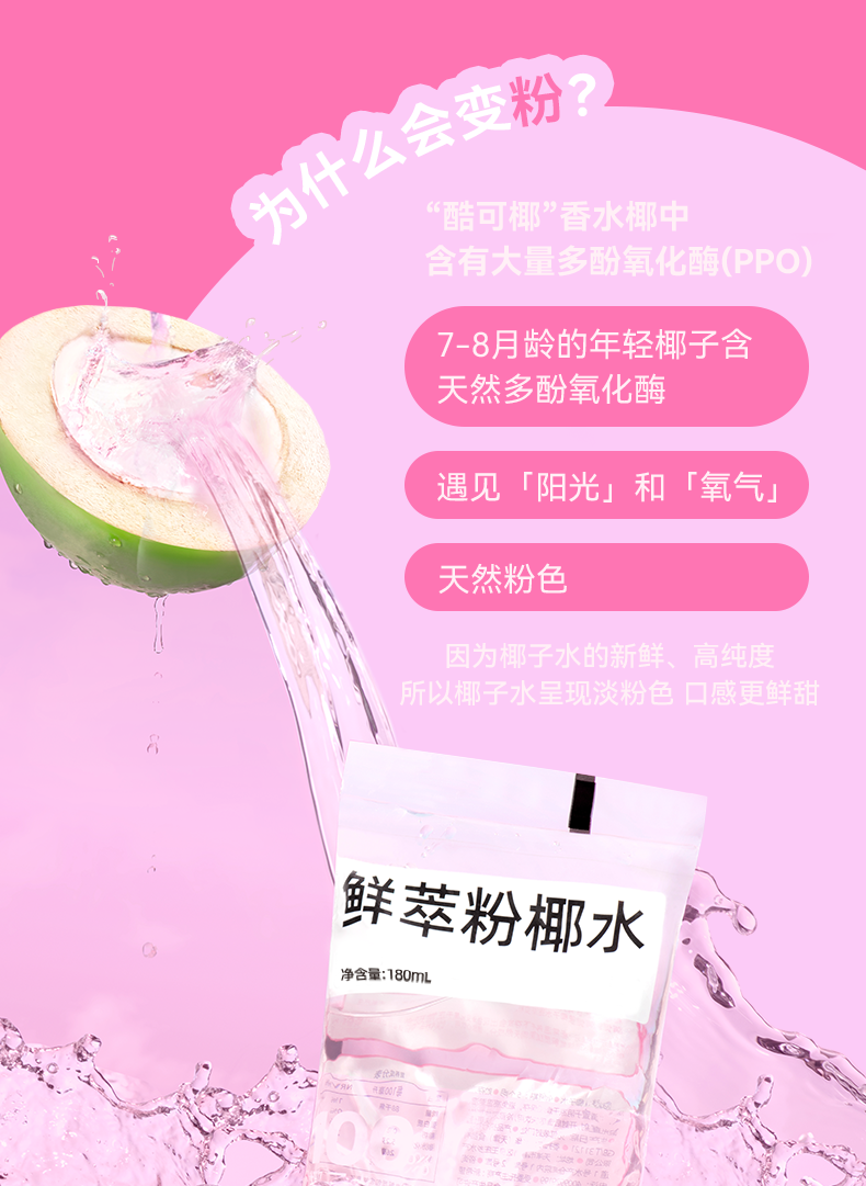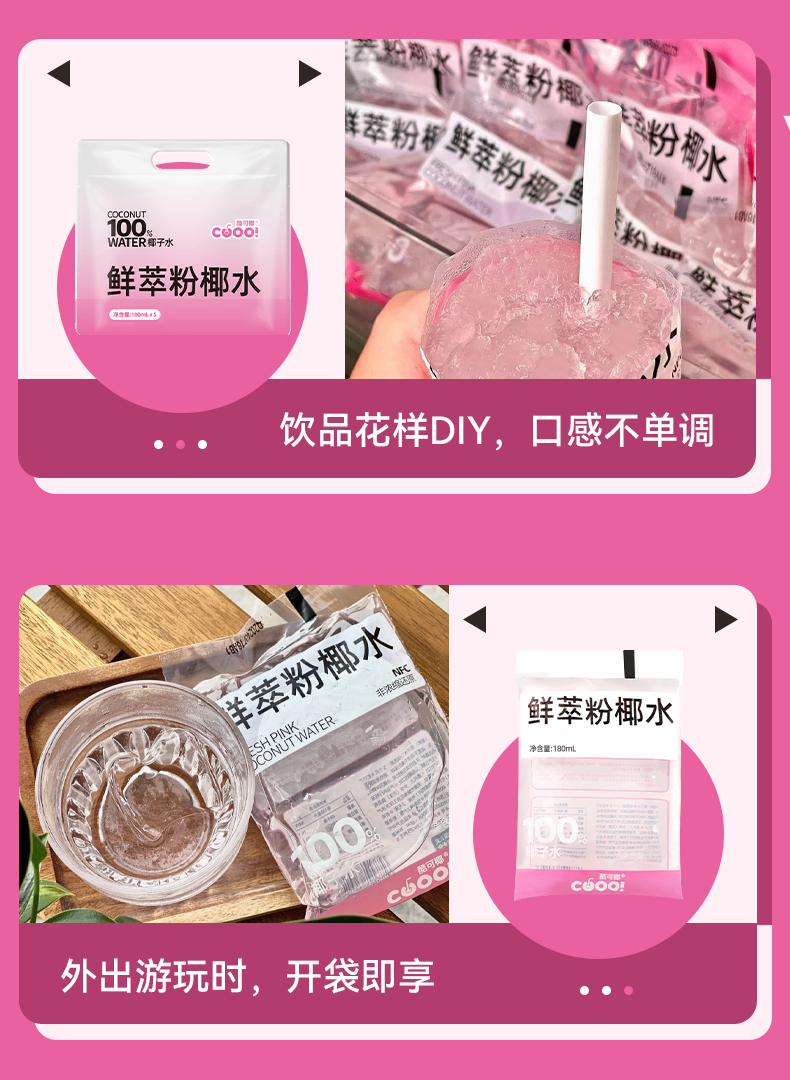 100%鲜萃!酷可椰【100% 粉红椰子水】天然电解质饮料,泰国进口香水椰,NFC鲜萃工艺,100%椰子水, 180ml/袋 300ml/瓶
