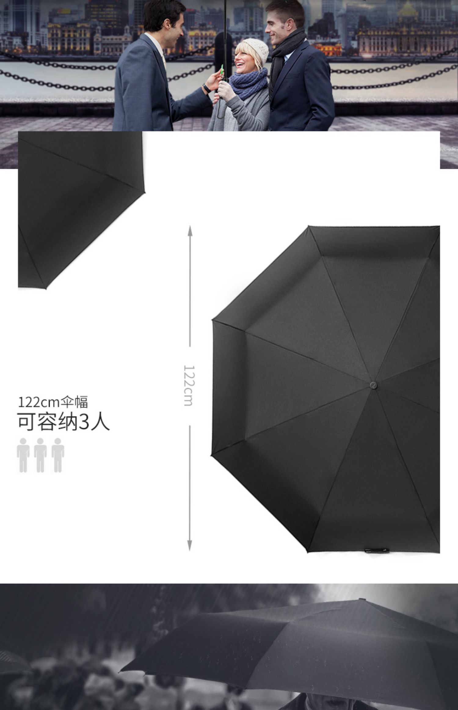 富尔顿 超大 全自动 折叠 商务 晴雨伞男士