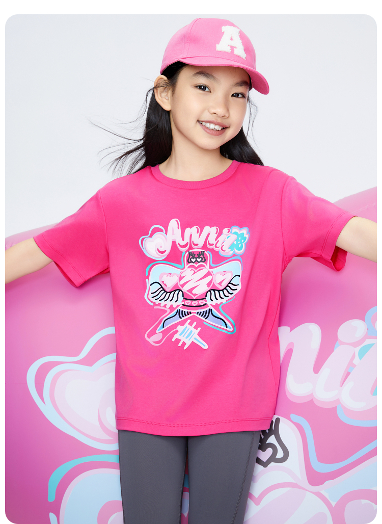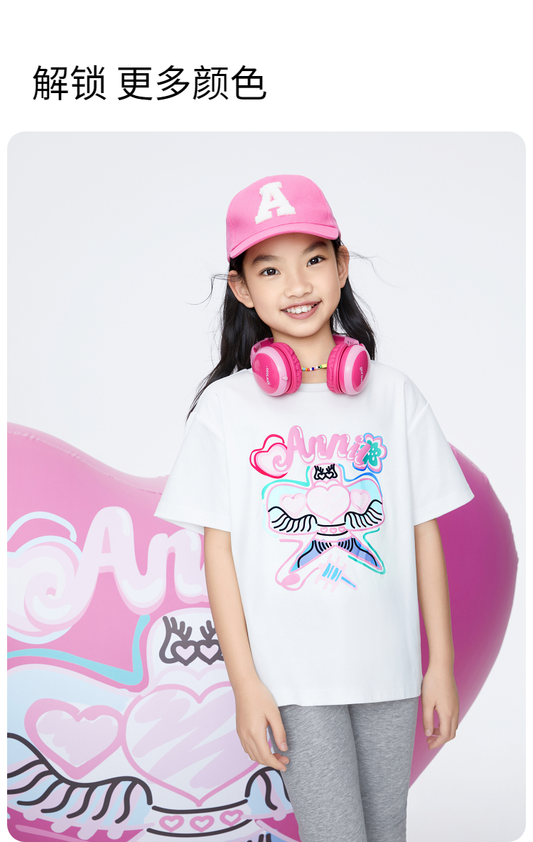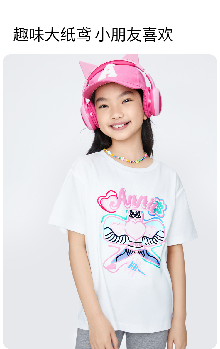 女童趣味全棉T恤圆领短袖夏季新款安奈儿童装实体店同款AG421776