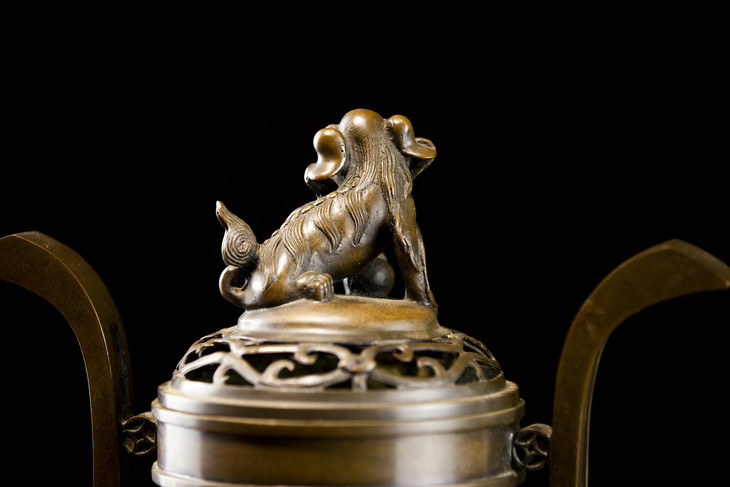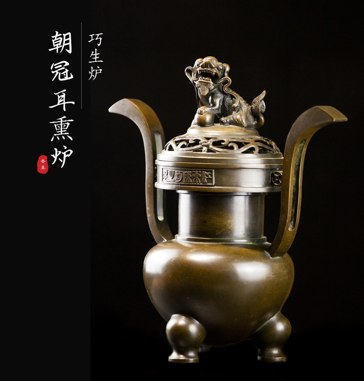 朝冠耳语出《宣德彝器图谱》卷十四。陈巧生保留原炉耳之灵秀飘逸,将原器低矮之炉身拉长。炉足上腴下俏,既仰炉腹之鼓圆,又应炉耳之伶俐。