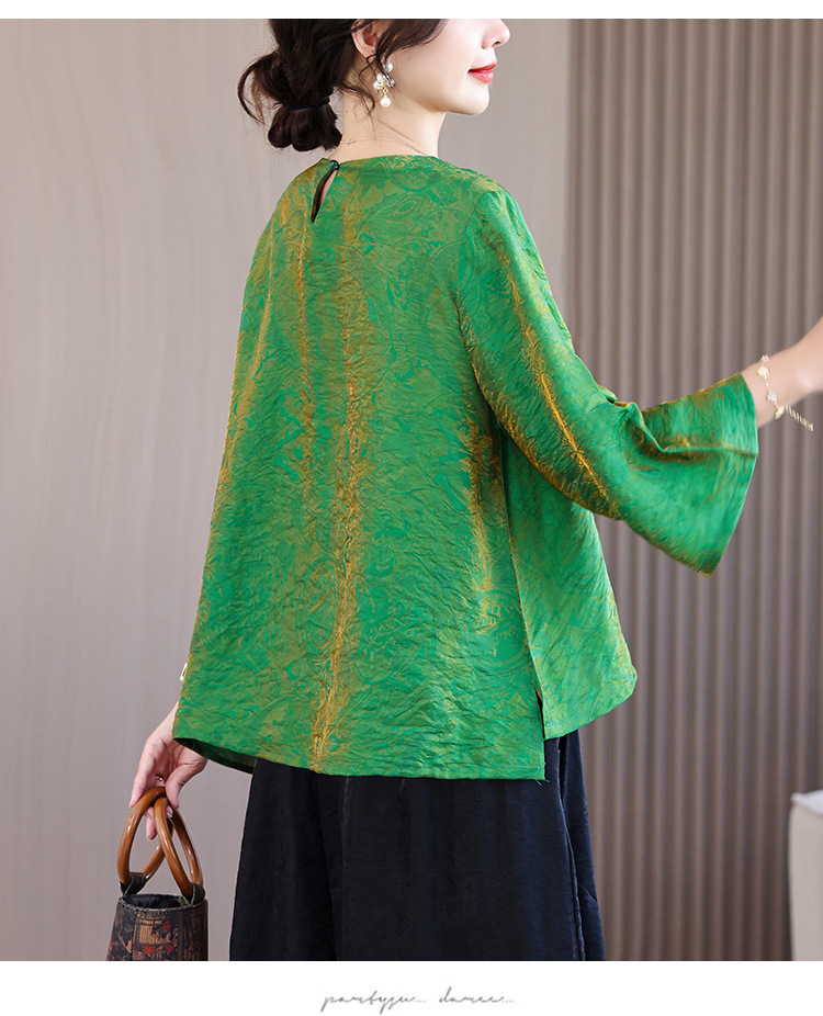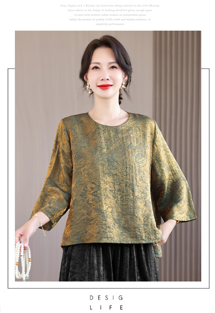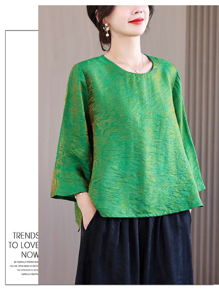 KQL 422H2858新中式新款宽松上衣复古提花新中式