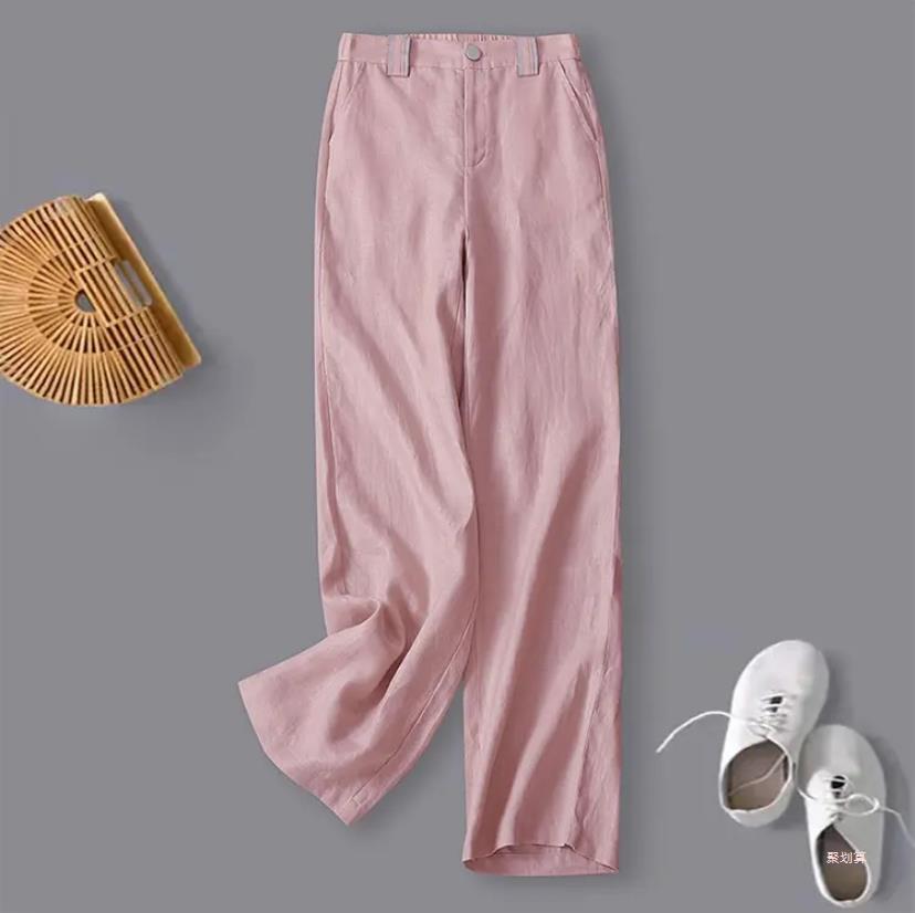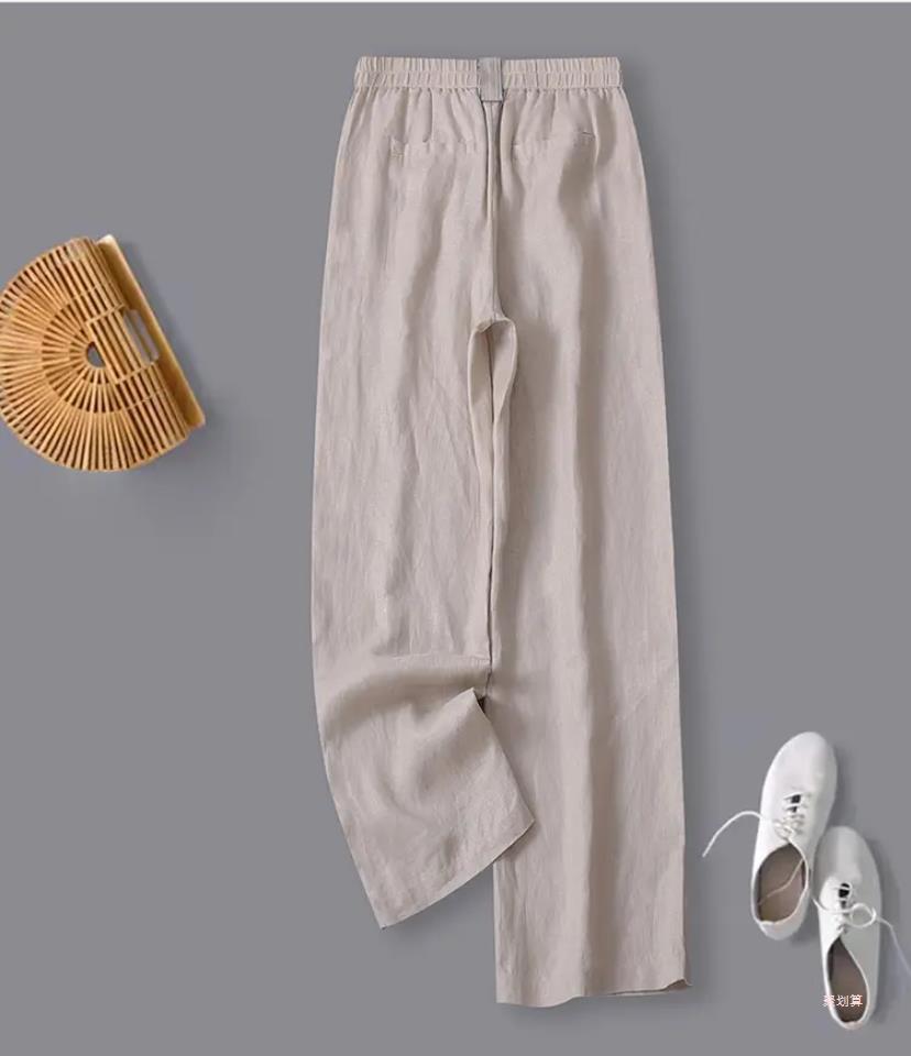 1-MYX-6809亚麻天丝阔腿裤女夏季2025新款高腰垂感防晒棉麻直筒休闲长裤薄款
