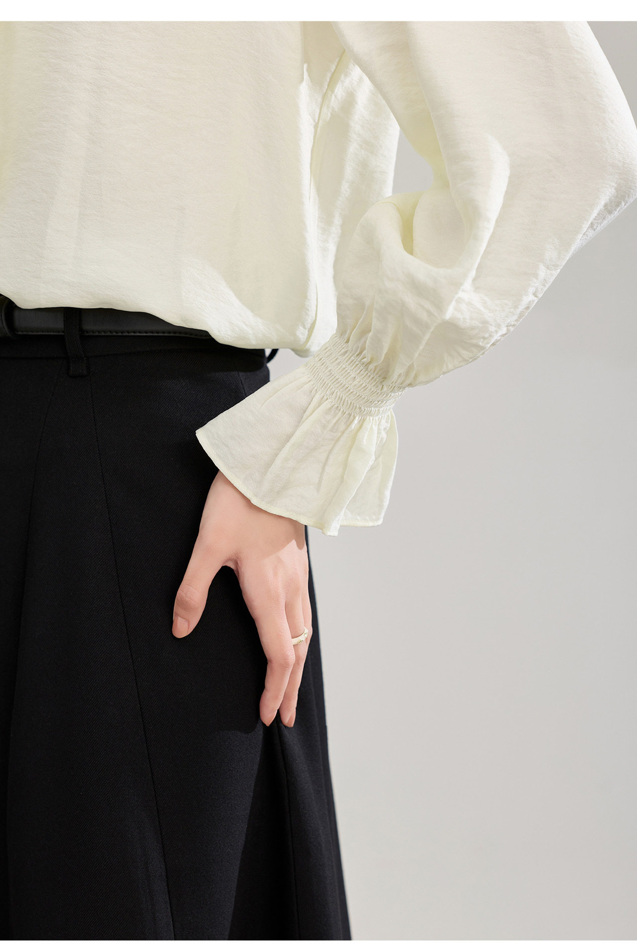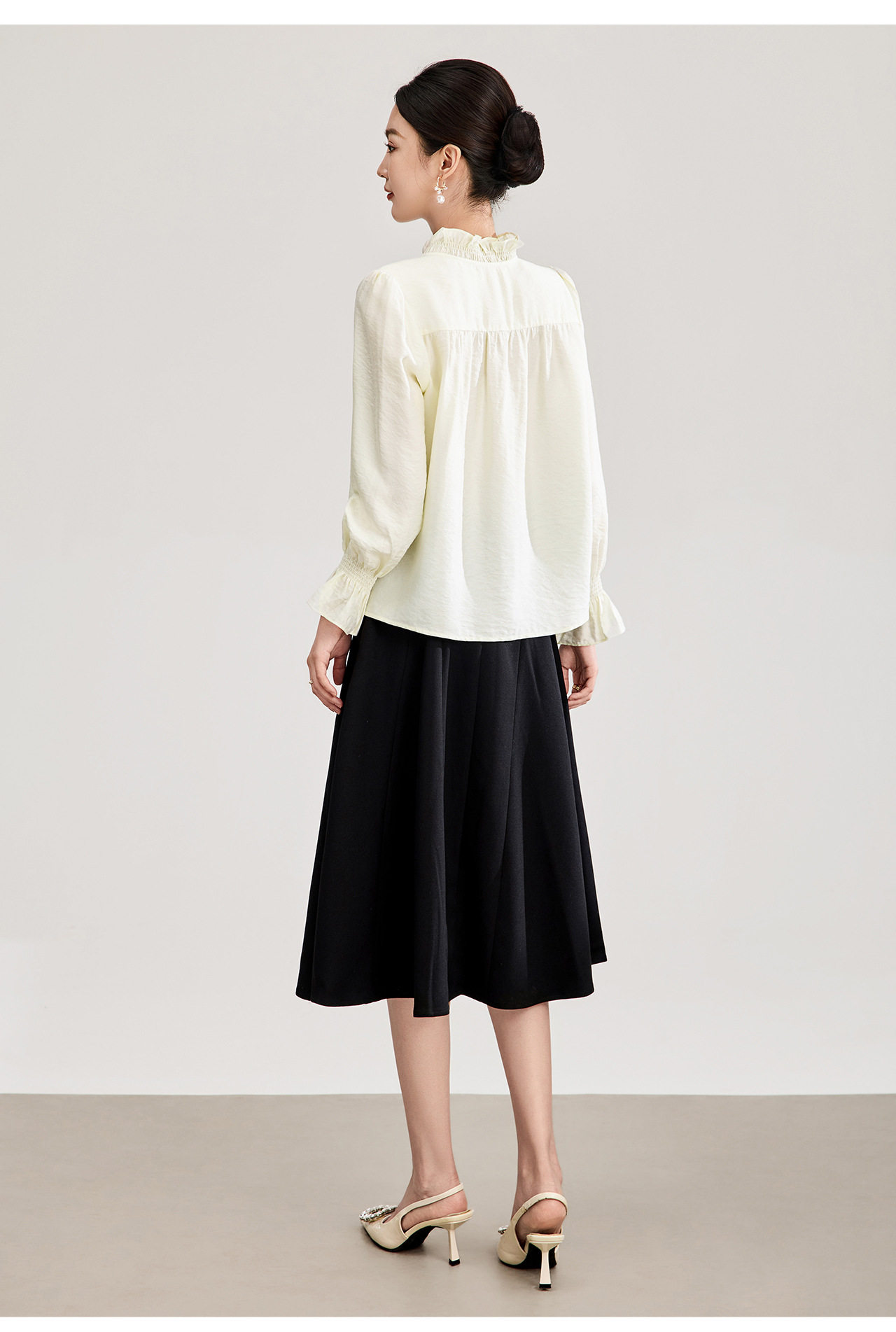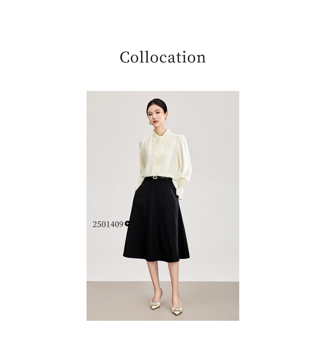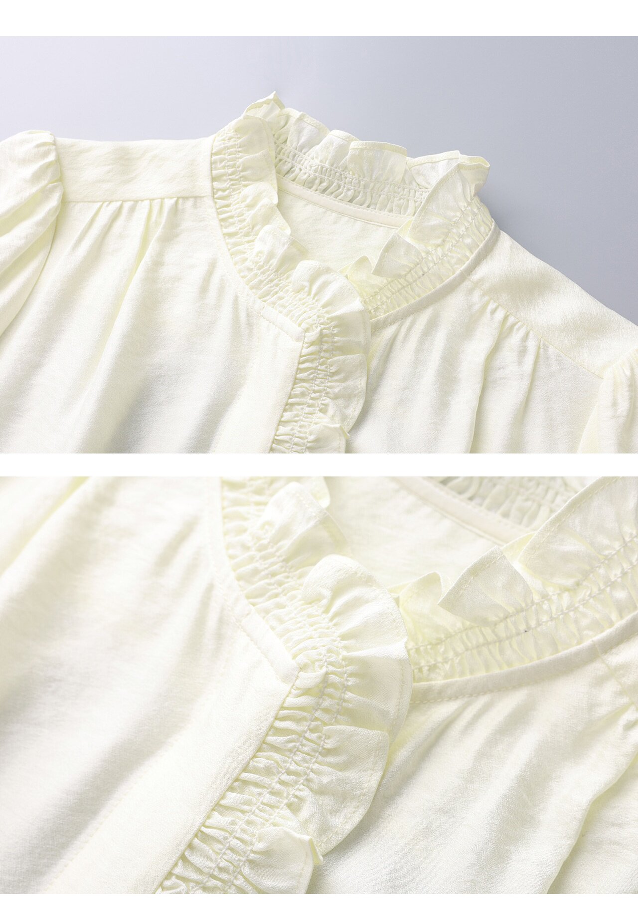 「高货wl」全新升级【铂金会员247/天猫329/差价82】(01839)洛诗琳宫廷风木耳边立领上衣2026春季新款洋气雅致肌理绉感天丝衬衫女