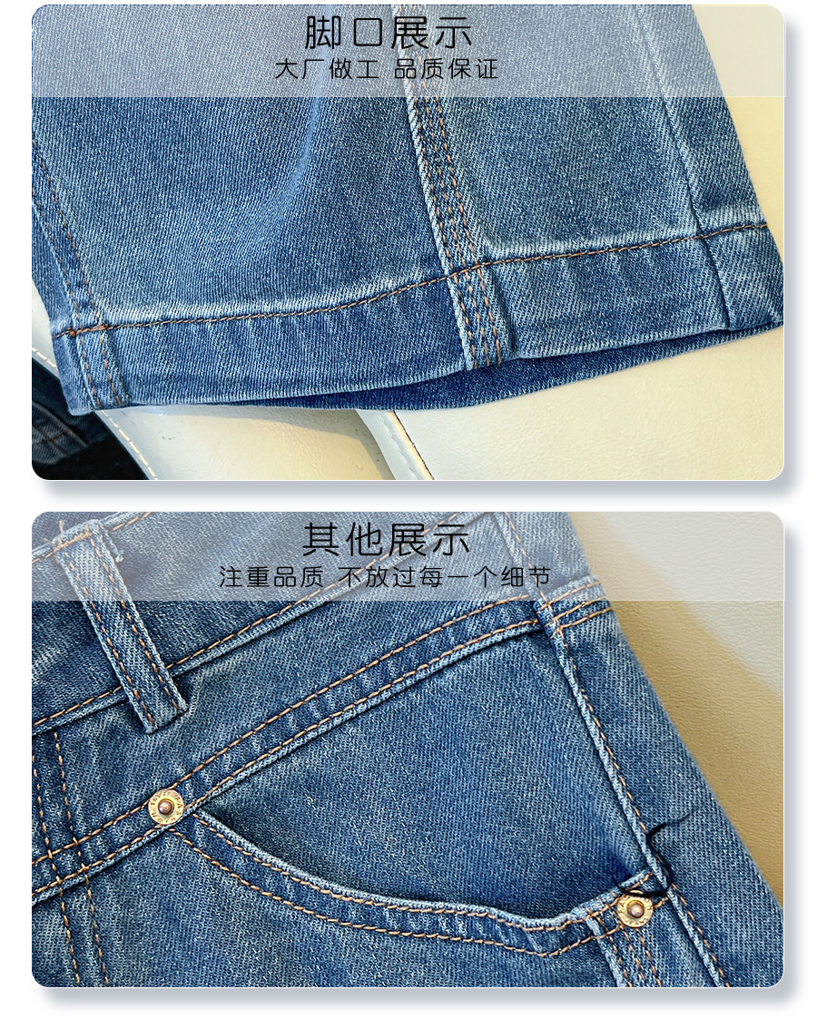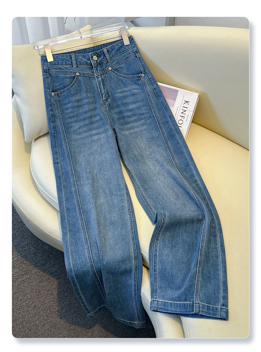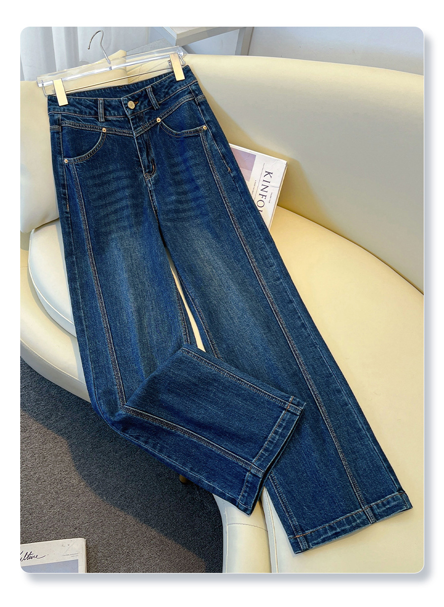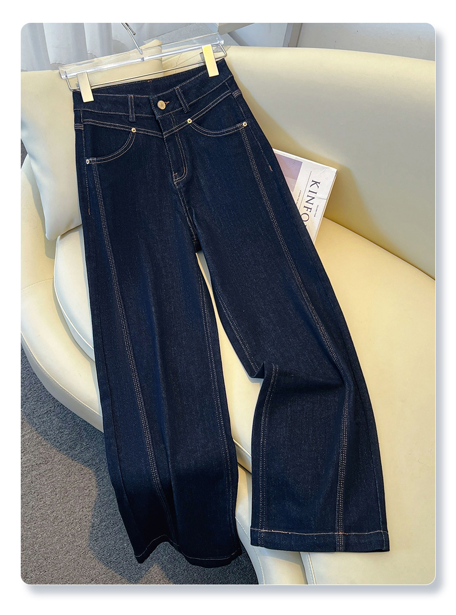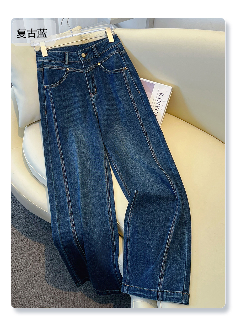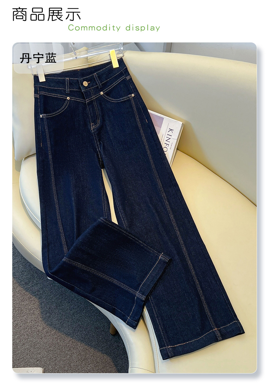 丁摩 丹宁蓝阔腿牛仔裤女秋冬加绒高腰宽松显瘦九分直筒裤5ZF-22029