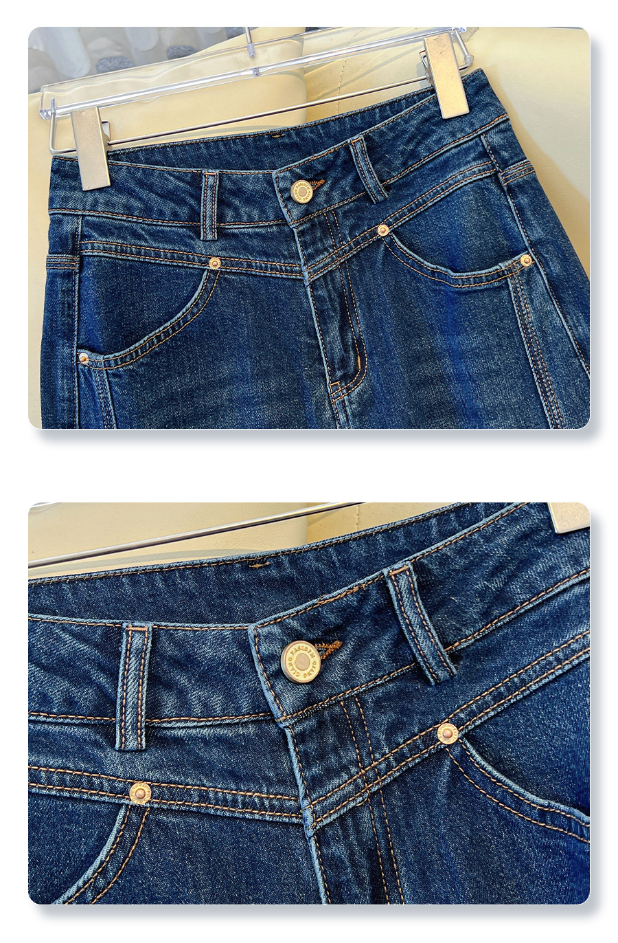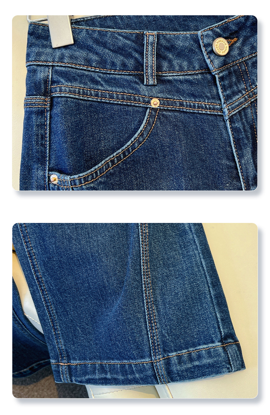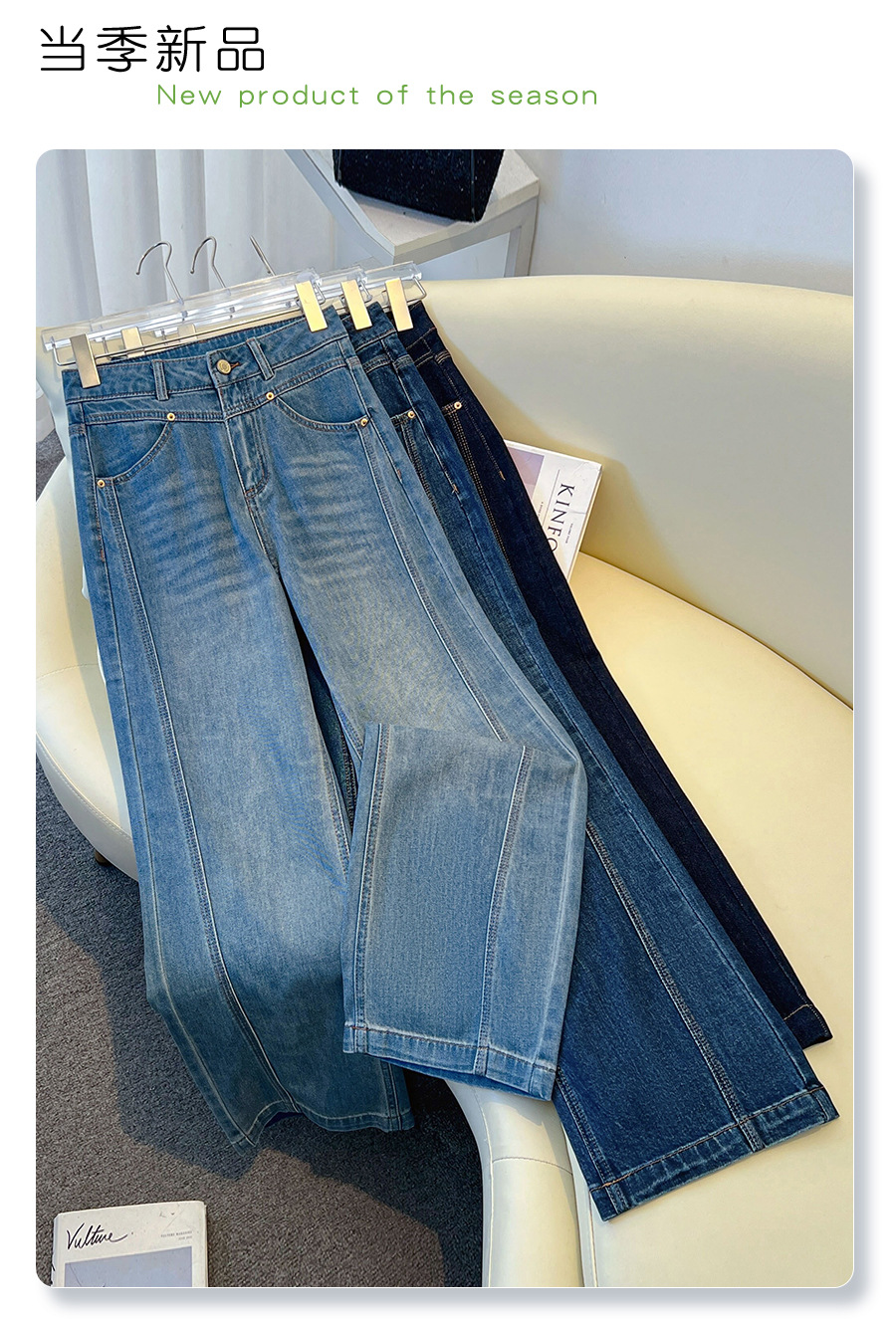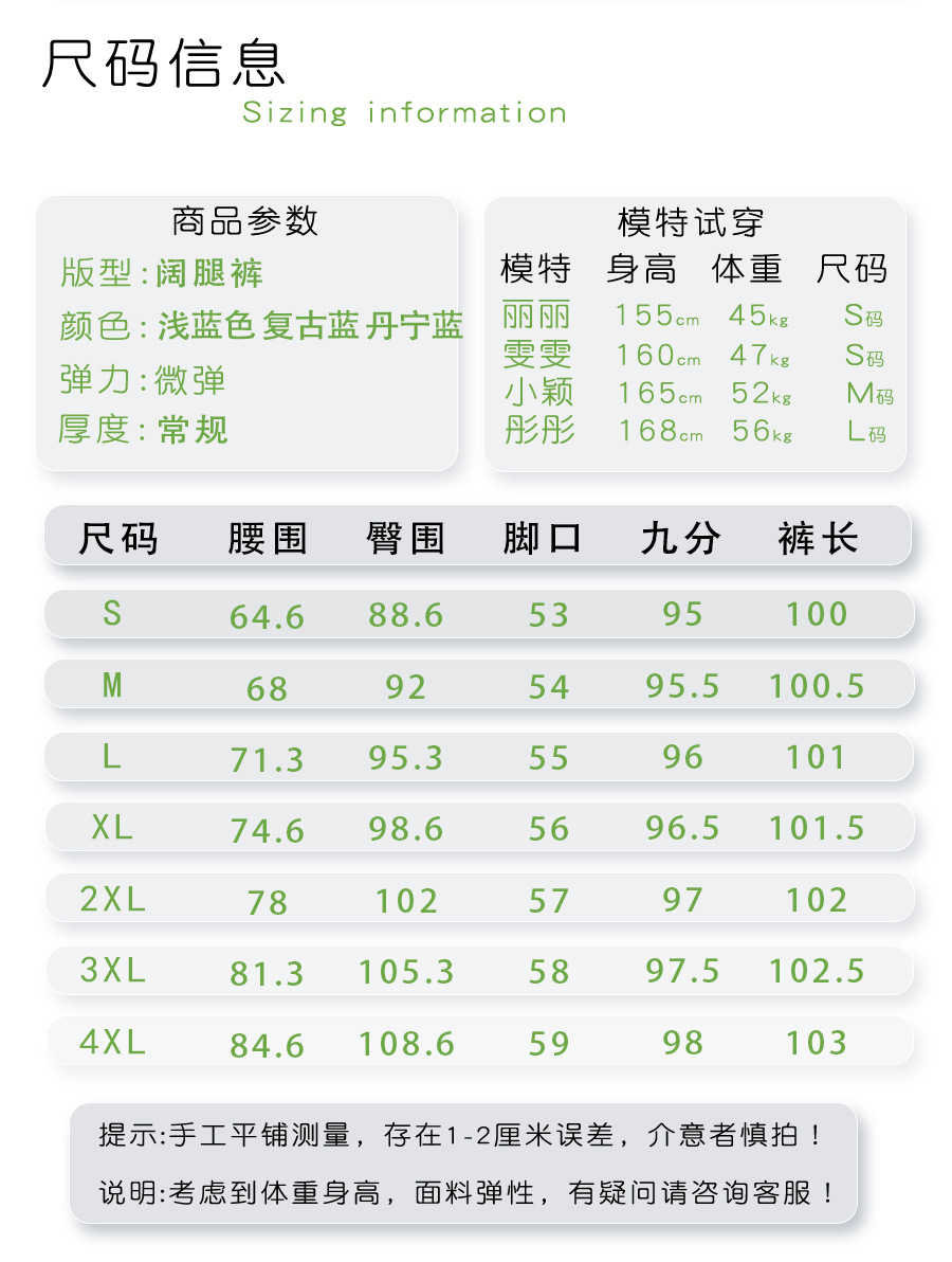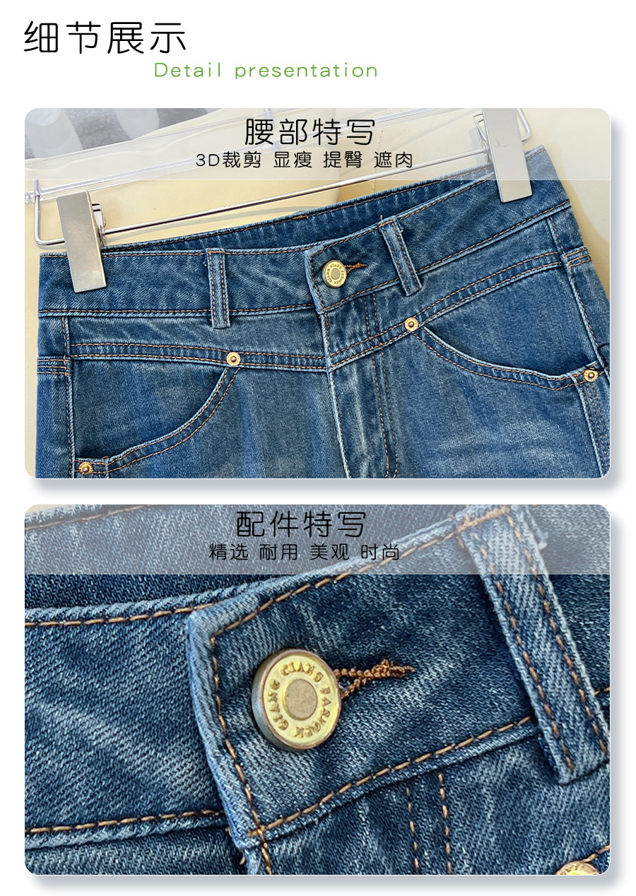 丁摩 丹宁蓝阔腿牛仔裤女秋冬加绒高腰宽松显瘦九分直筒裤5ZF-22029