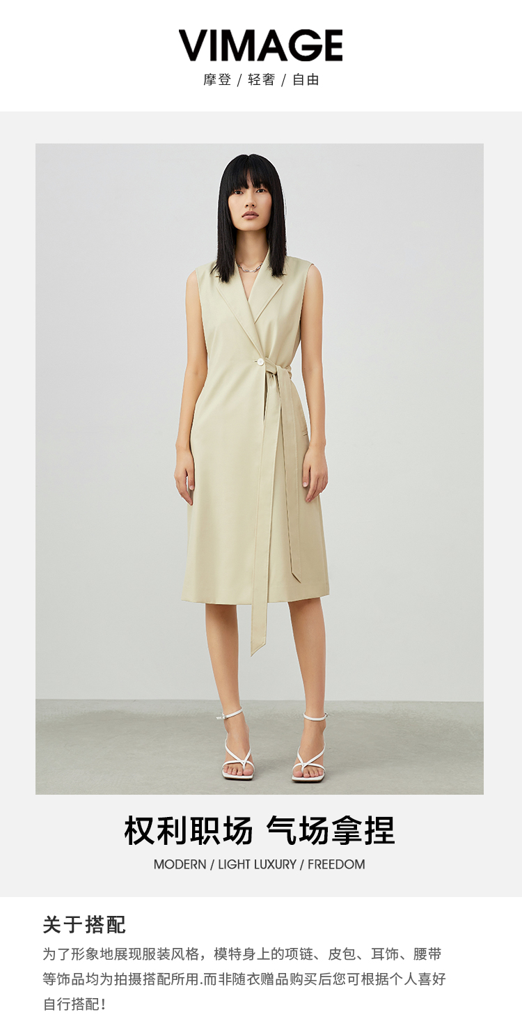 VIMAGE纬漫纪春夏季新款飞袖系带干练帅气修身A字西装连衣裙V1707353