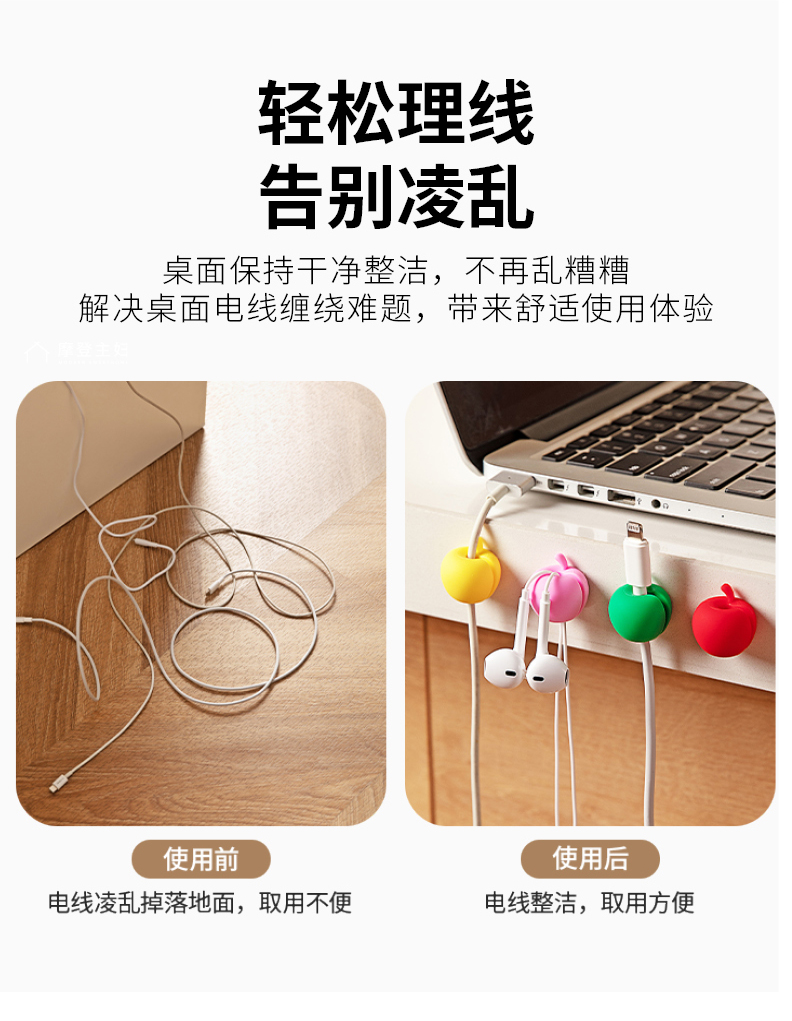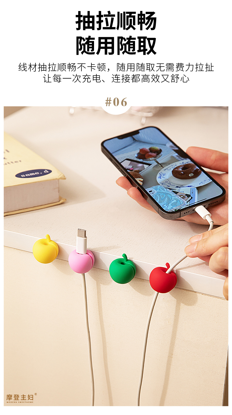 摩登主妇数据线固定器桌面手机充电线收纳理线器有线耳机整理卡扣