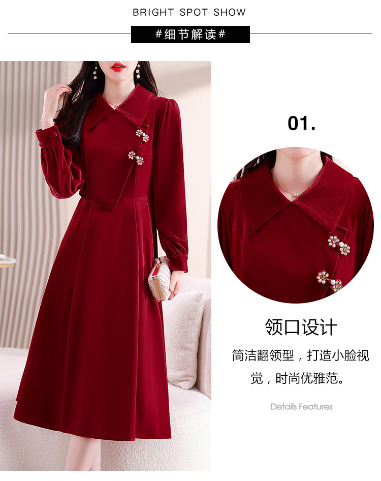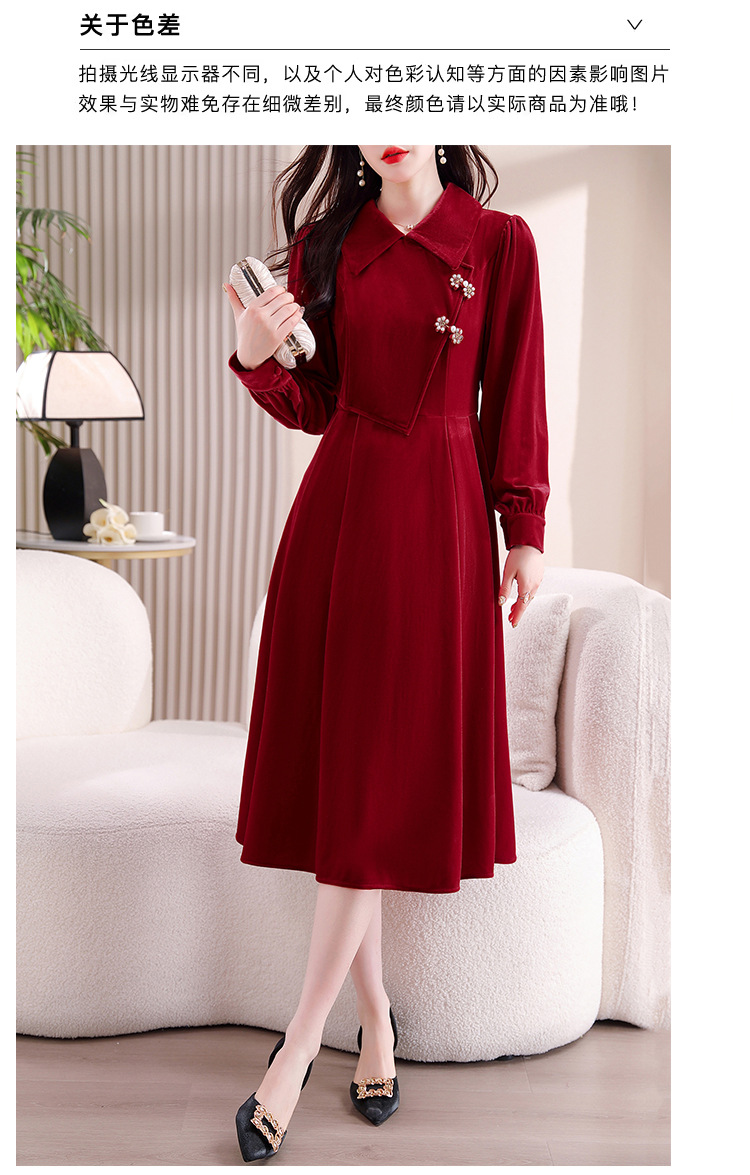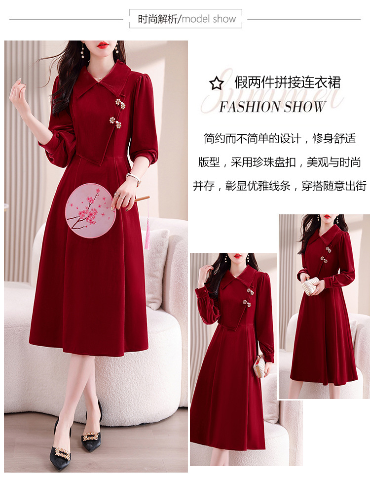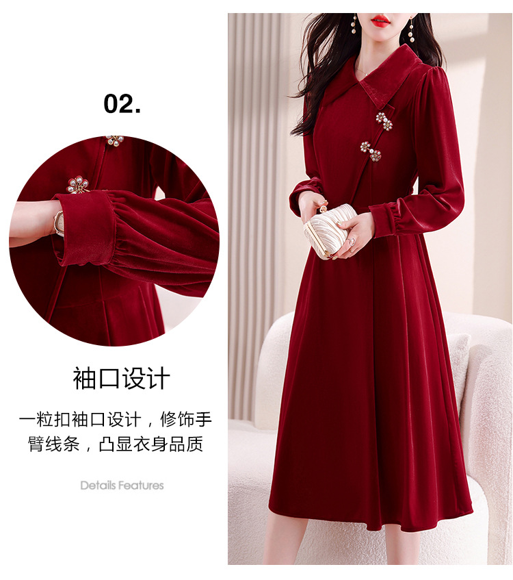 雀说新中式国风盘扣丝绒连衣裙新款时尚洋气减龄显瘦中长裙AL9679