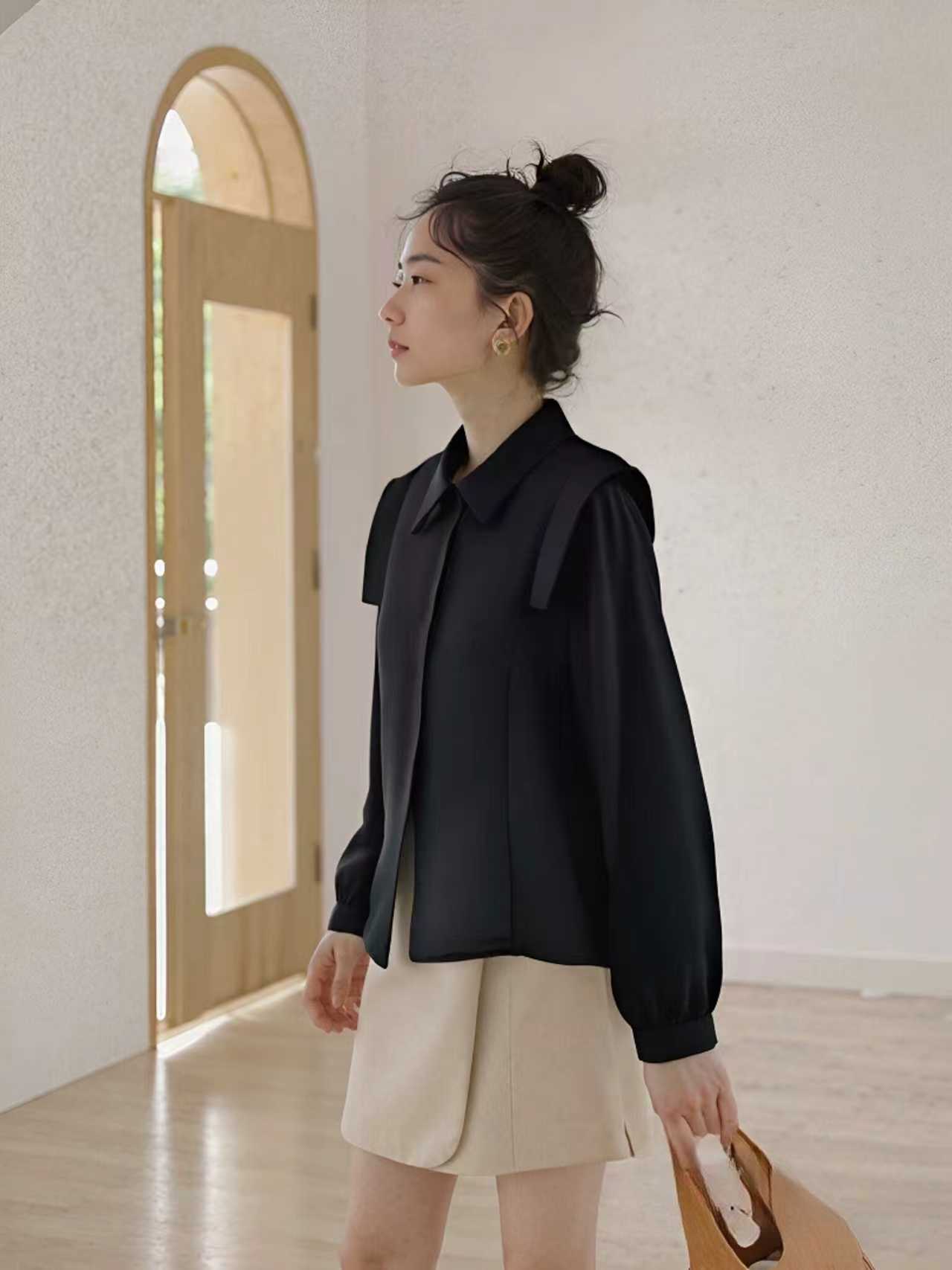 【秋新品】古泥品牌7066飞飞袖黑色衬衫-喜出