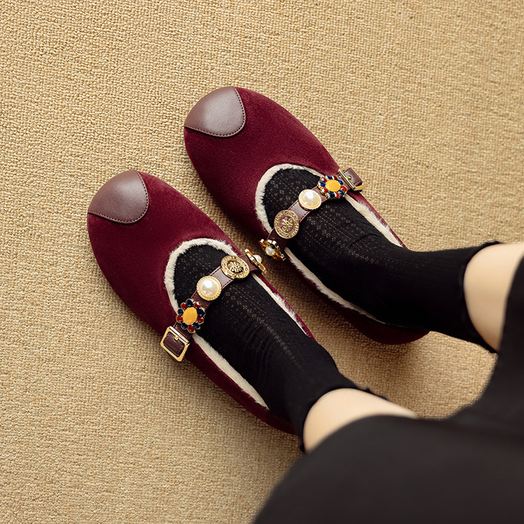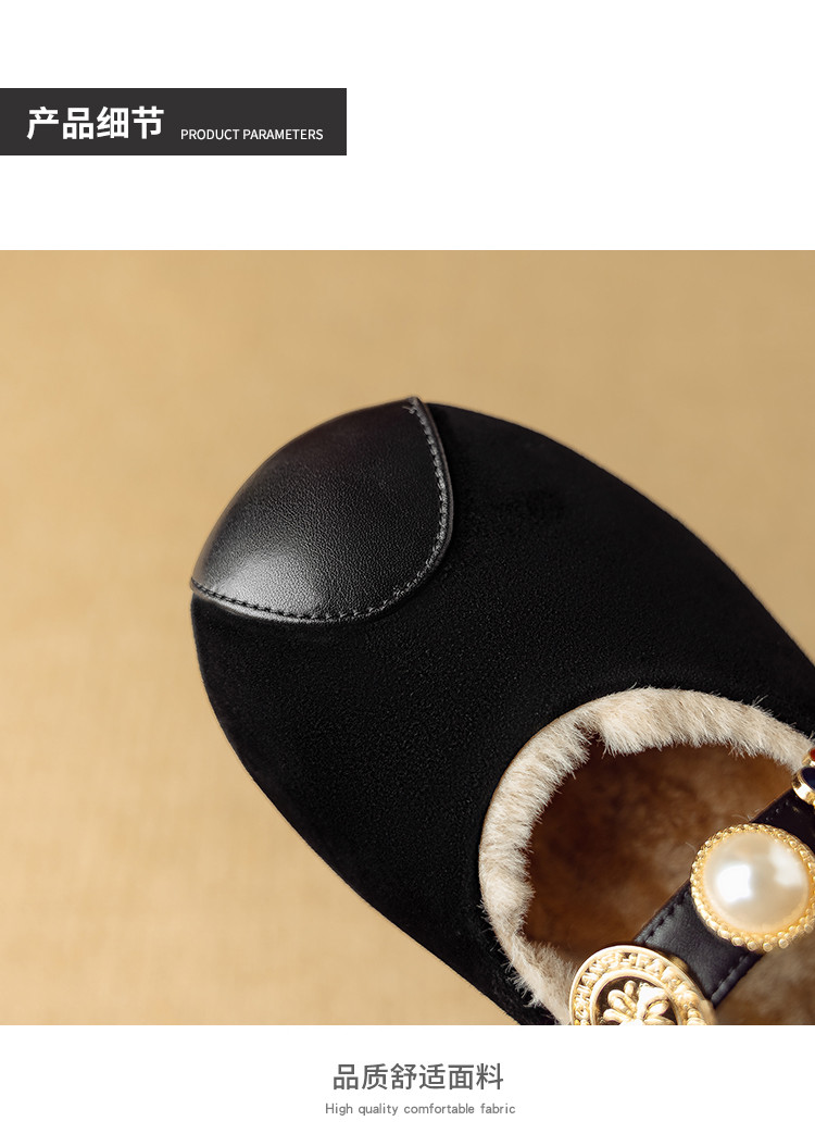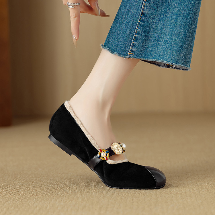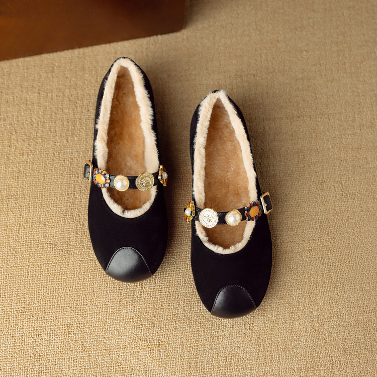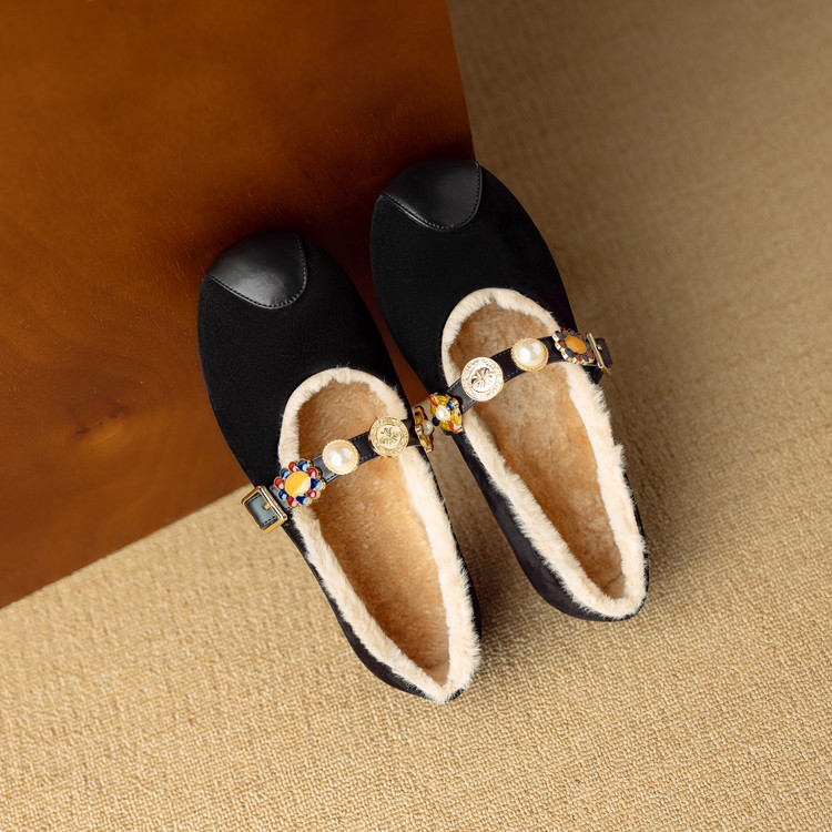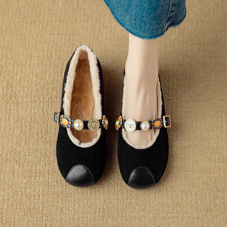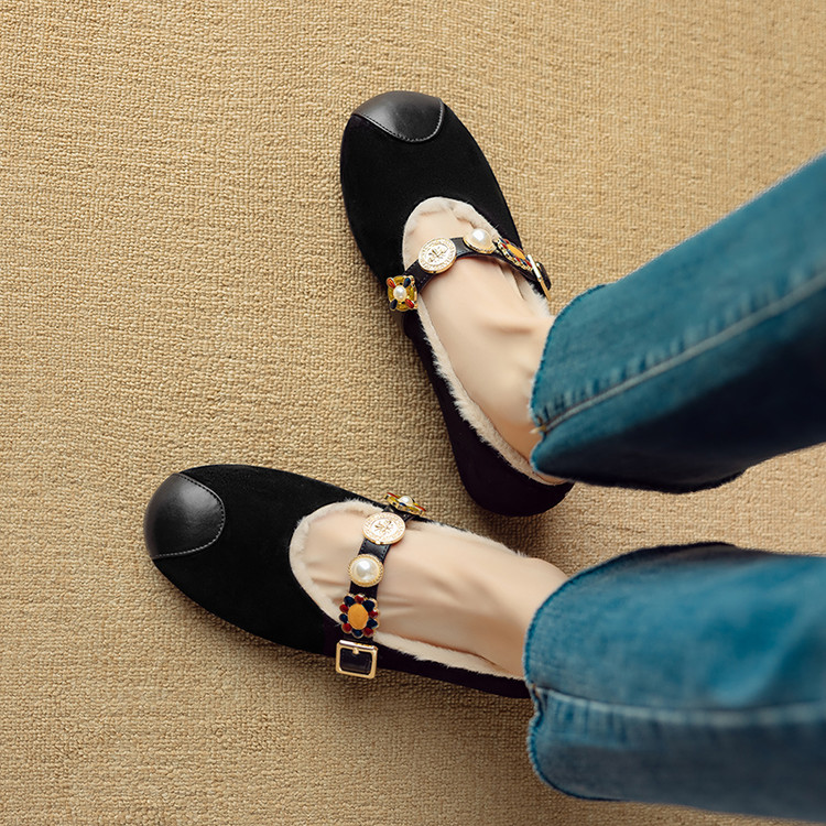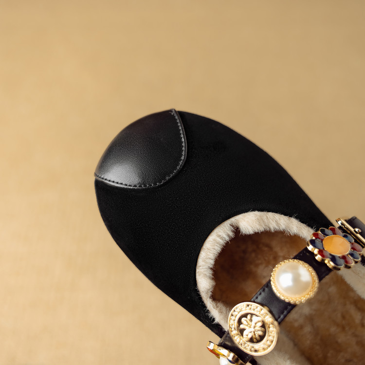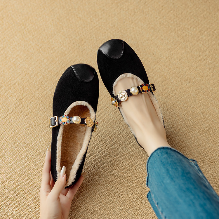 【预售5天】秋冬季新款复古圆头真皮毛里珍珠玛丽珍保暖单鞋NJMK&K1133M-1