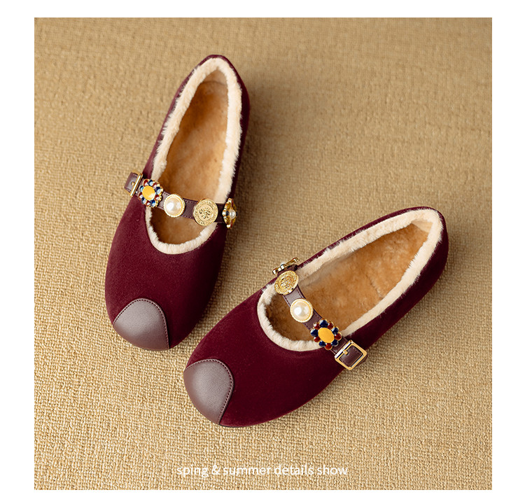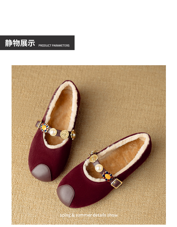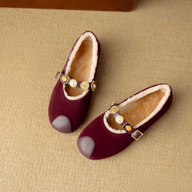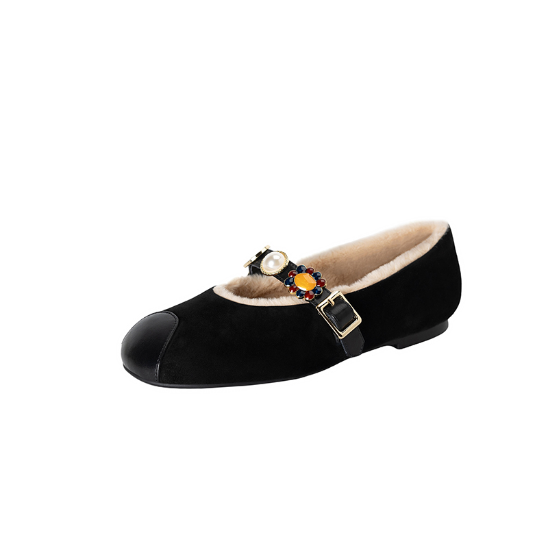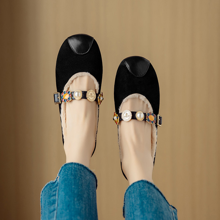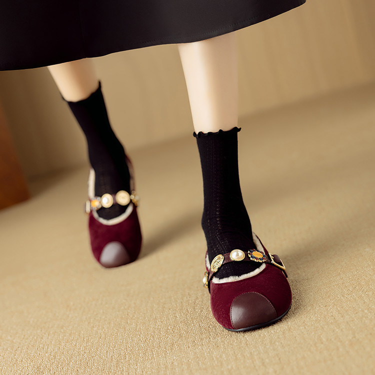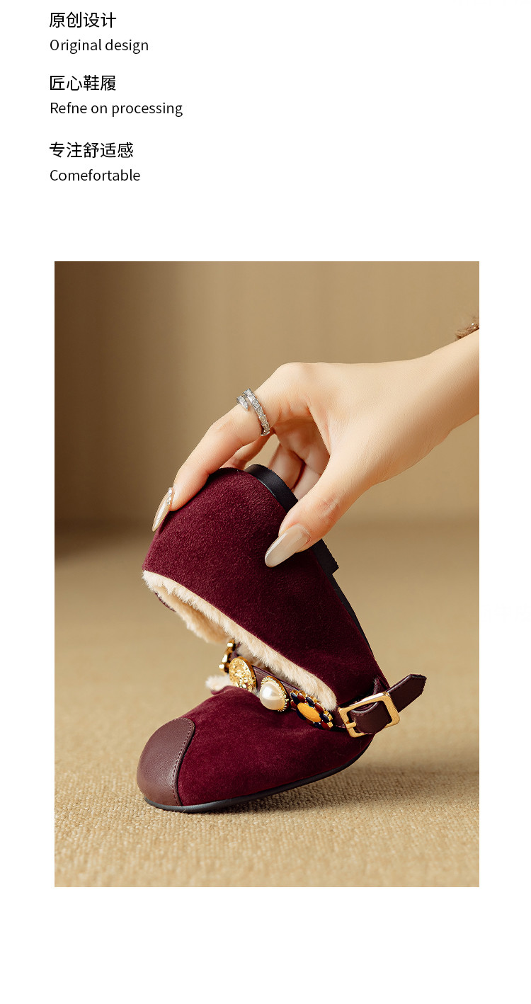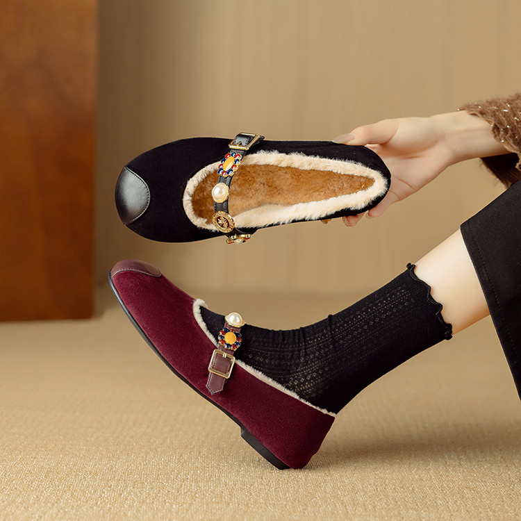 【预售5天】秋冬季新款复古圆头真皮毛里珍珠玛丽珍保暖单鞋NJMK&K1133M-1