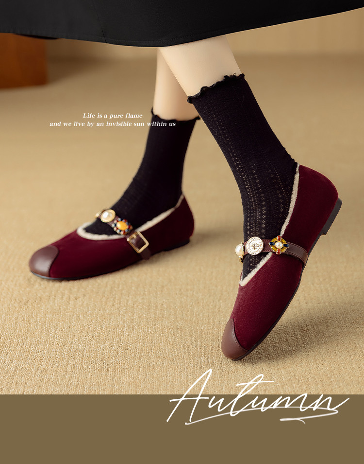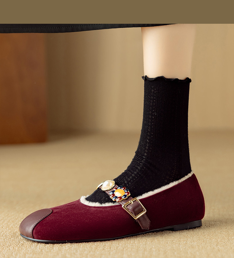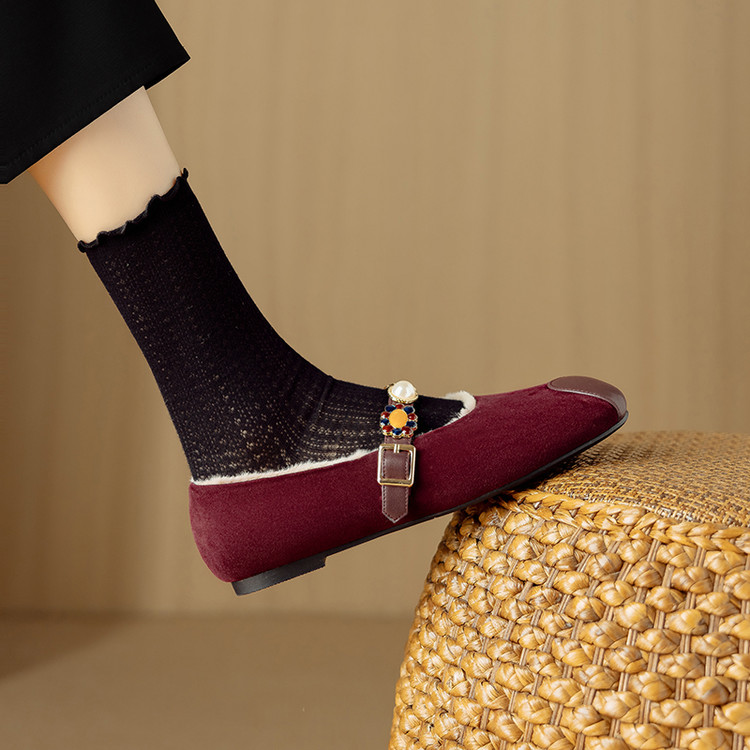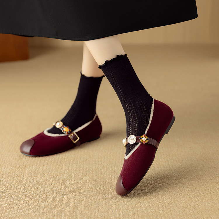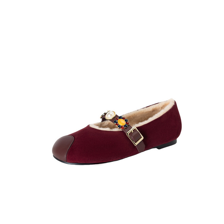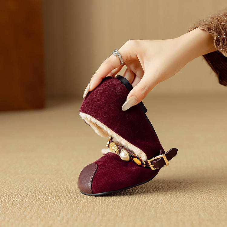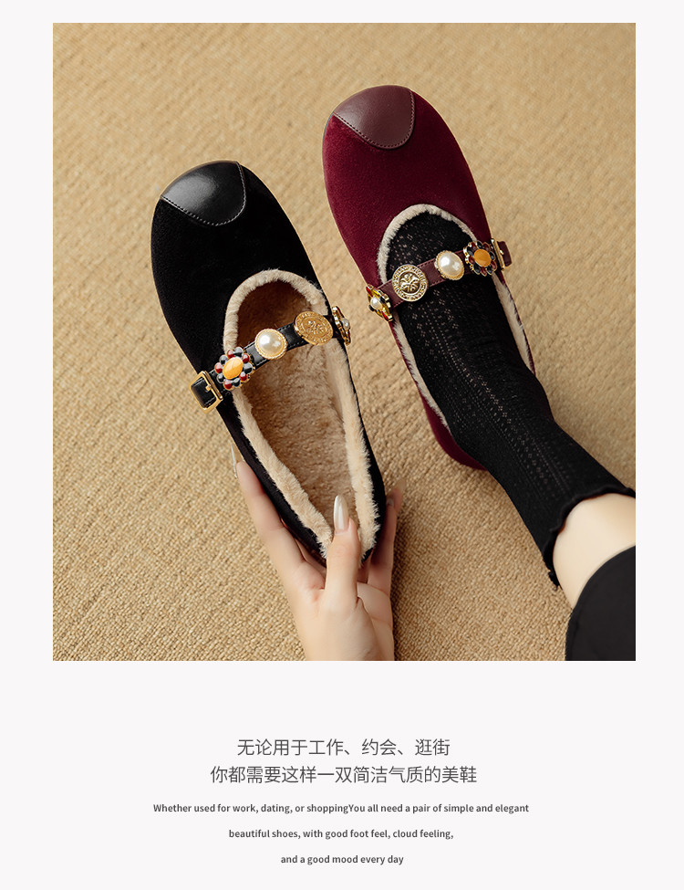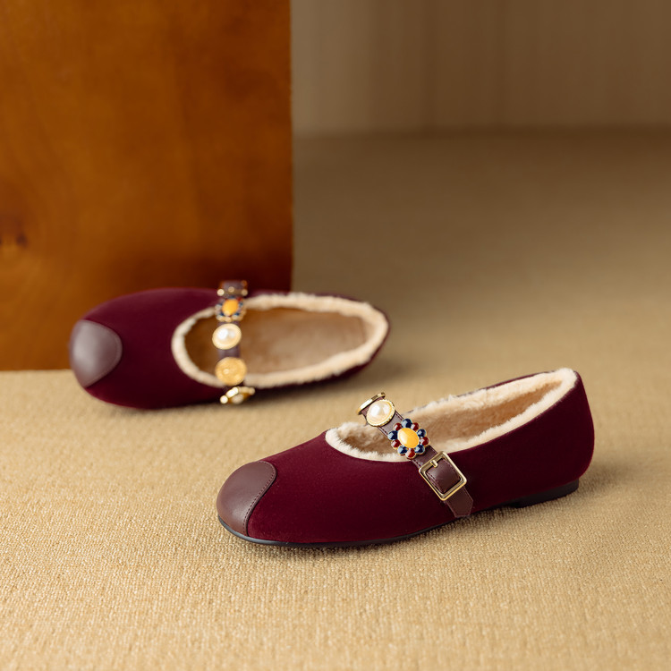 【预售5天】秋冬季新款复古圆头真皮毛里珍珠玛丽珍保暖单鞋NJMK&K1133M-1