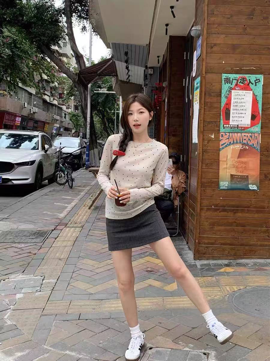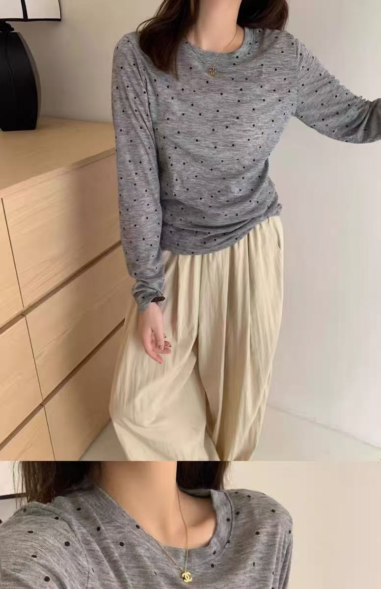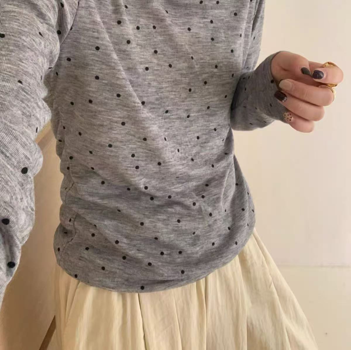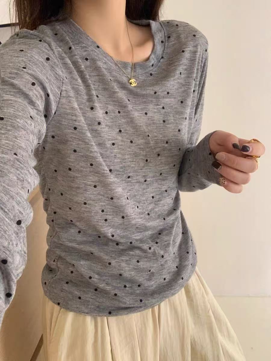 冰点价!仅限11.11!退货勿拍 设计师品牌-5521波点薄款修身圆领打底上衣-喜出