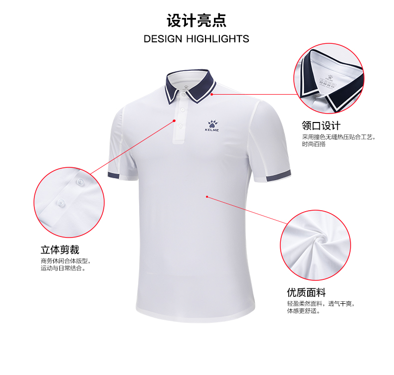 卡尔美Polo衫 新款男士短袖翻领夏足球运动休闲纯色上衣T恤