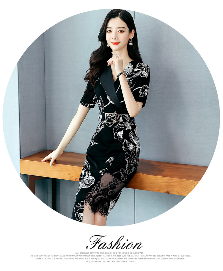 YMR-8195-秋季气质名媛蕾丝大码中长款连衣裙 唐织绾
