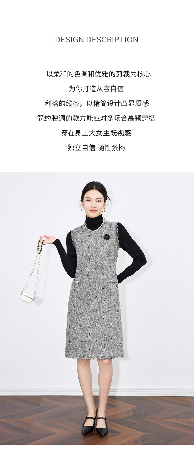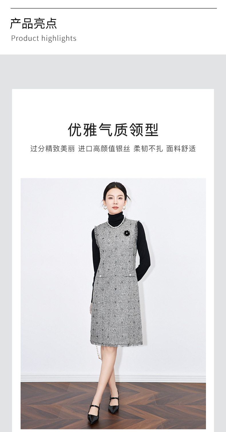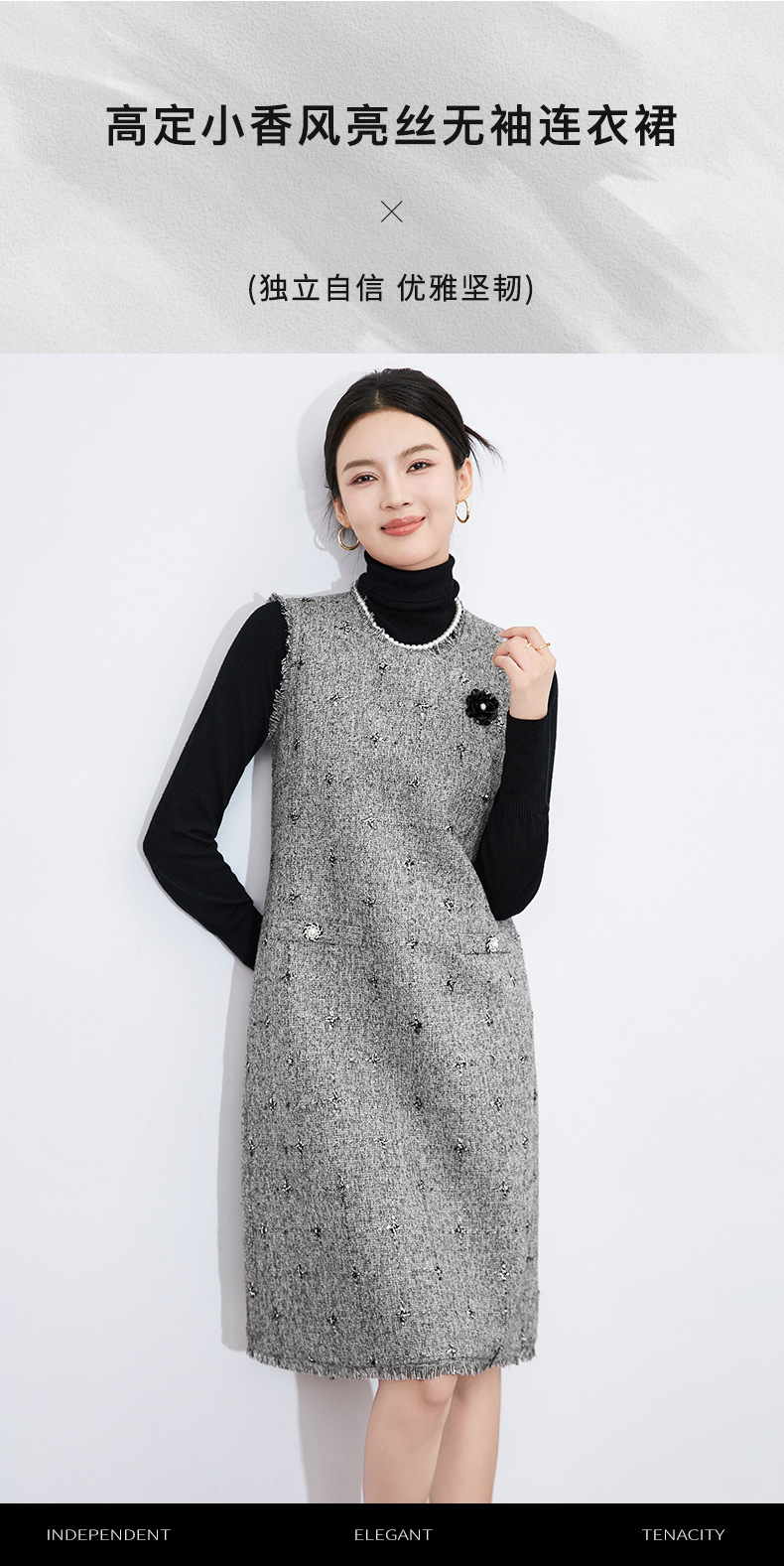 【高货wl】全新升级【铂金会员321/天猫429/差价108】(14839) 洛诗琳秋冬轻奢名媛亮丝编织法式圆领无袖背心连衣裙
