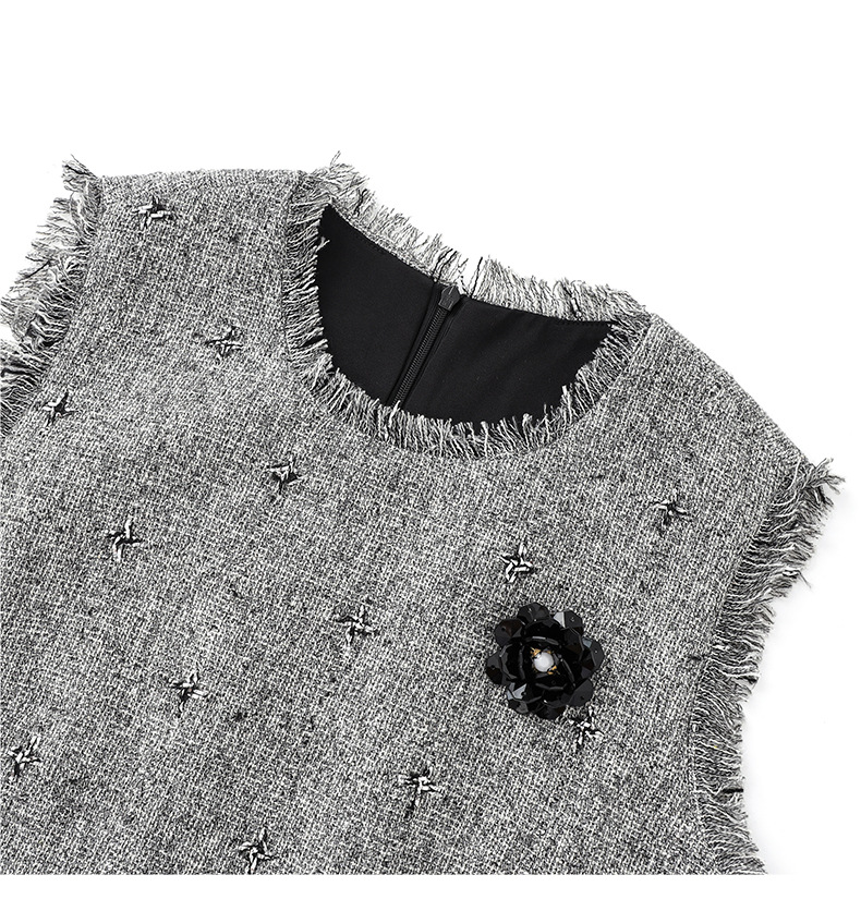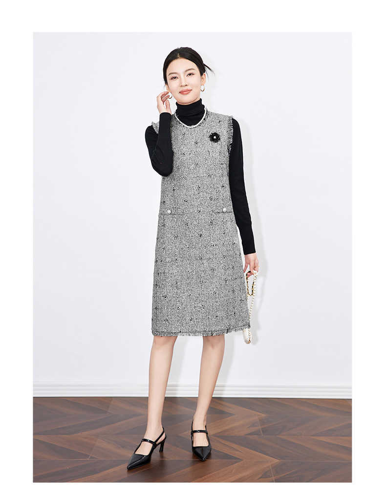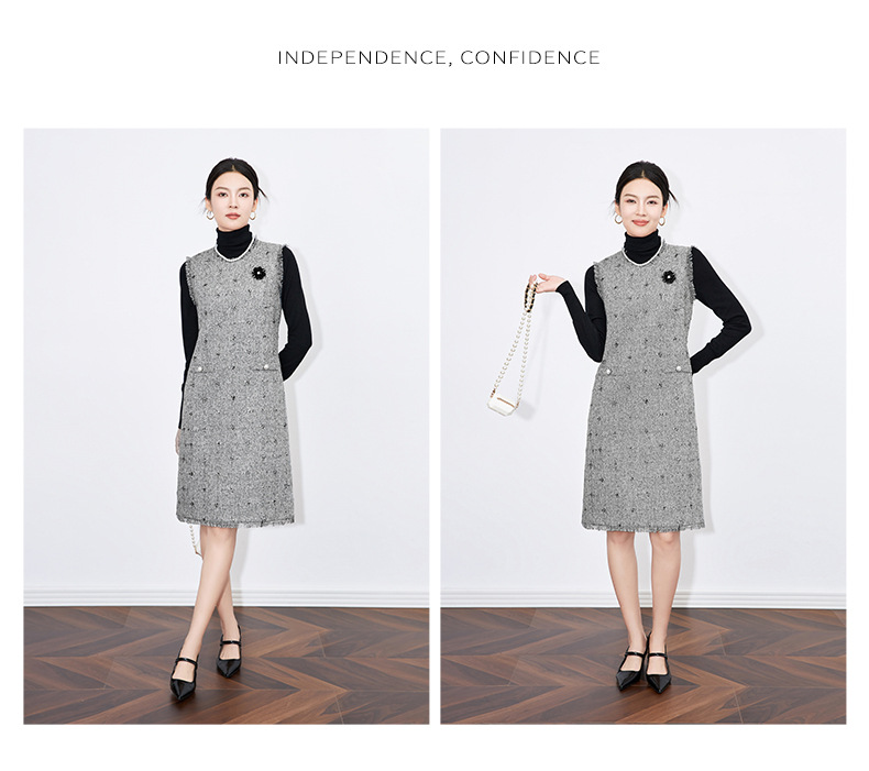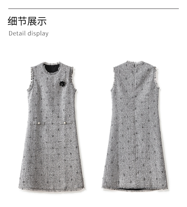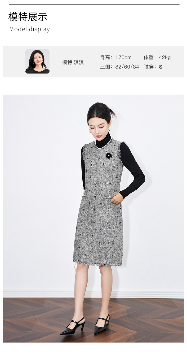 【高货wl】全新升级【铂金会员321/天猫429/差价108】(14839) 洛诗琳秋冬轻奢名媛亮丝编织法式圆领无袖背心连衣裙