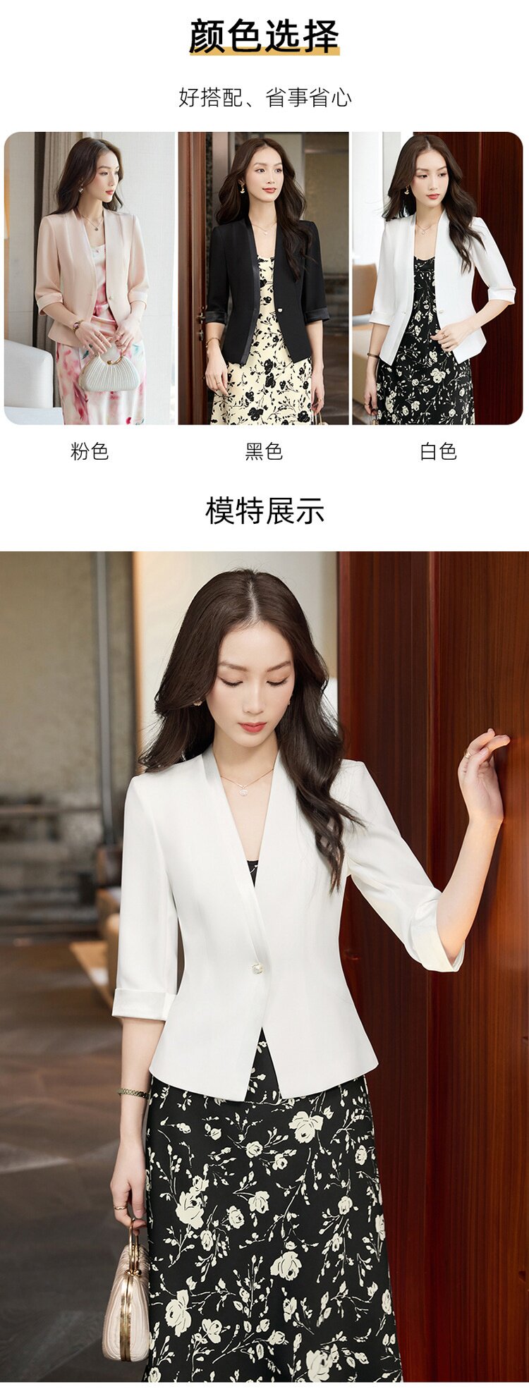 「自」全新升级【铂金会员183/天猫249/差价66】(13514)洛诗琳气质通勤小西装女2026夏季新款薄款高级感中袖短外套