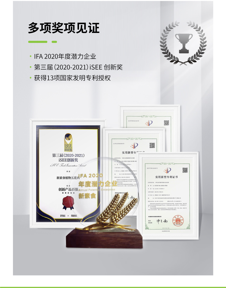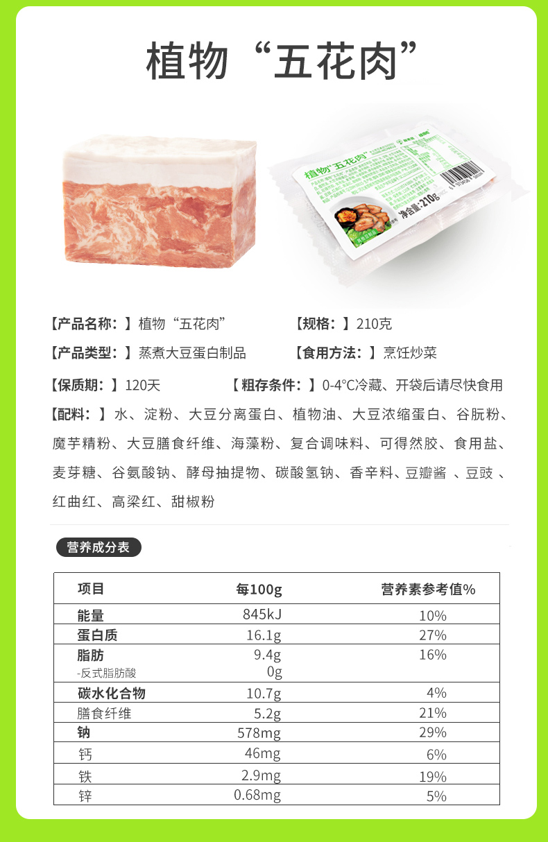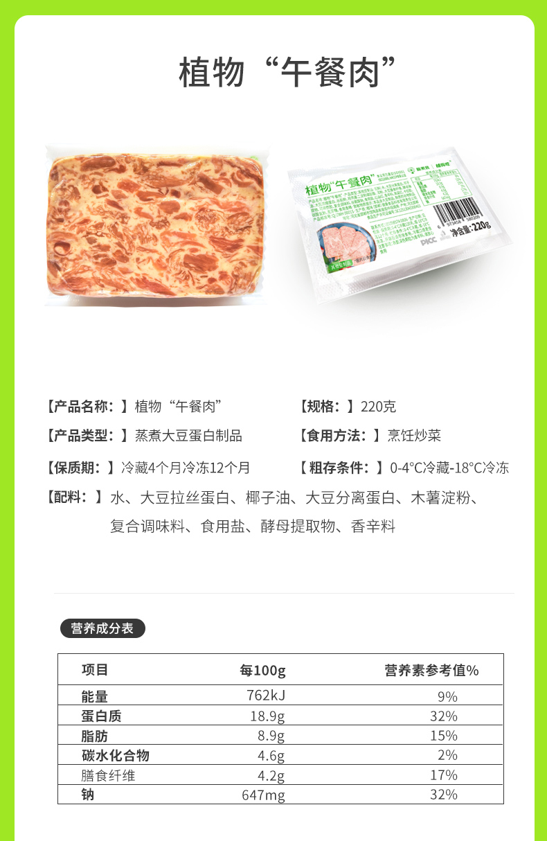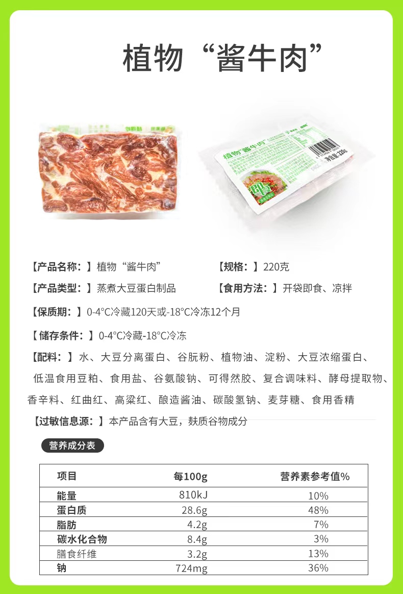 植物“五花 肉” 210g/袋 植物“酱牛 肉”、植物 “午餐肉” 220g/袋
