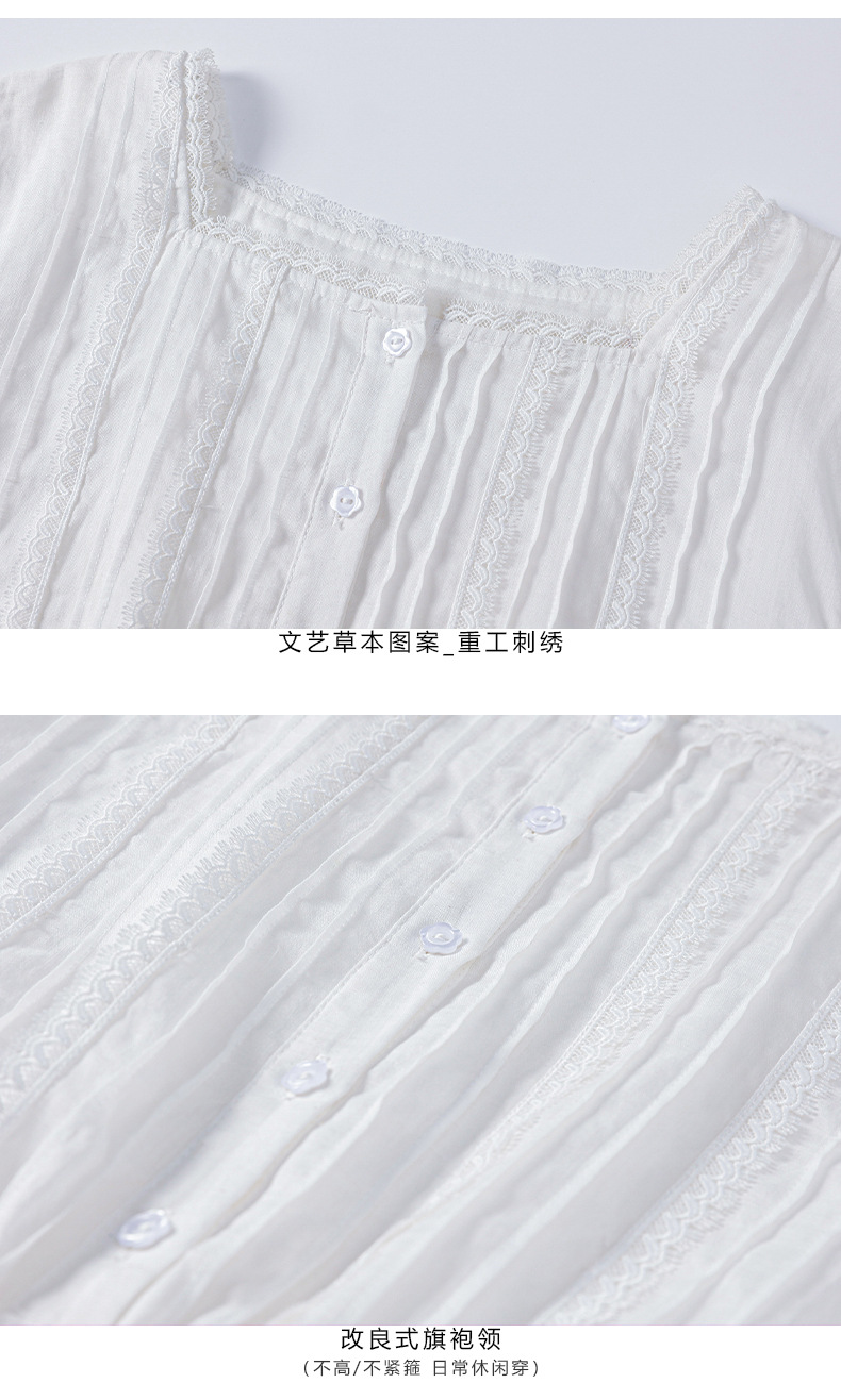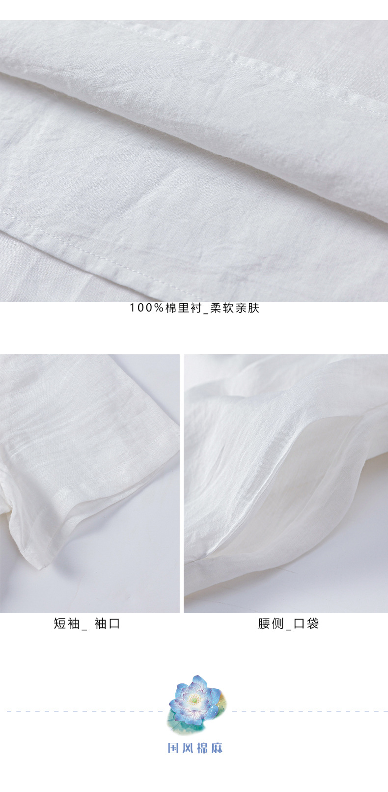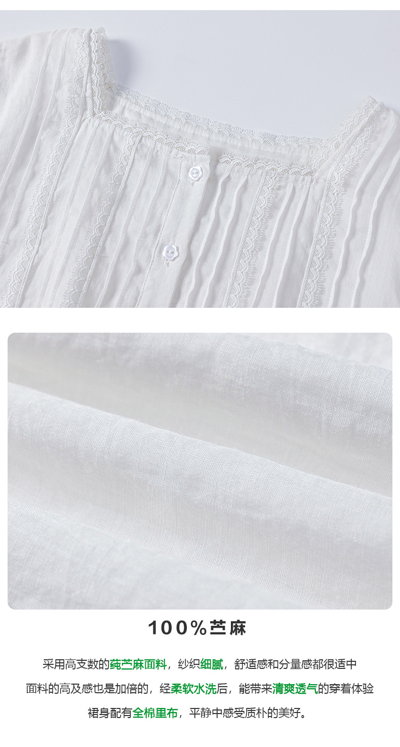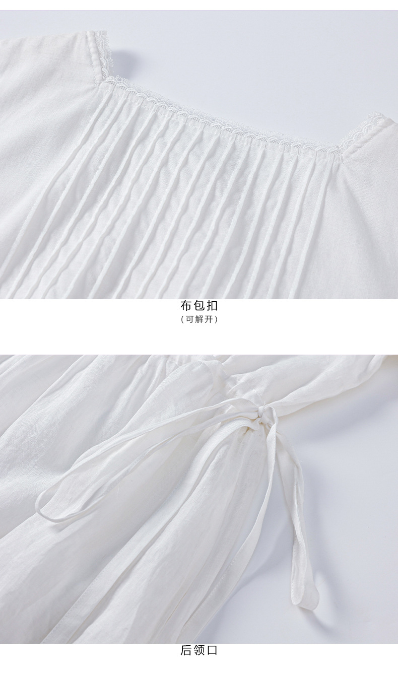 HM-S349夏季新款短袖苎麻法式飘逸花边文艺旅行方领系带白色度假风连衣裙