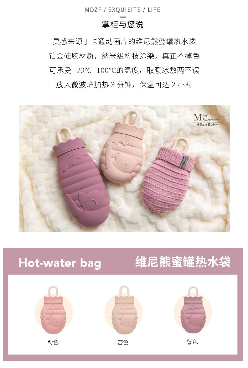 摩登主妇热水袋注水可爱毛绒女生小号暖肚子暖手宝热敷防爆暖水袋