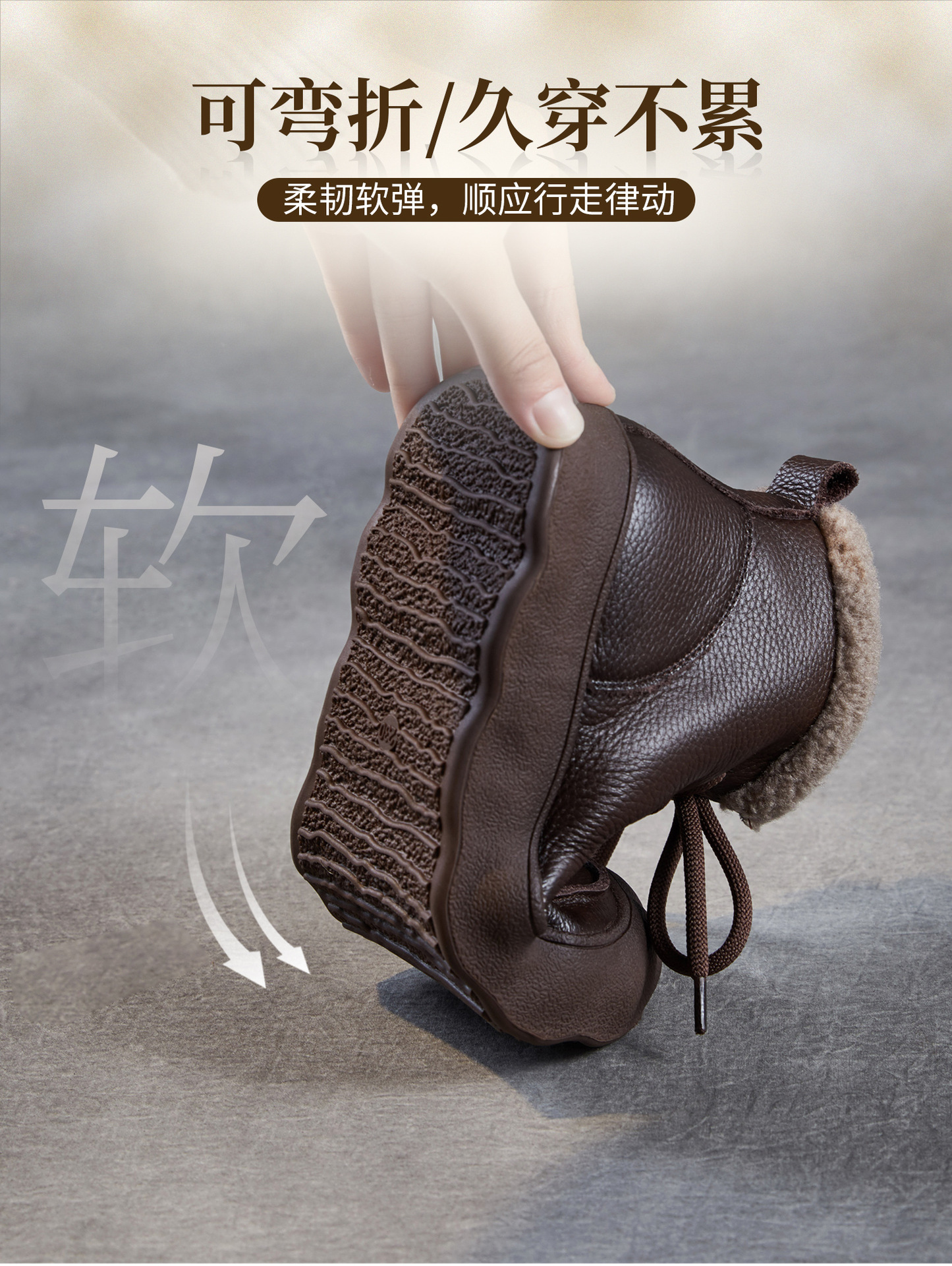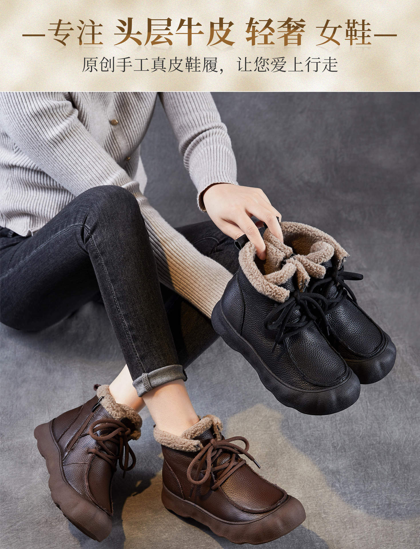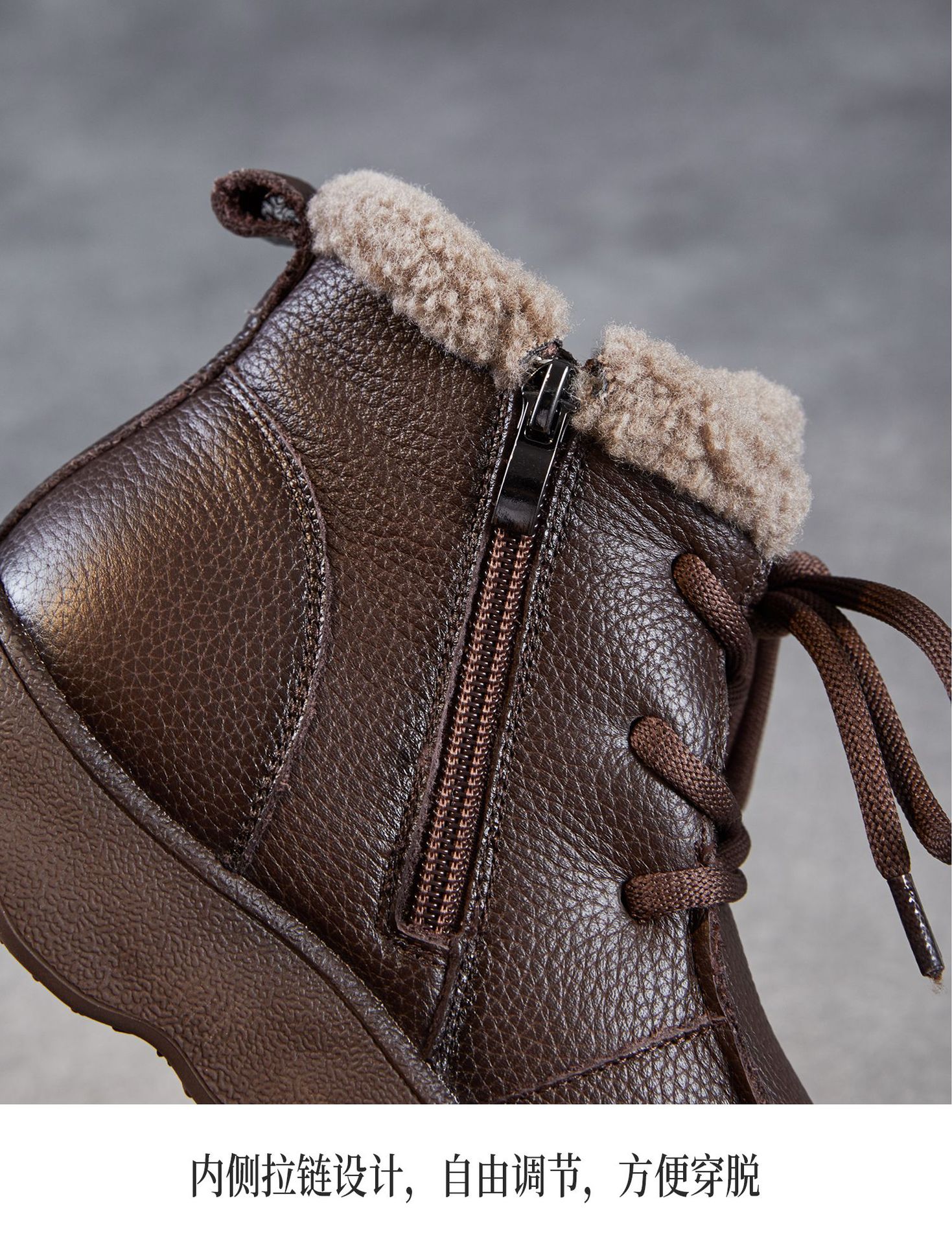 复古厚底头层牛皮雪地靴,加绒加厚短靴真皮棉靴棉鞋ZM258727