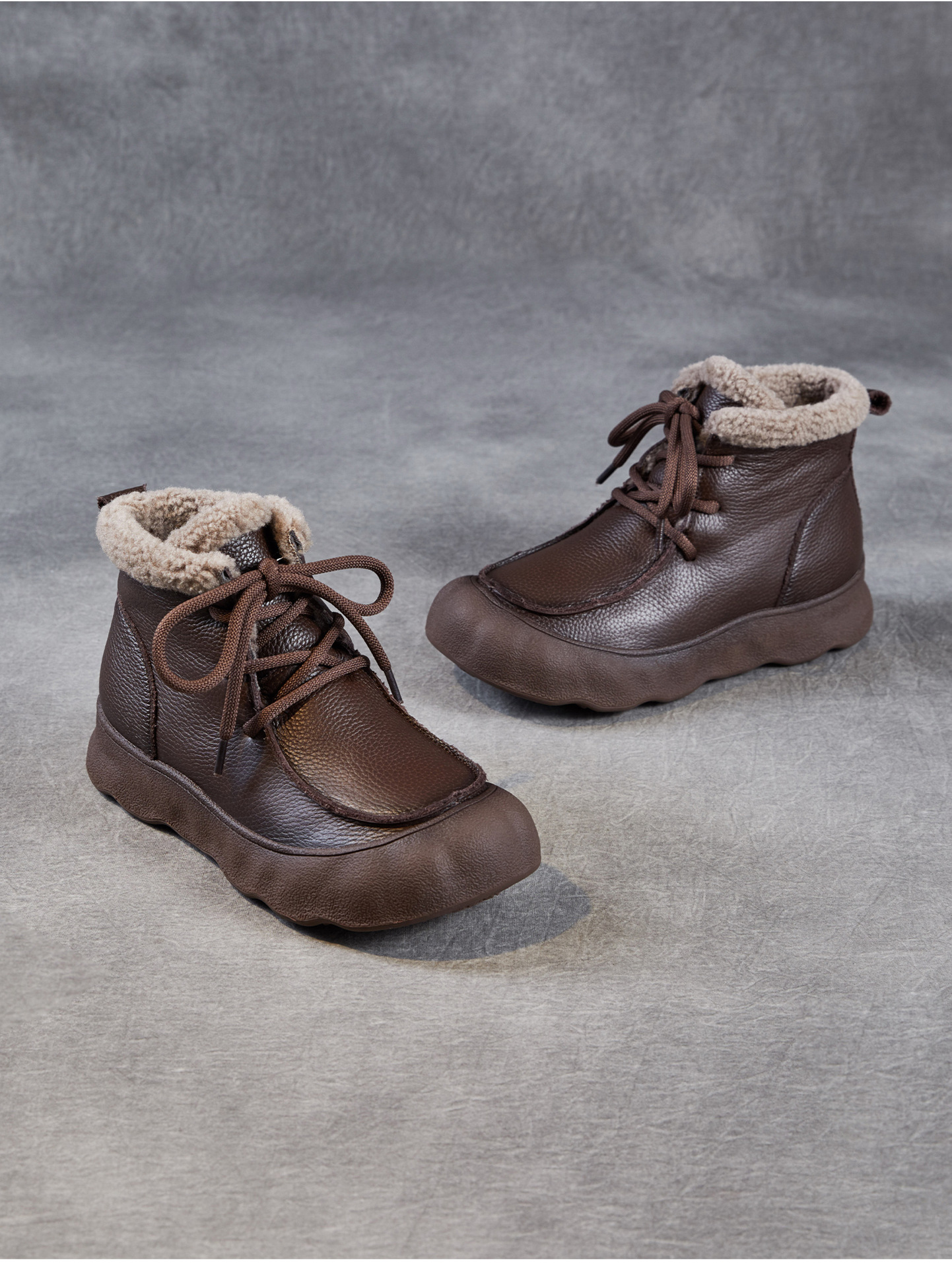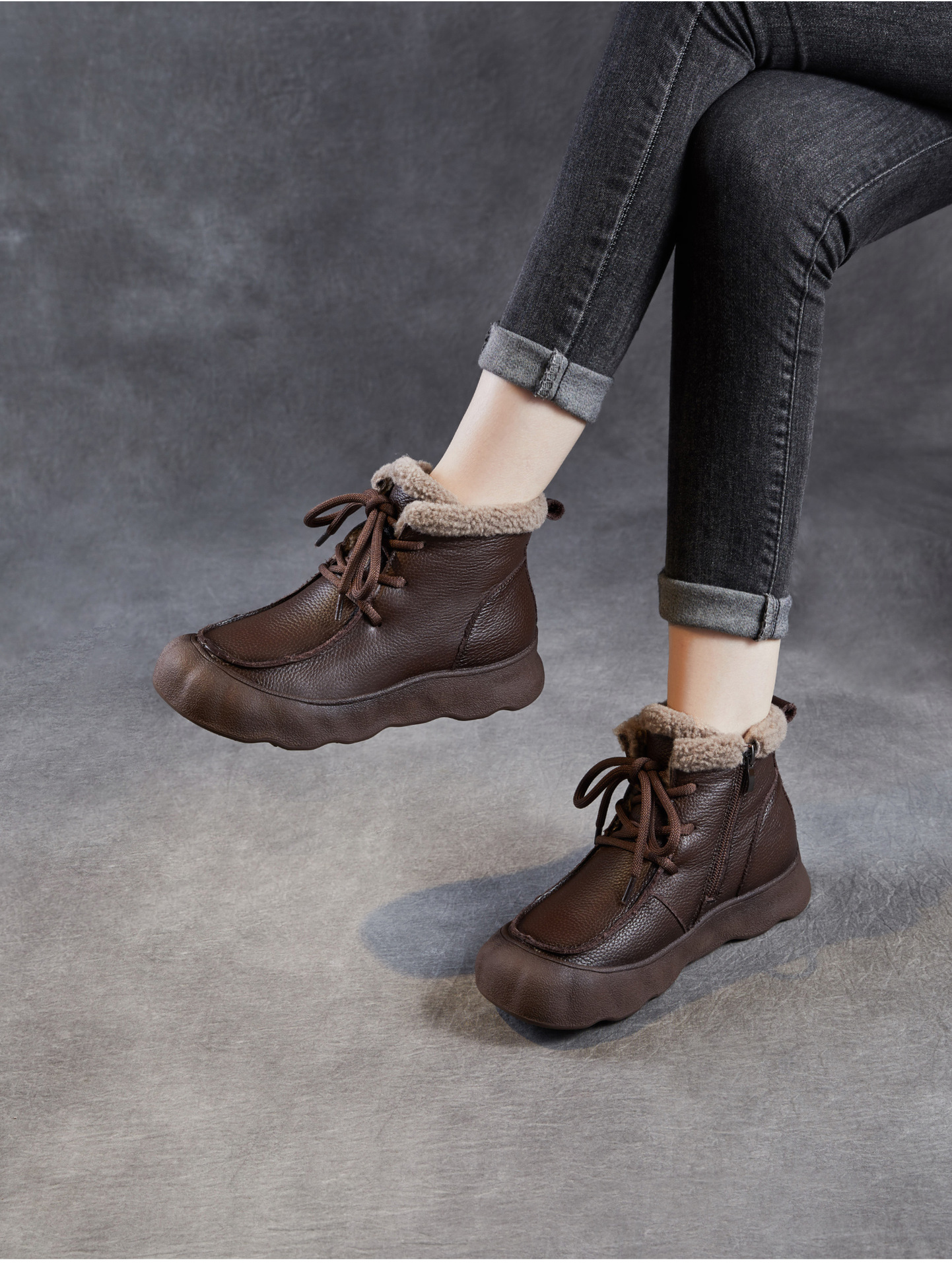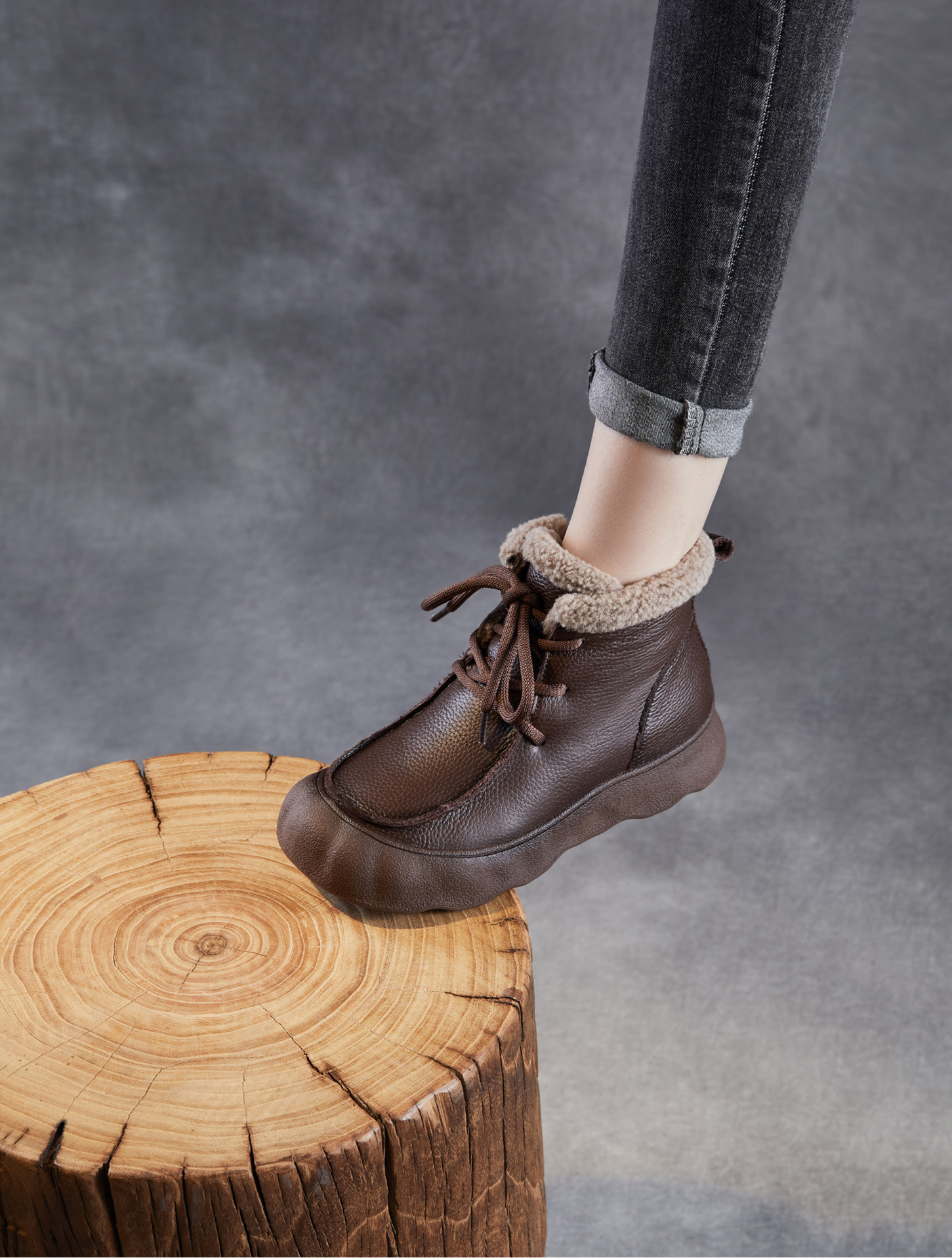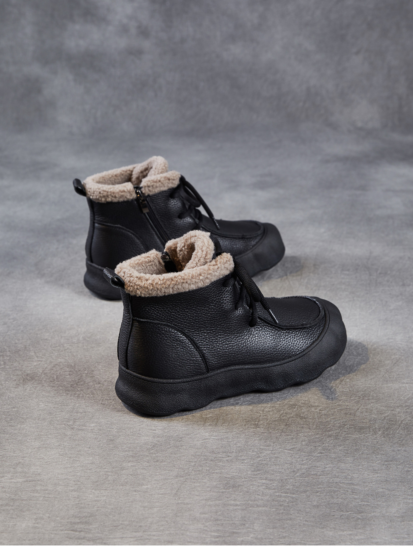 复古厚底头层牛皮雪地靴,加绒加厚短靴真皮棉靴棉鞋ZM258727