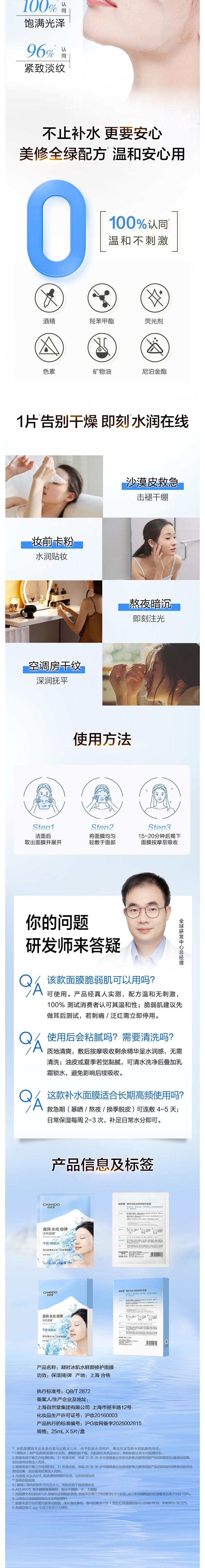 自然堂 凝时冰肌水鲜颜修护面膜25ml*20片 ZRT17