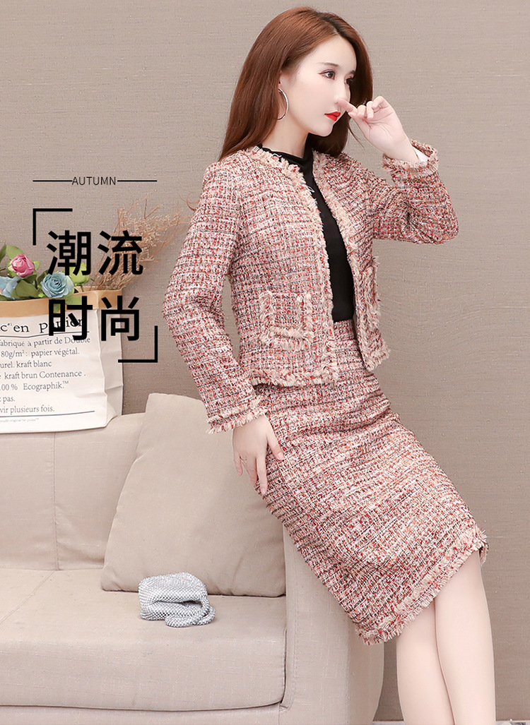 YWE-JMYS91808小香风外套气质长袖打底裙时尚两件套