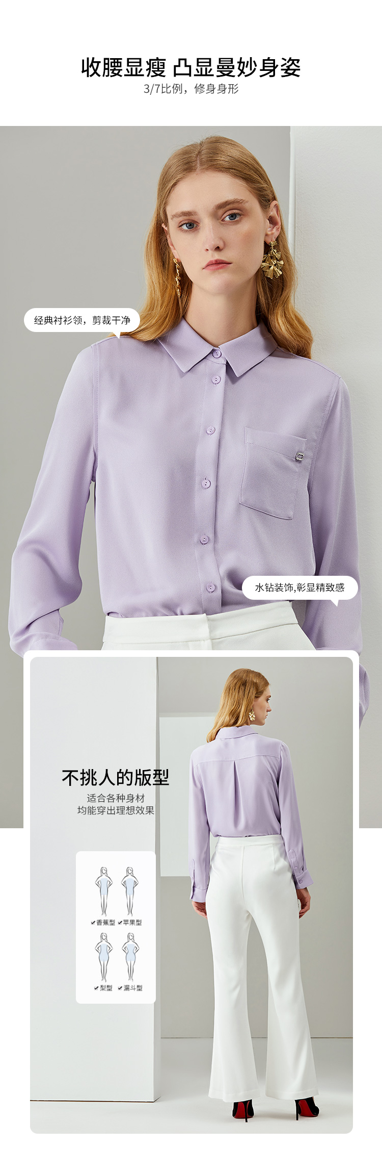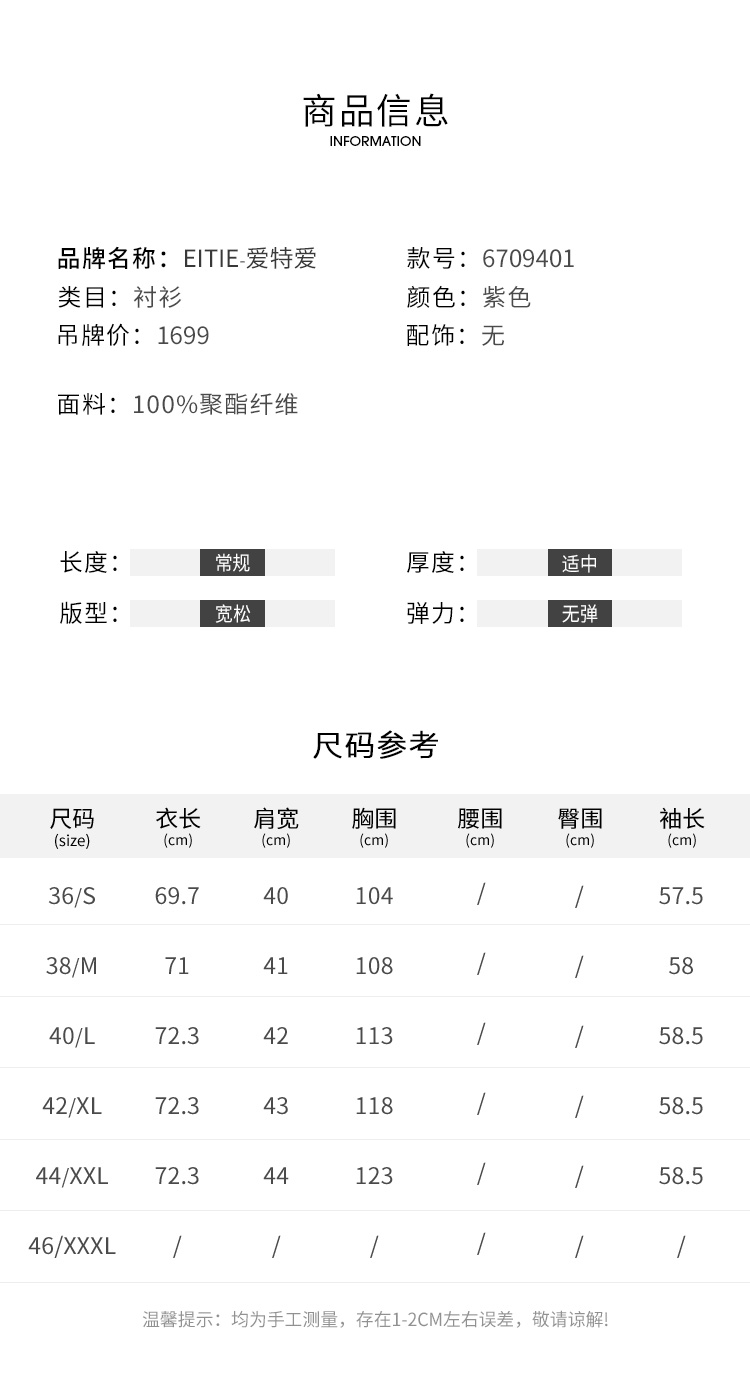 EITIE爱特爱秋季新款时尚大方修身显瘦通勤衬衫女衬衫6709401