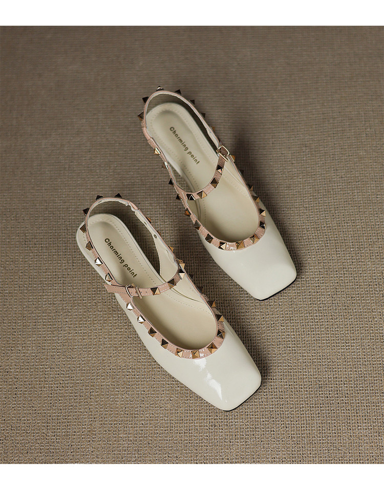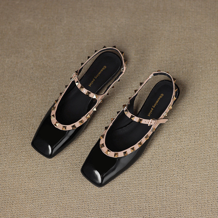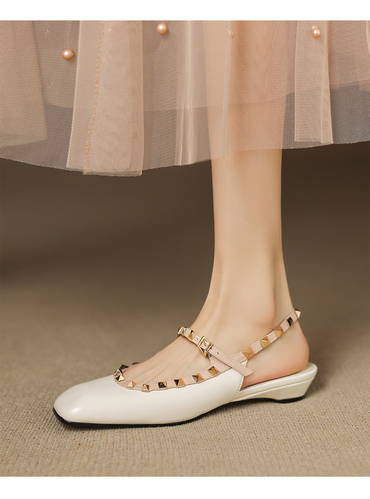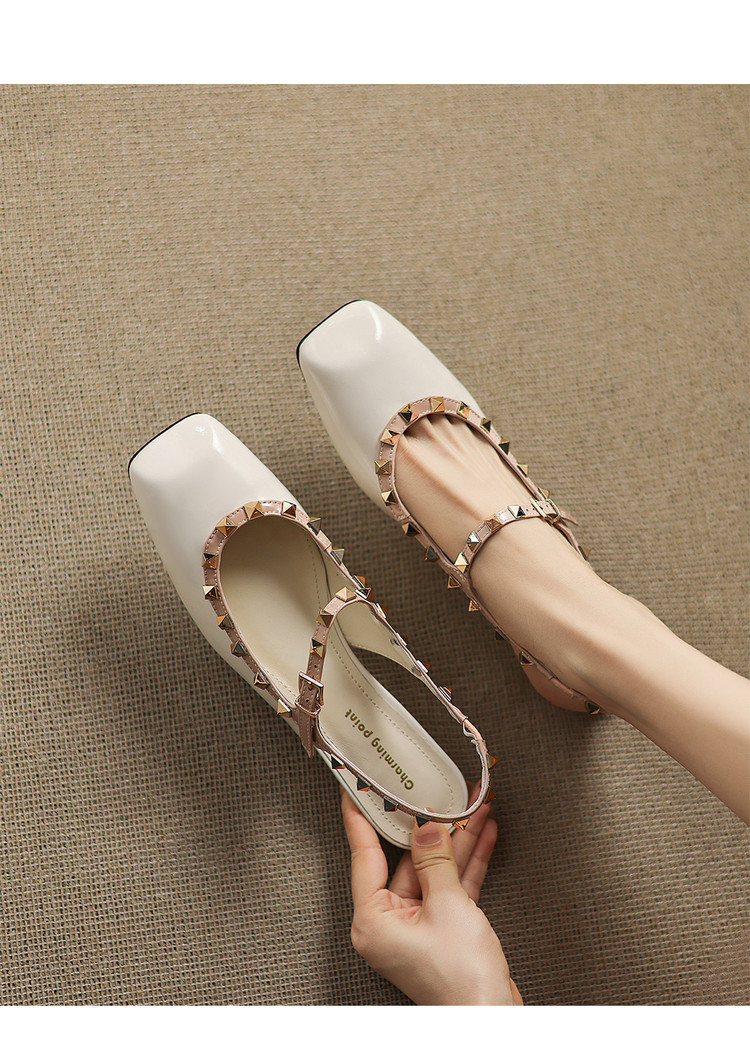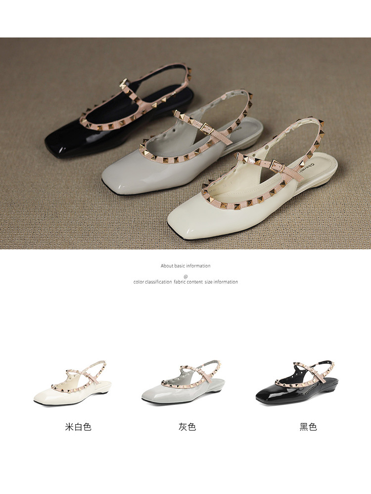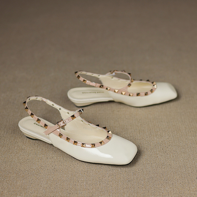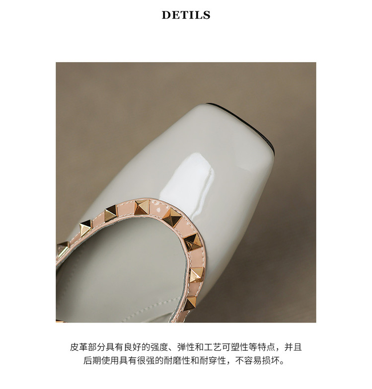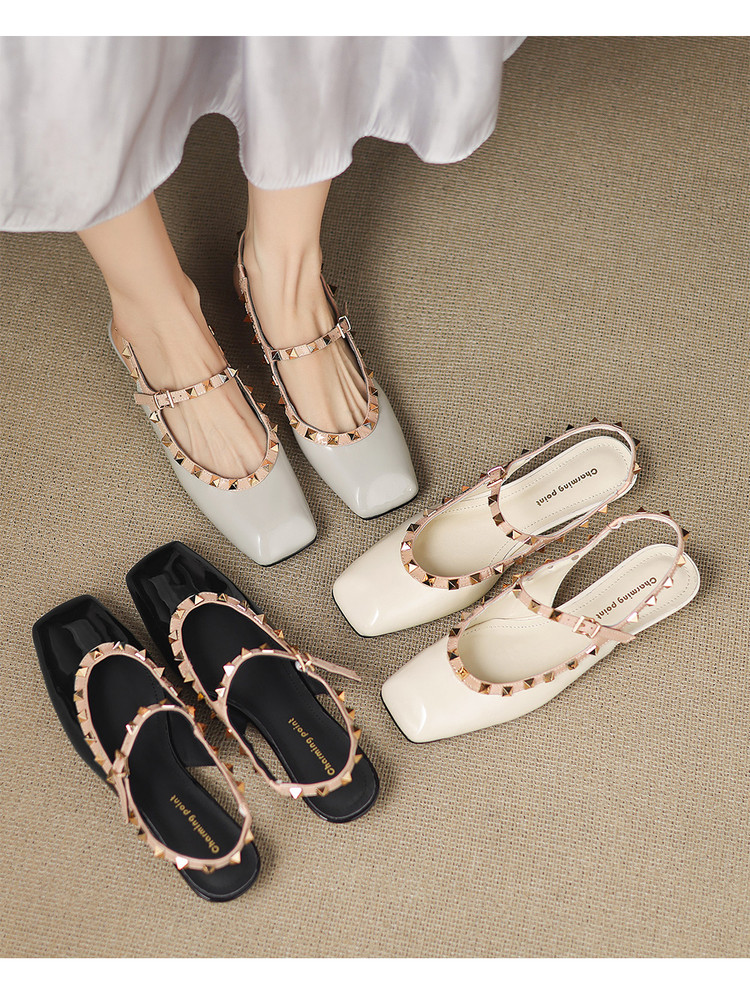 【预售5天】法式气质温柔风铆钉包头浅口方头玛丽珍凉鞋女一字带低跟HTK&F2310-3