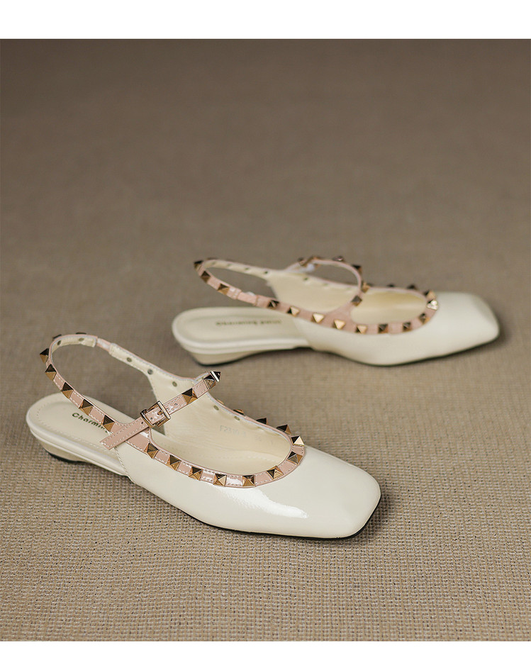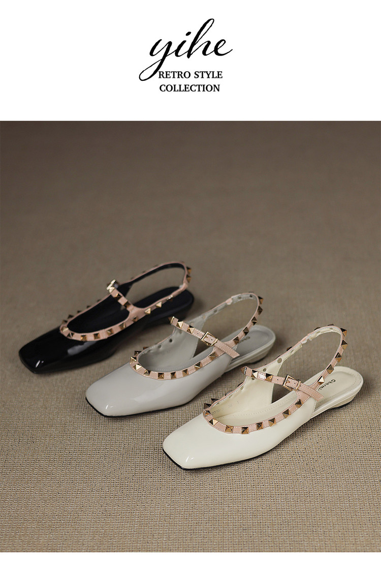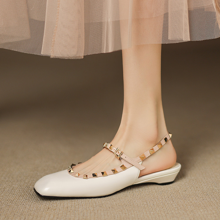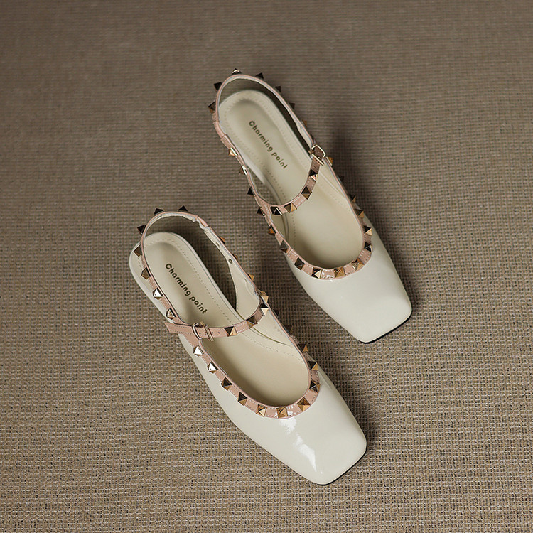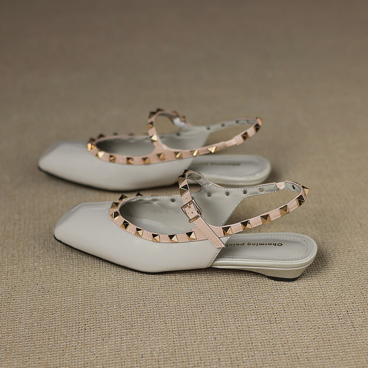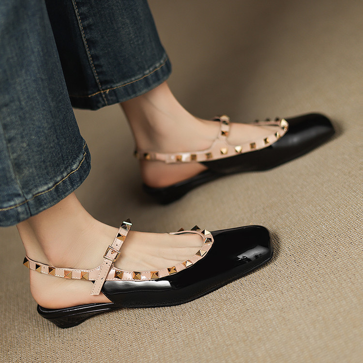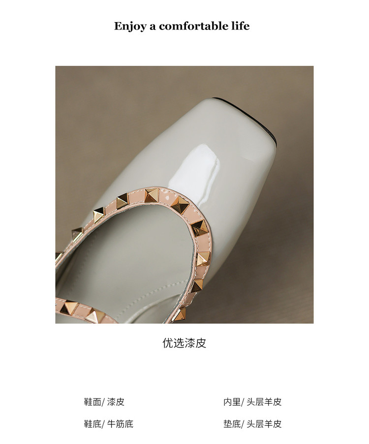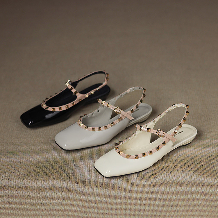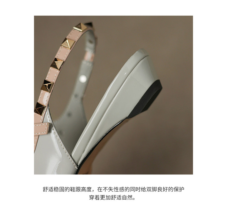 【预售5天】法式气质温柔风铆钉包头浅口方头玛丽珍凉鞋女一字带低跟HTK&F2310-3