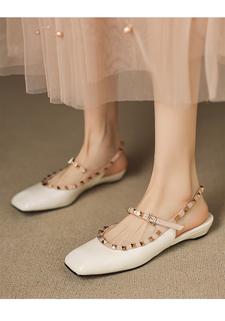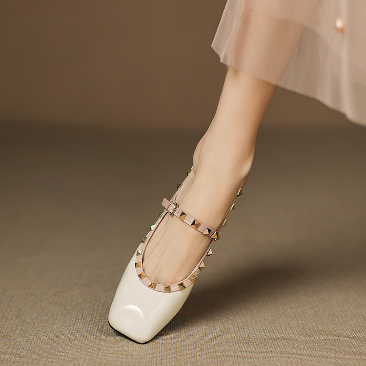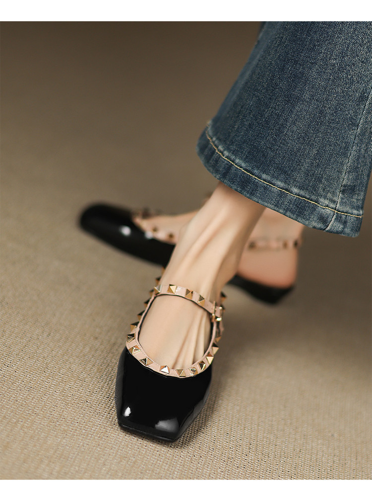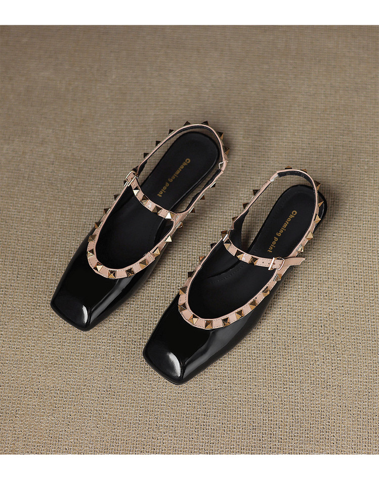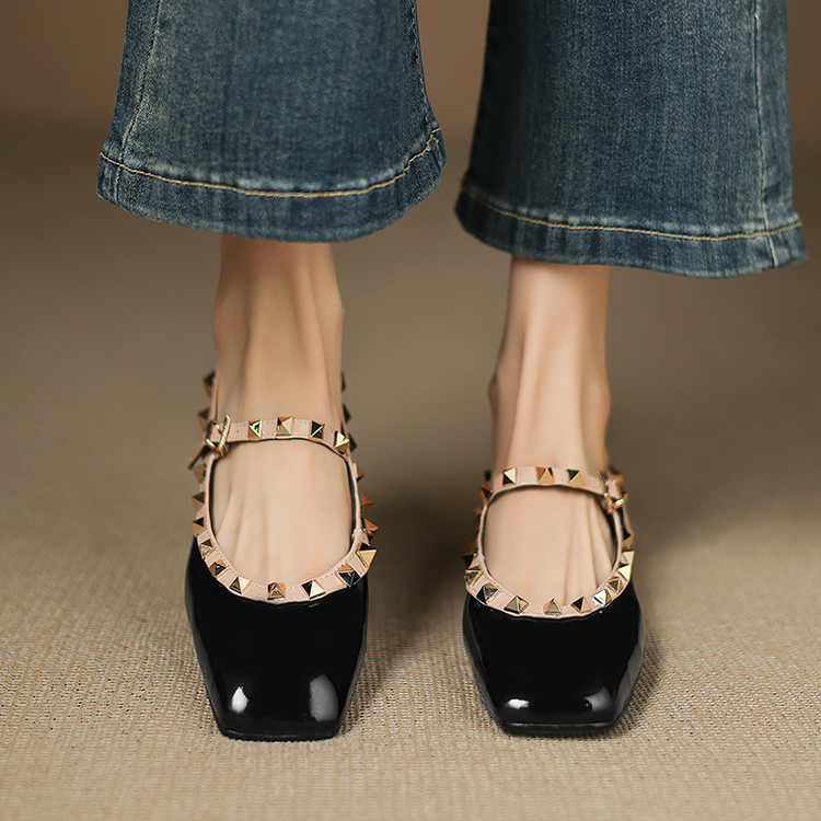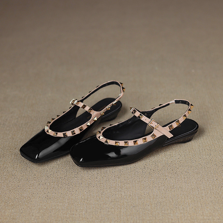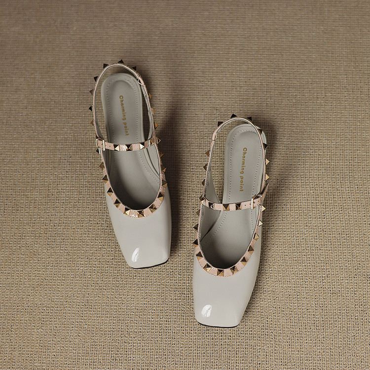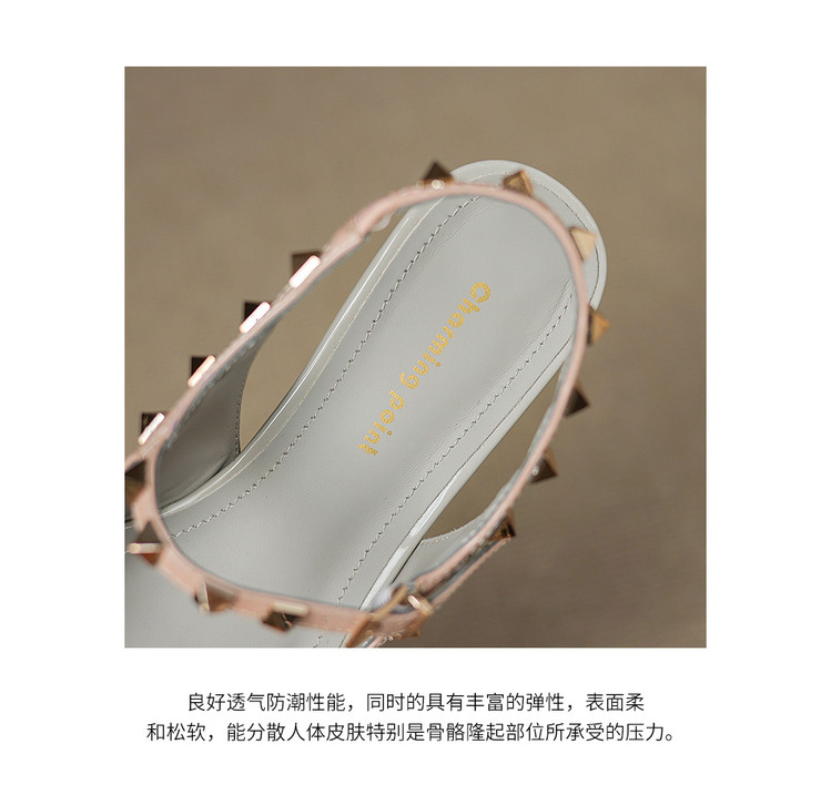 【预售5天】法式气质温柔风铆钉包头浅口方头玛丽珍凉鞋女一字带低跟HTK&F2310-3