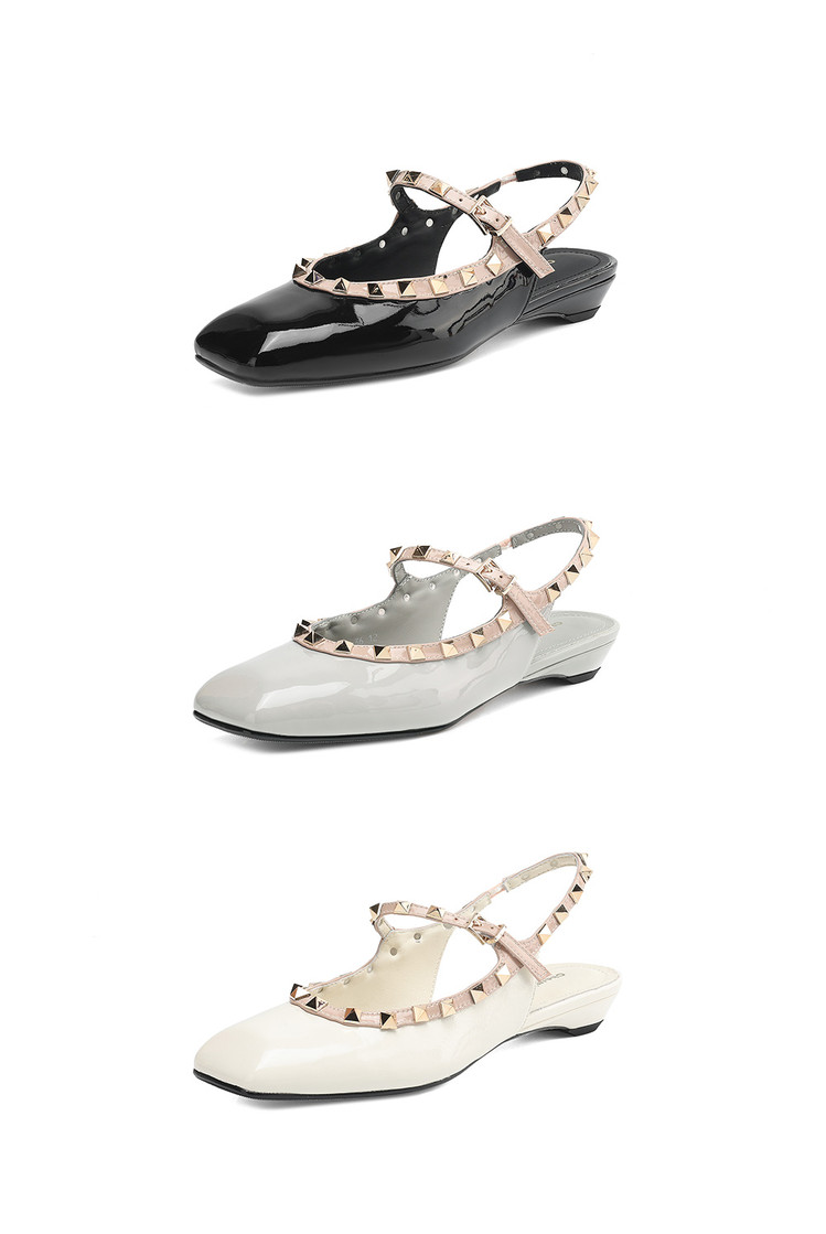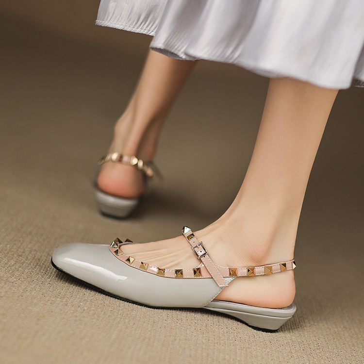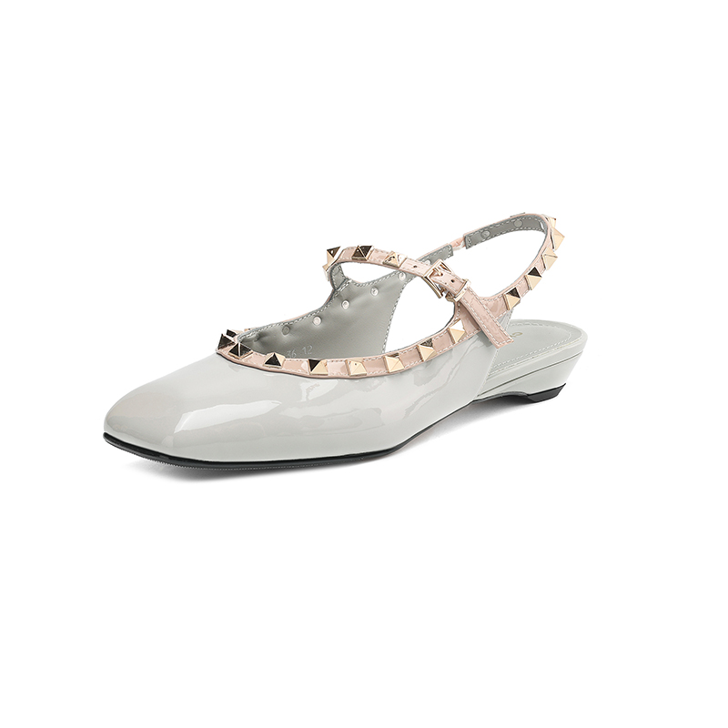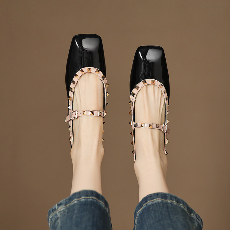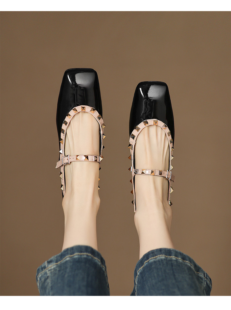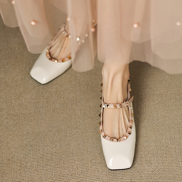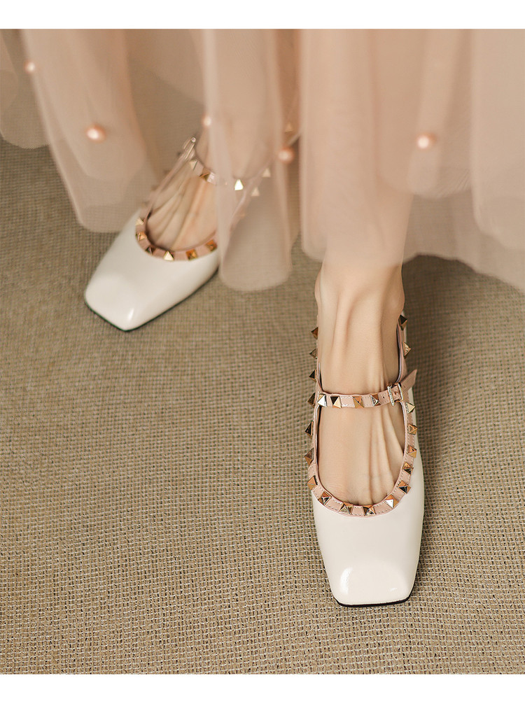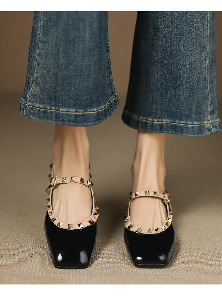 【预售5天】法式气质温柔风铆钉包头浅口方头玛丽珍凉鞋女一字带低跟HTK&F2310-3