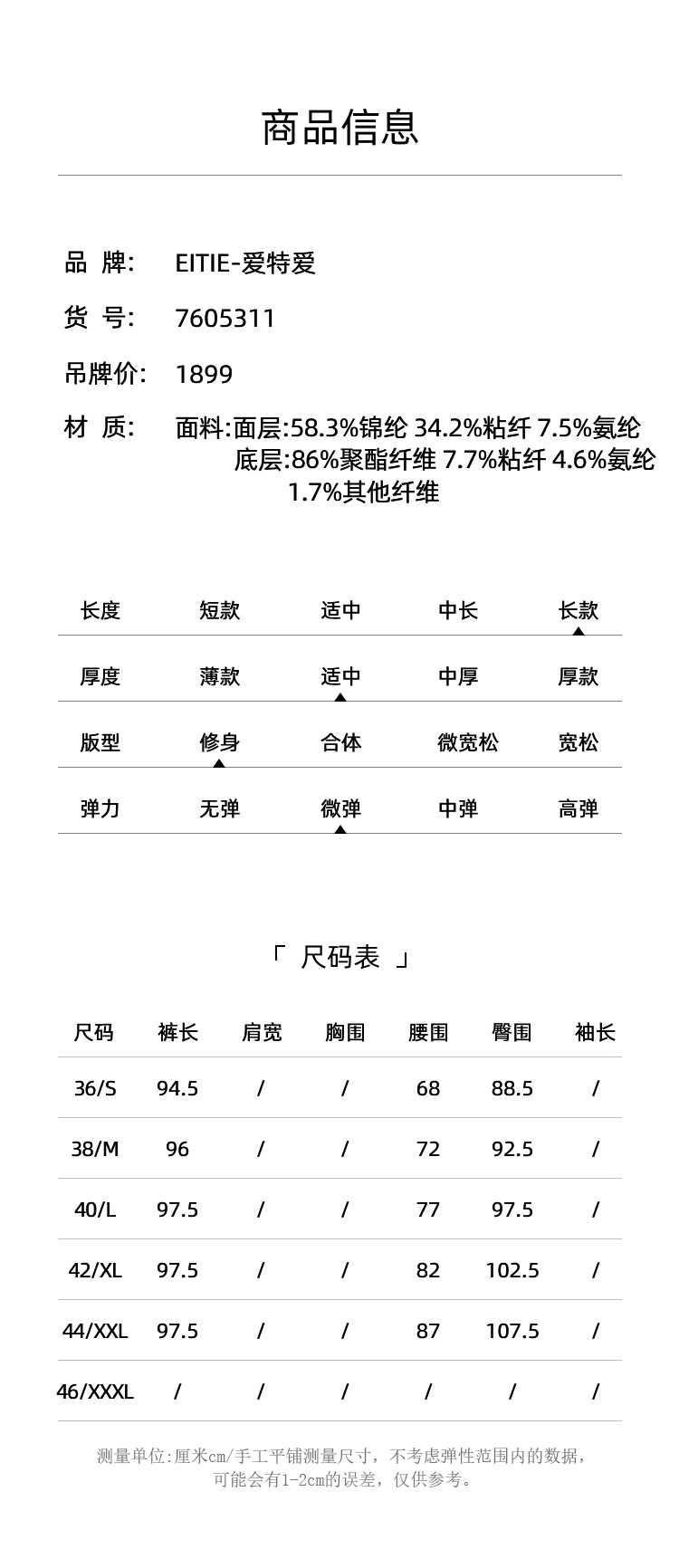 EITIE爱特爱冬季新款显瘦显高百搭高腰裤子7605311