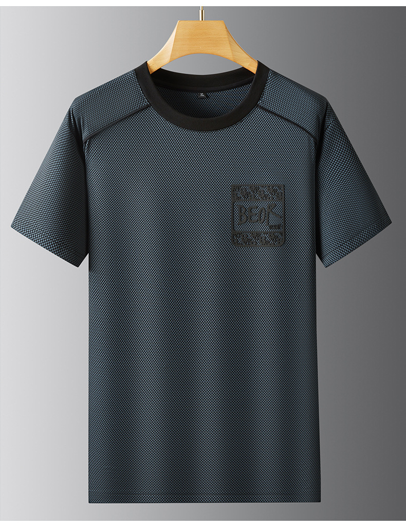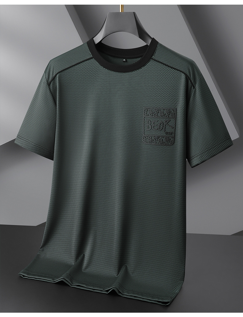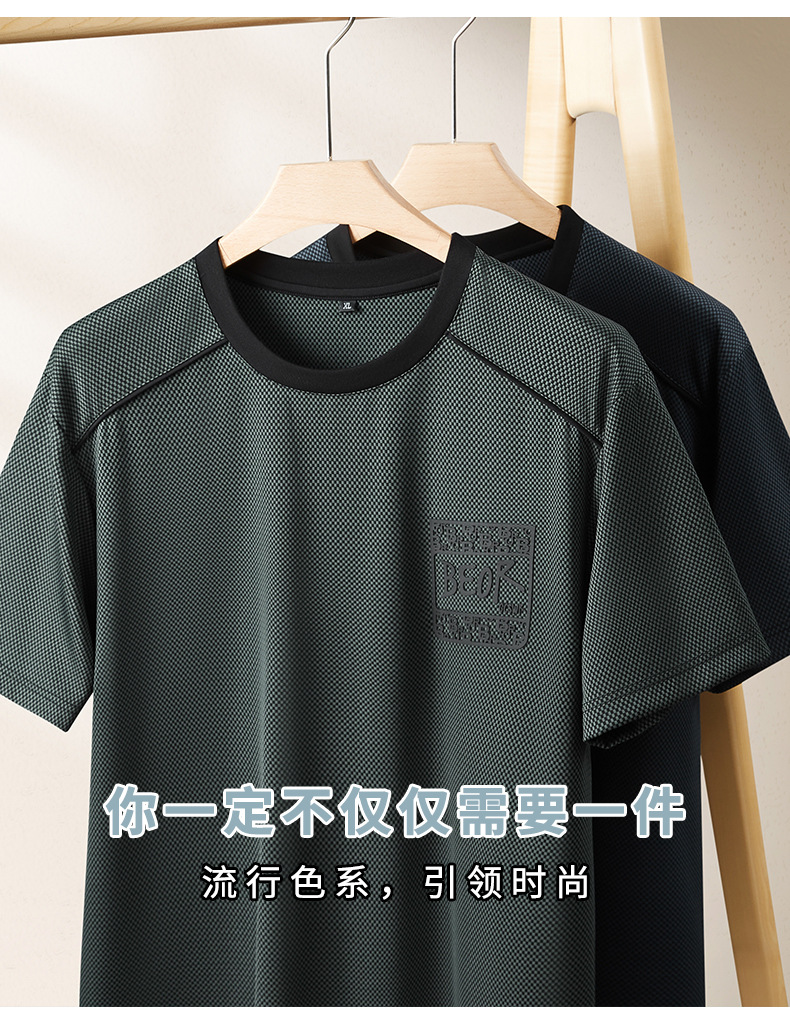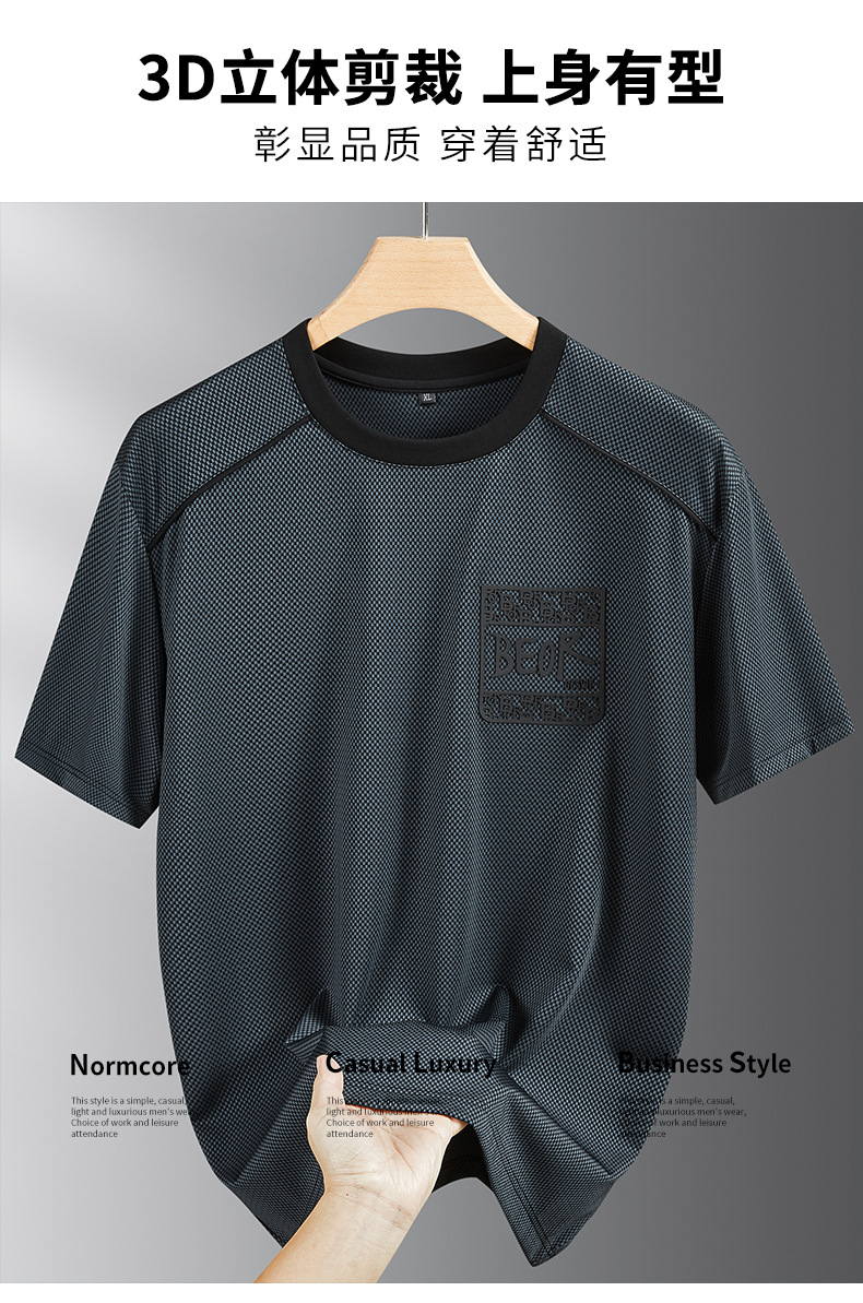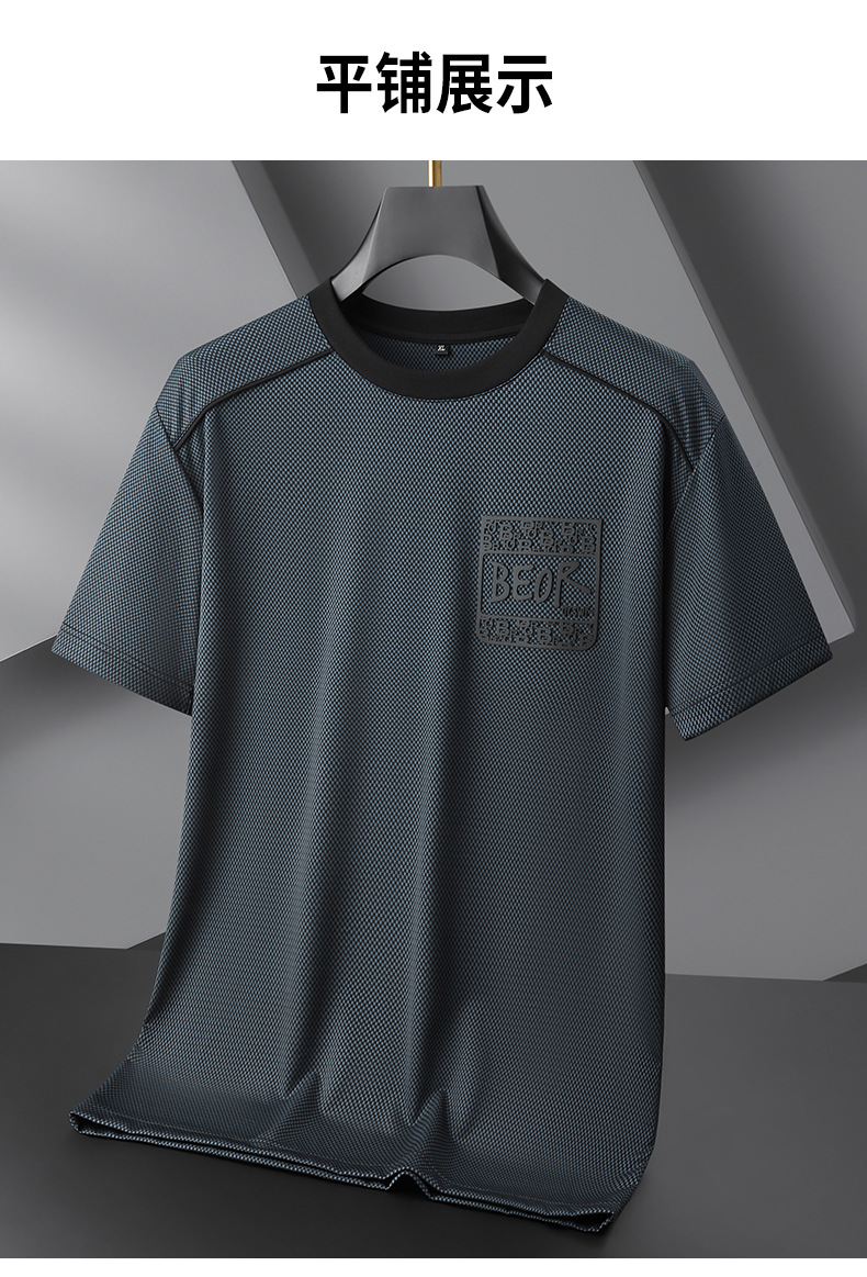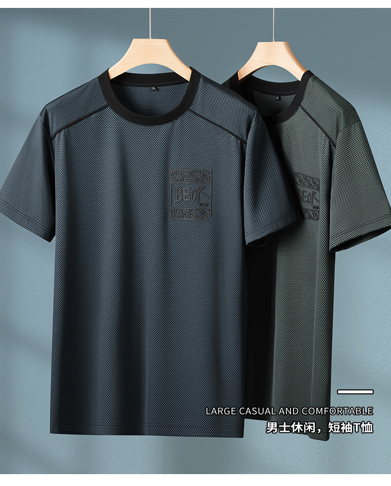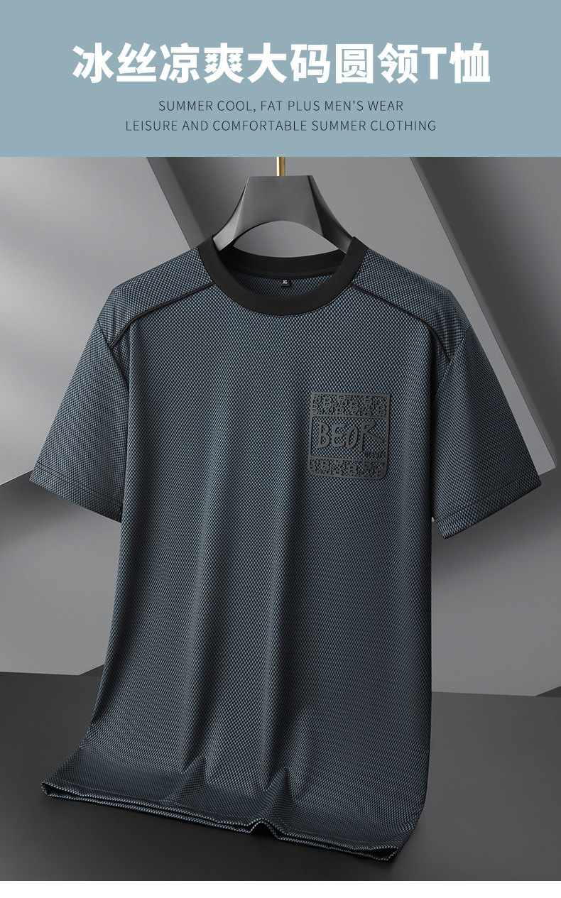 【冰丝】【DPF】大依优型大码短袖T恤圆领夏季薄款冰丝免烫半袖男士大码胖子时尚运动休闲上衣