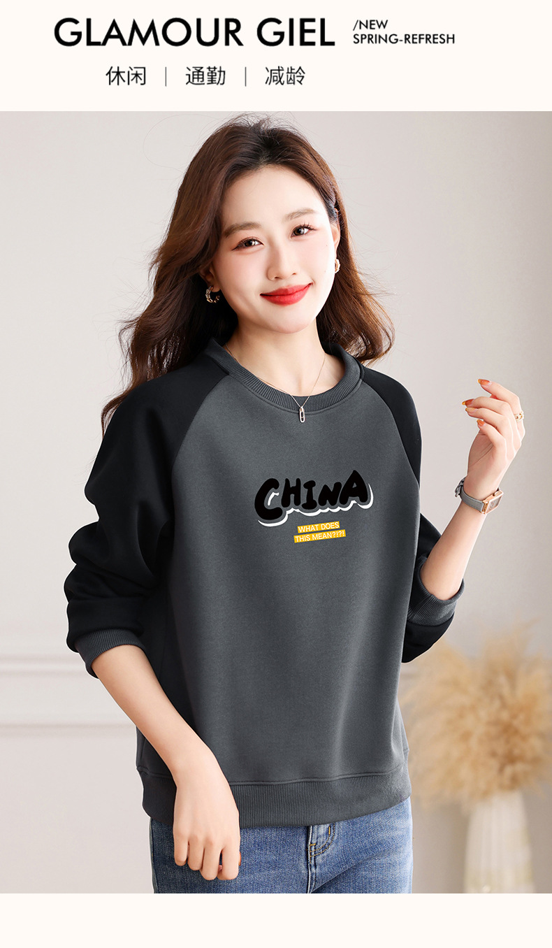 雀说长袖卫衣女薄款宽松拼接休闲洋气遮肉减龄打底衫上衣AL0903