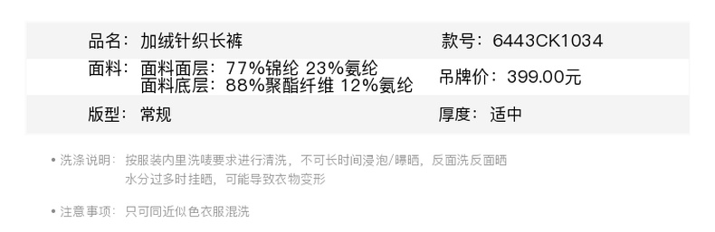卡尔美旷野之幕系列冬季新款男加绒针织长裤