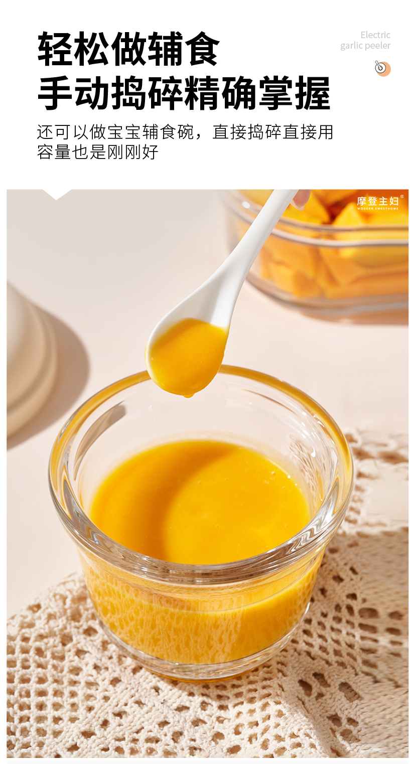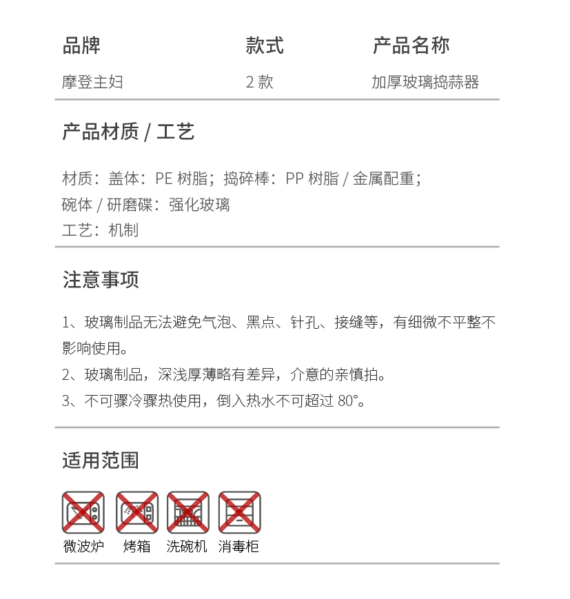 摩登主妇玻璃捣蒜器蒜泥神器家用蒜末辅食研磨碗蒜臼子粉碎打蒜器