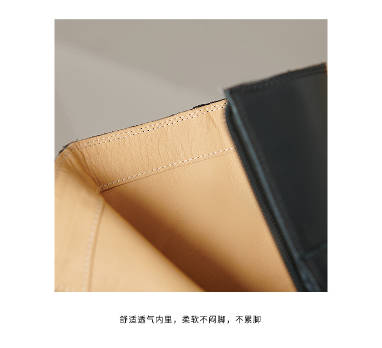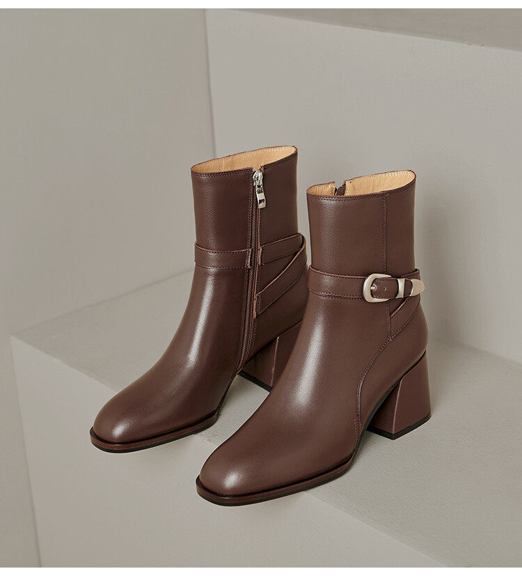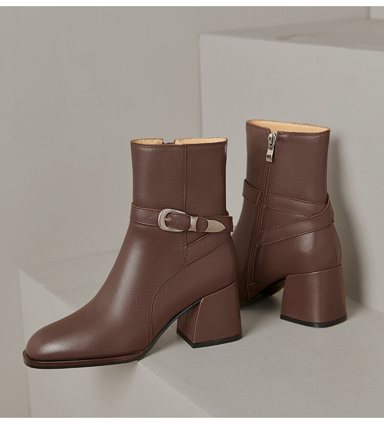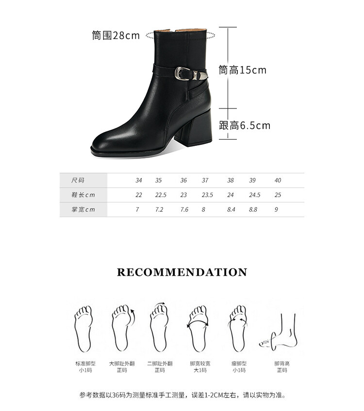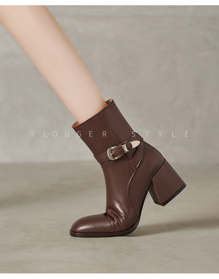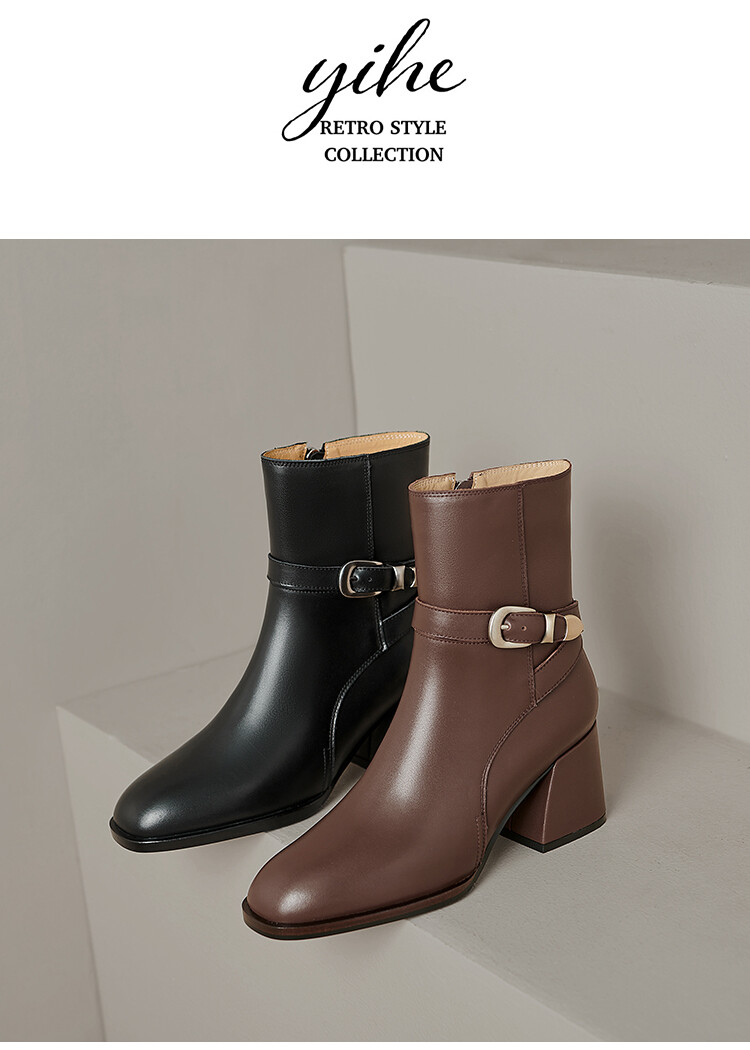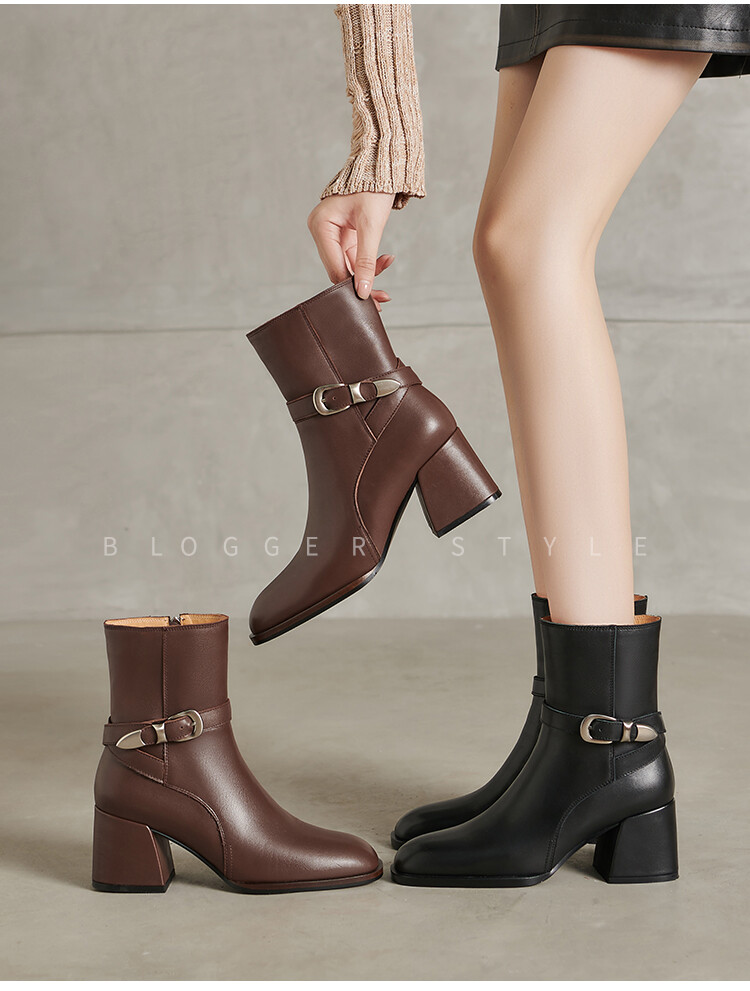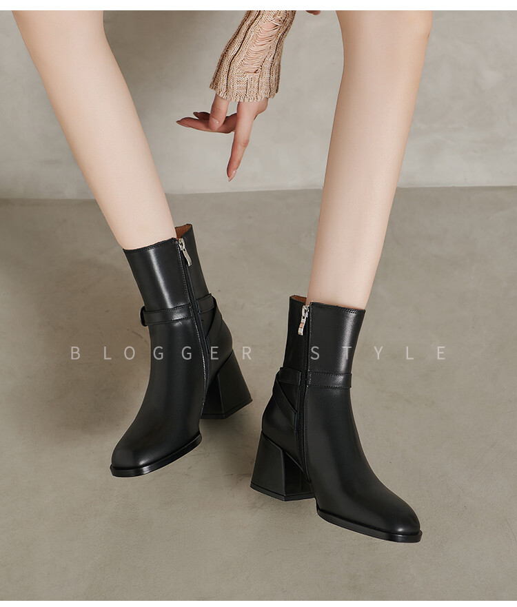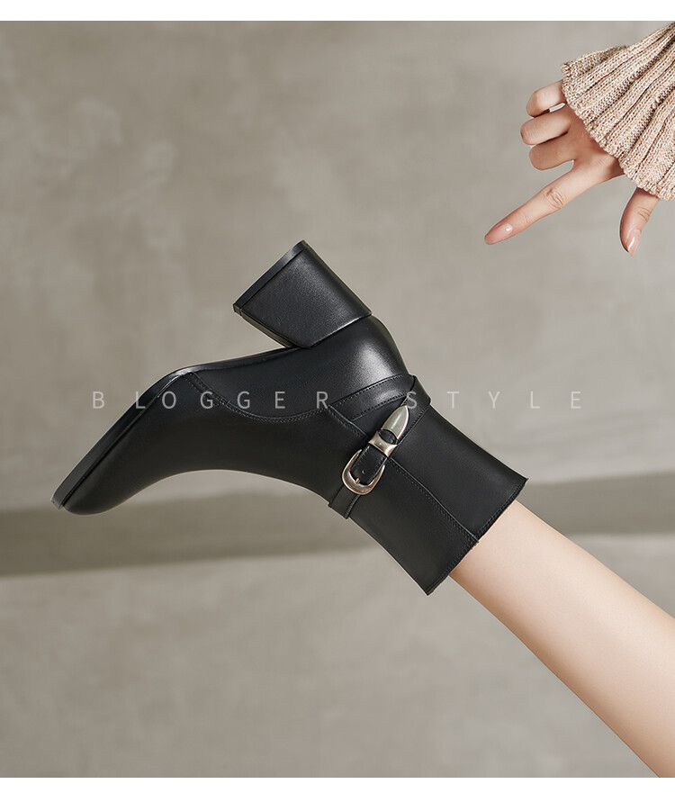 【预售5天】百搭拉链真皮粗跟圆头,切尔西靴皮带扣英伦性感短筒女靴QS&6057