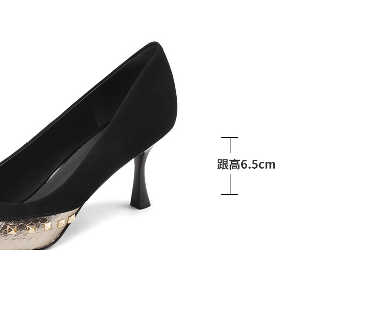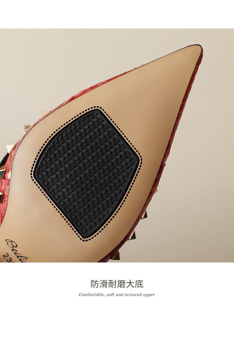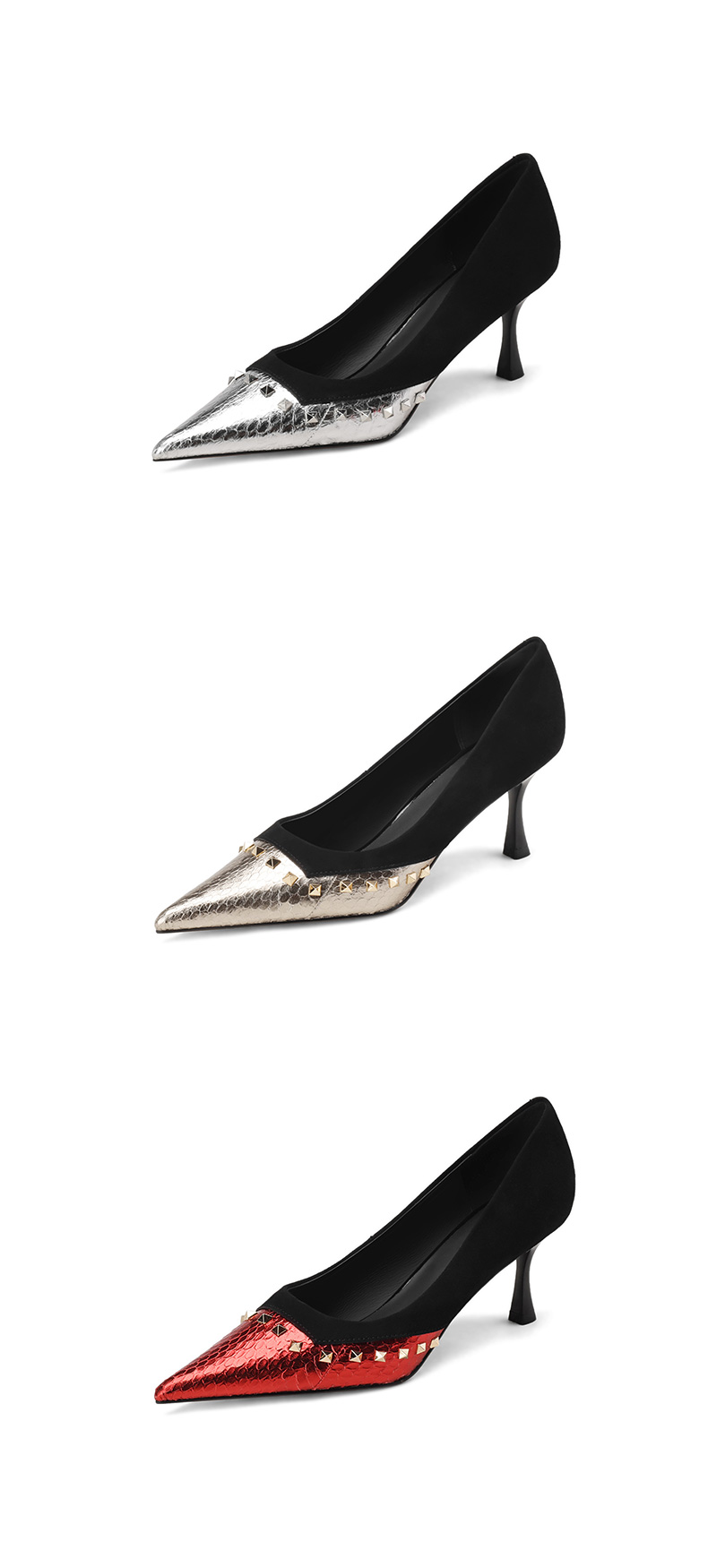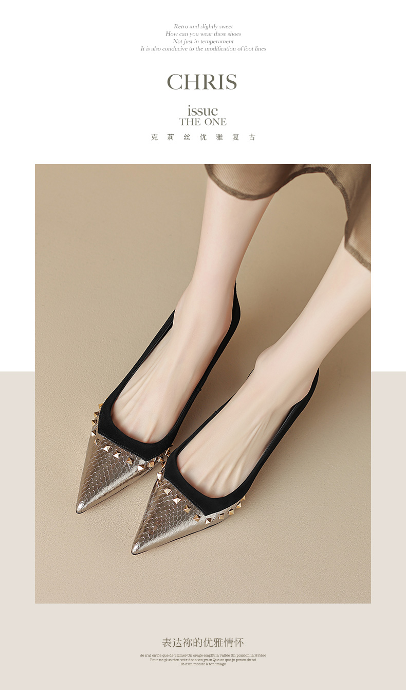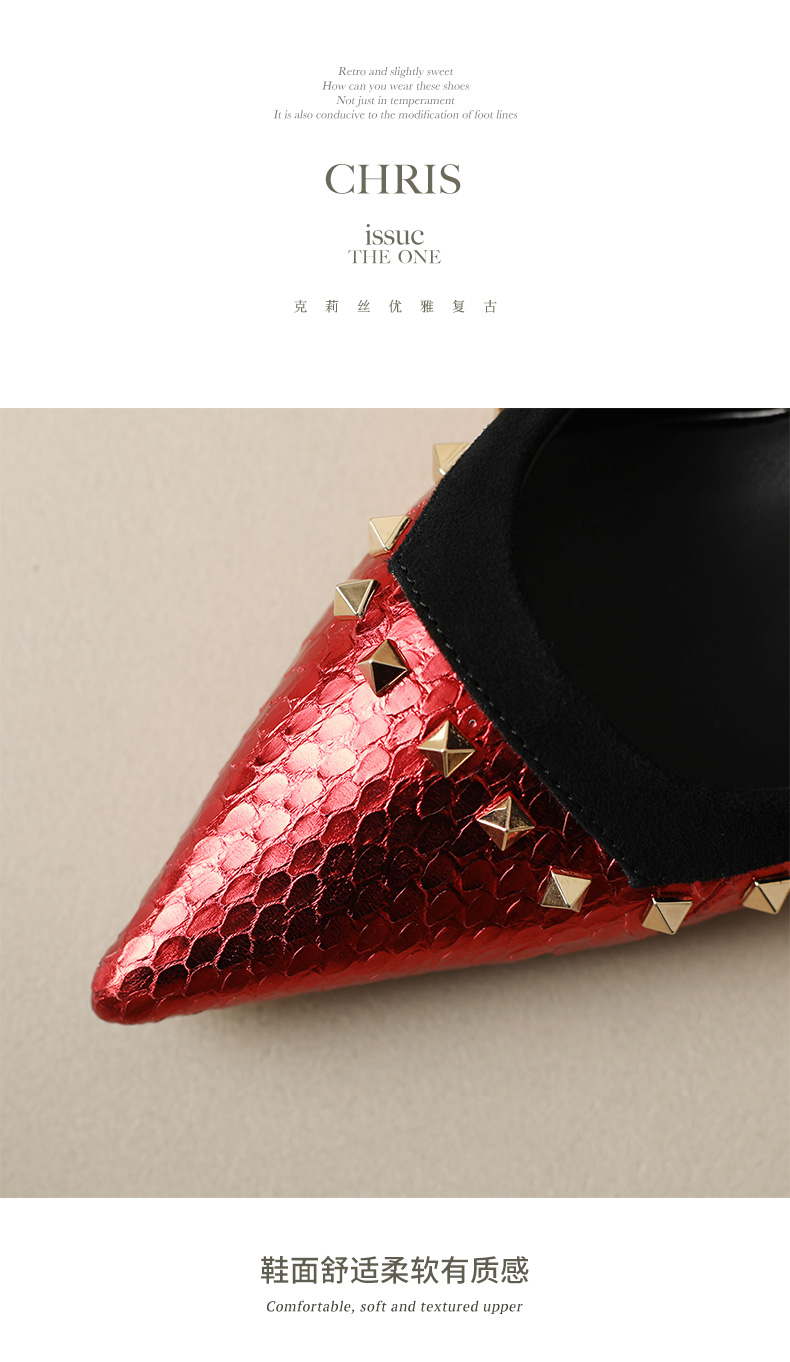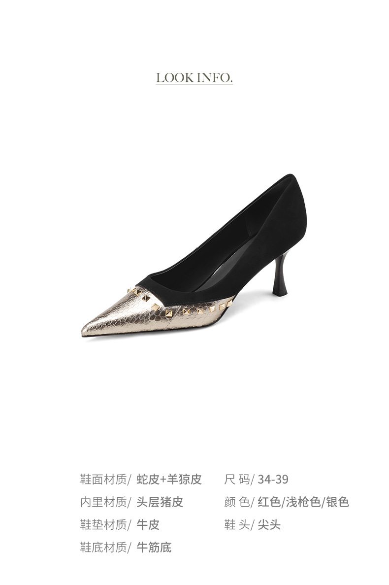 性感优雅,尖头蛇皮铆钉浅口单鞋ZF3529