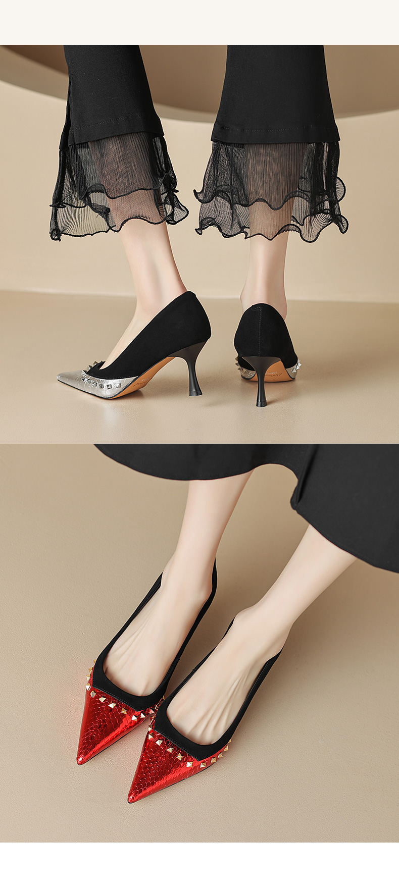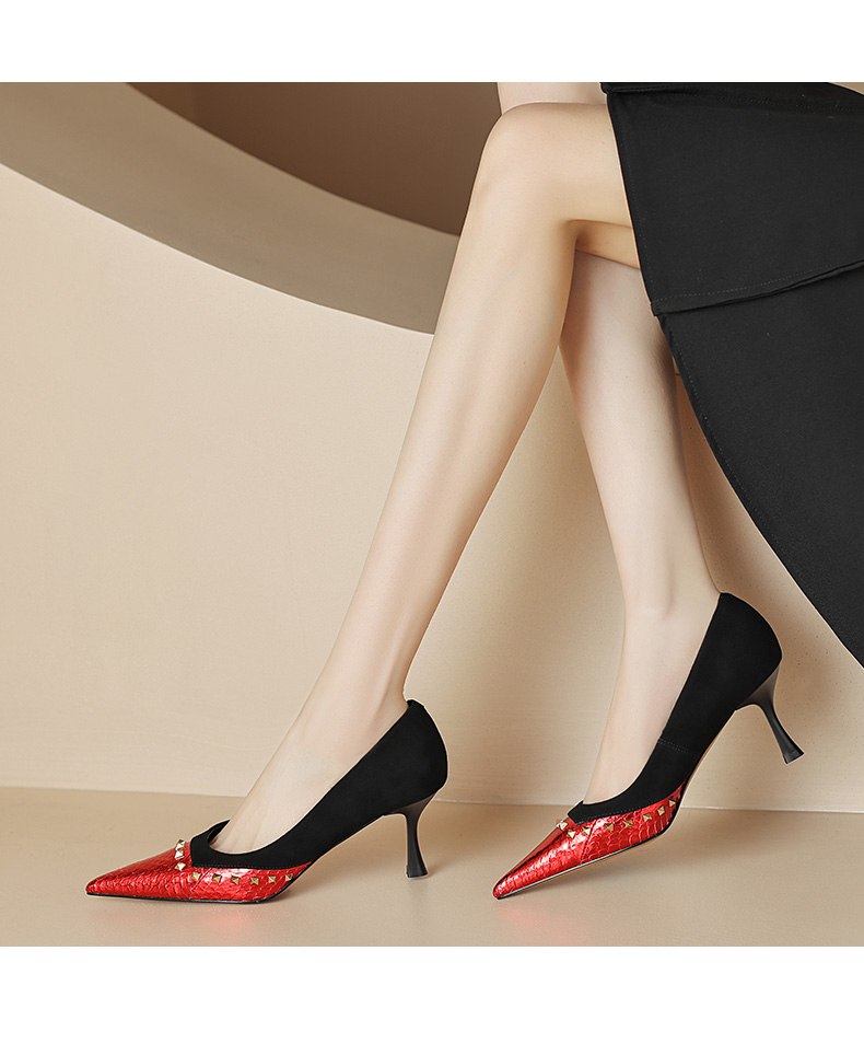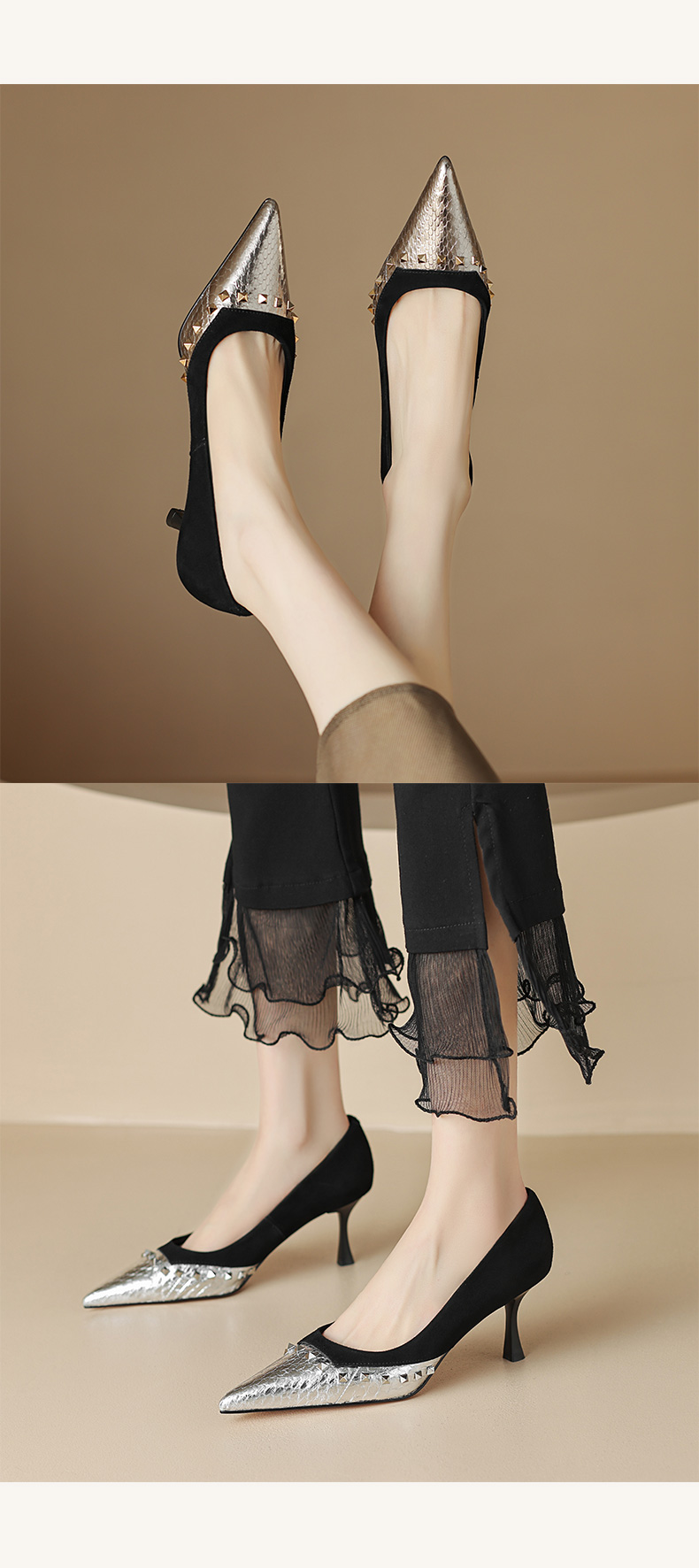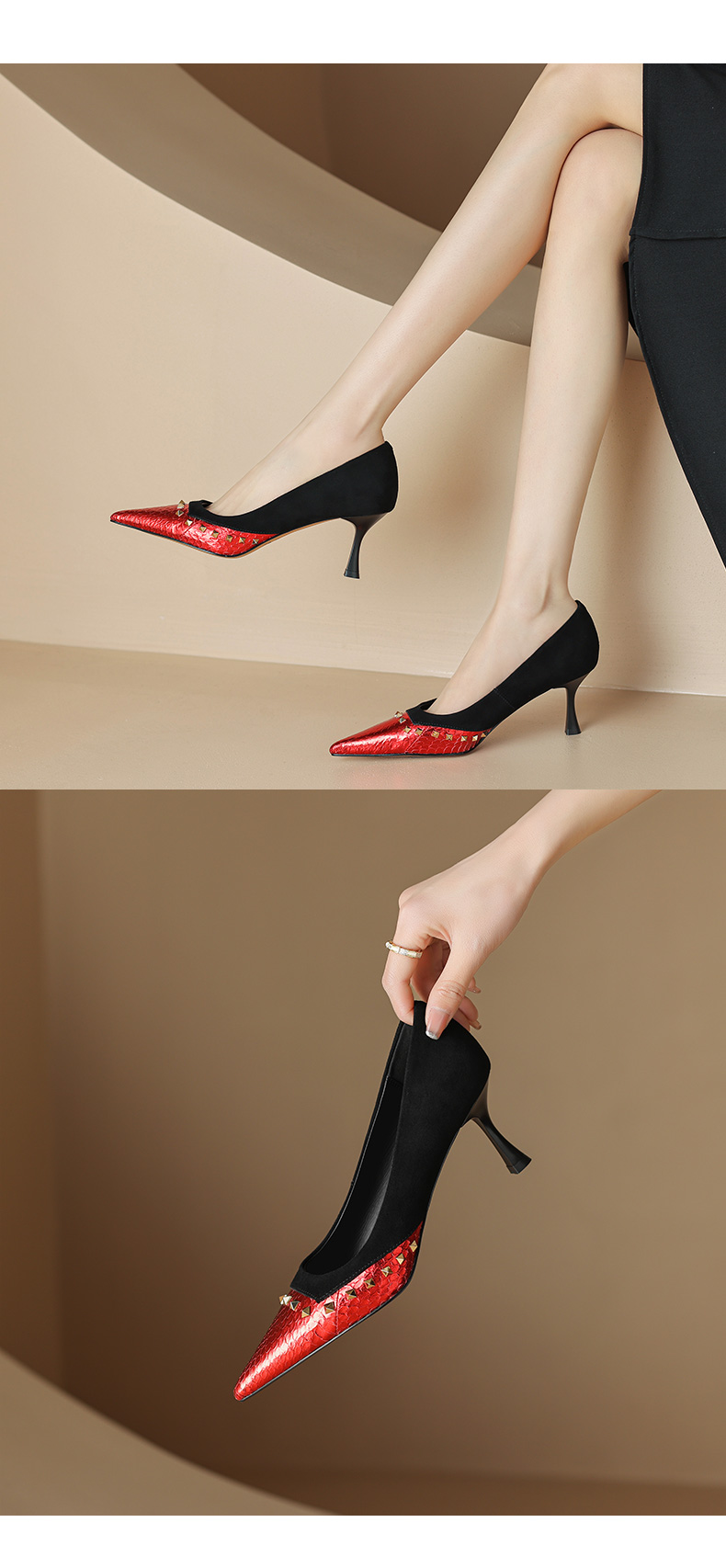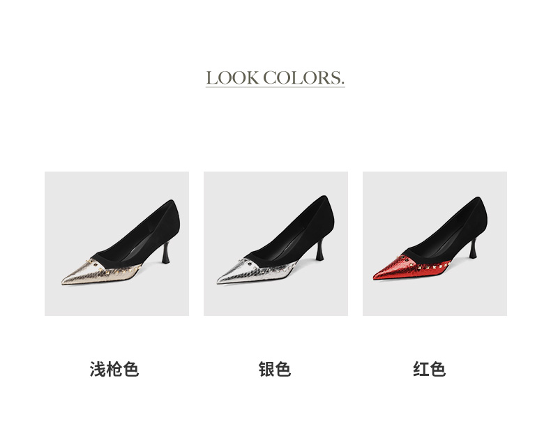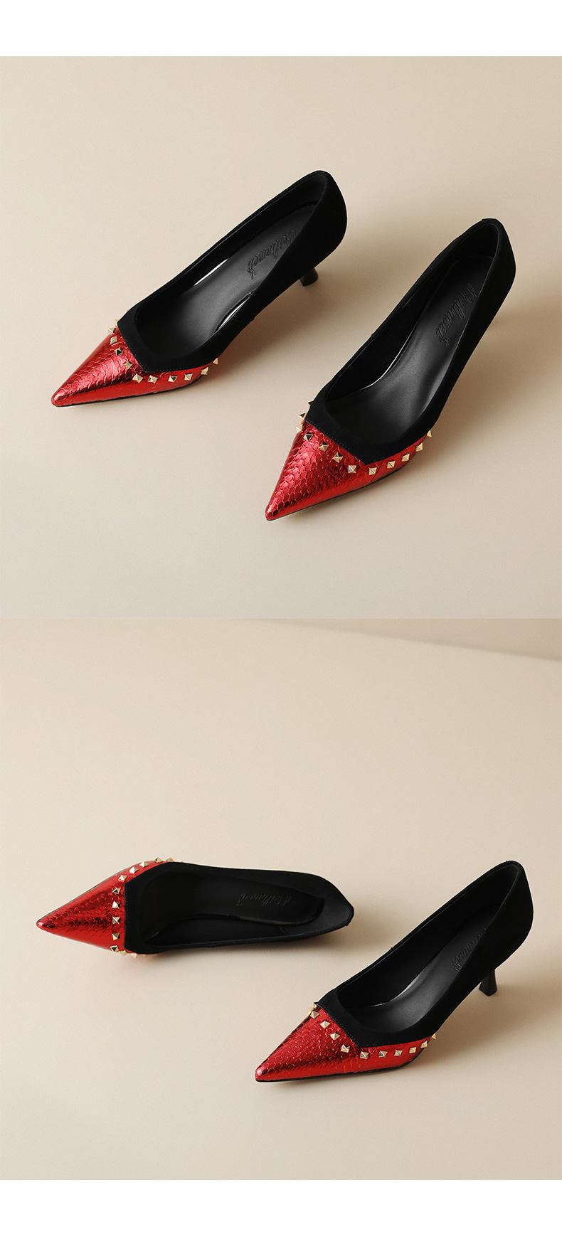 性感优雅,尖头蛇皮铆钉浅口单鞋ZF3529