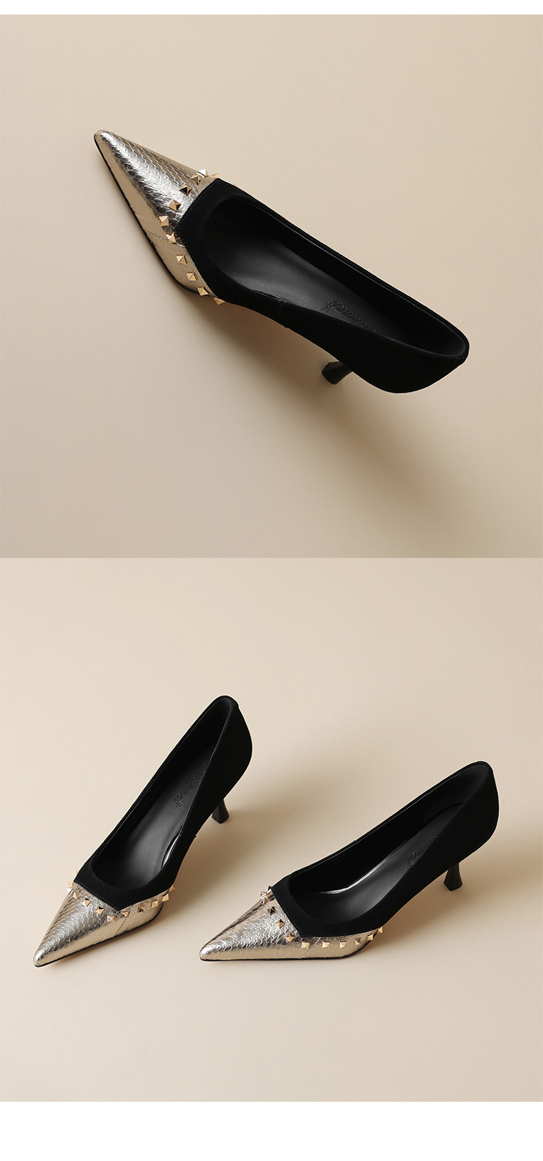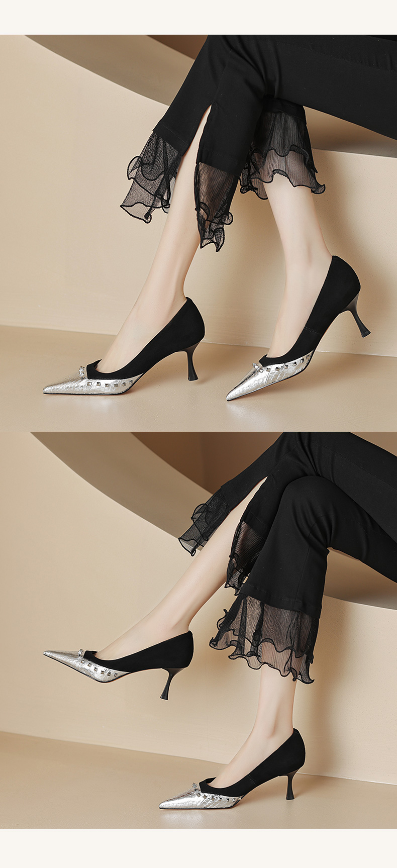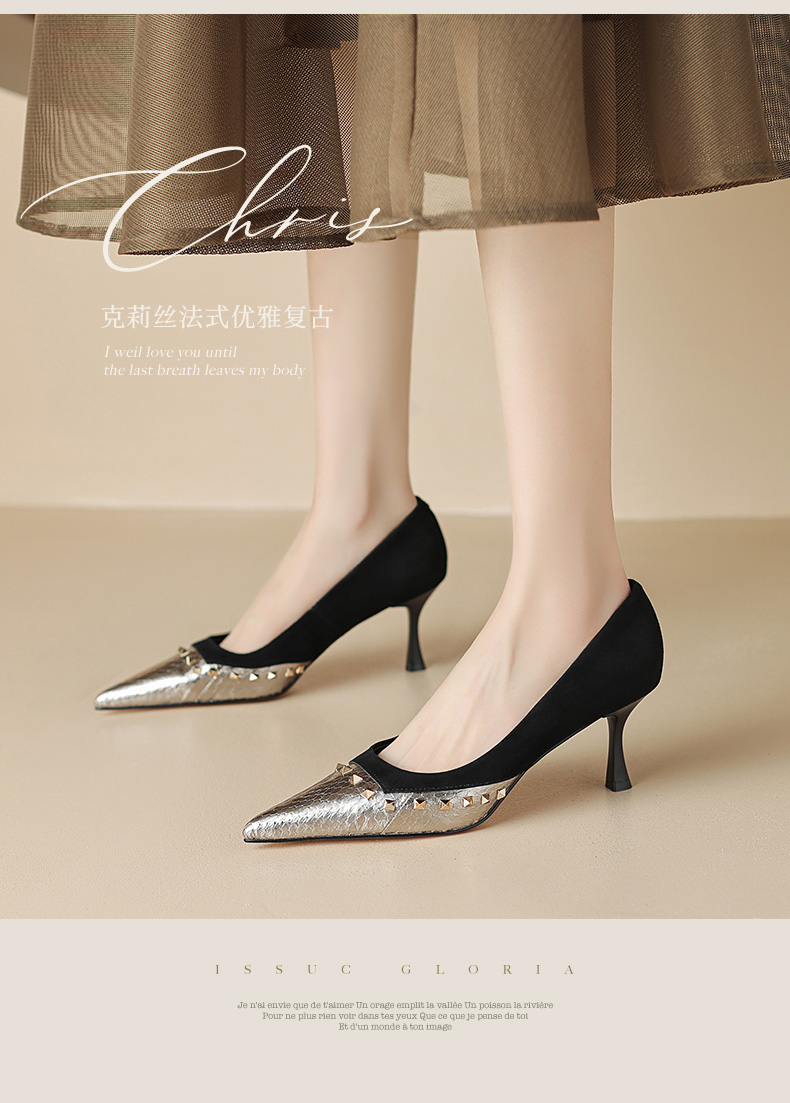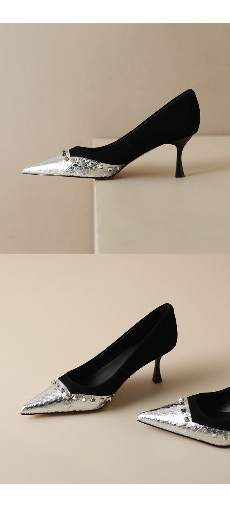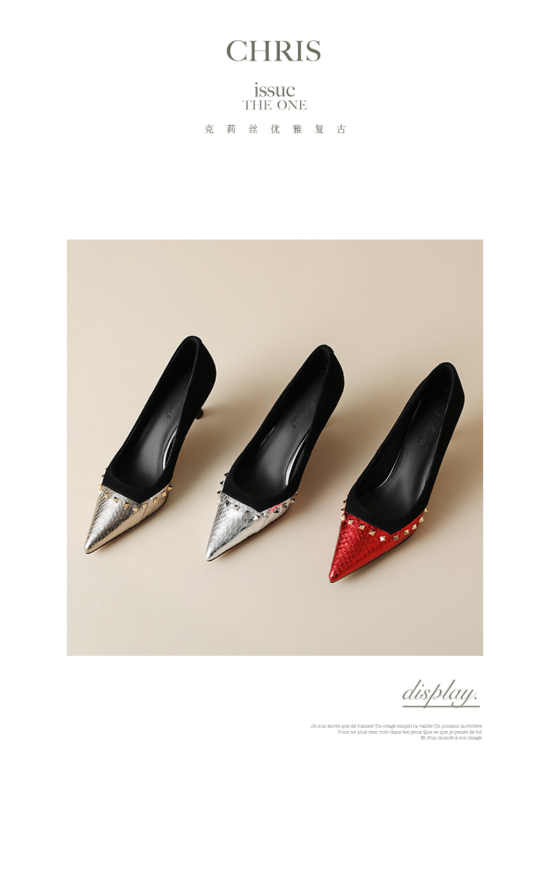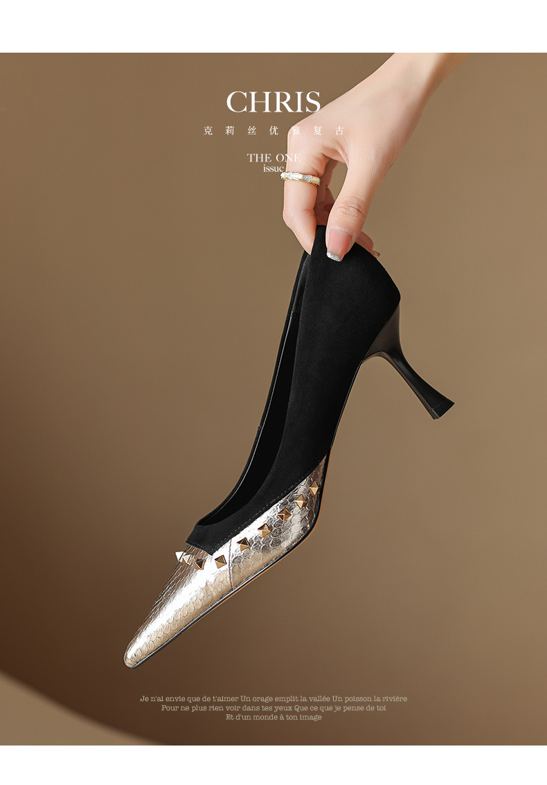 性感优雅,尖头蛇皮铆钉浅口单鞋ZF3529