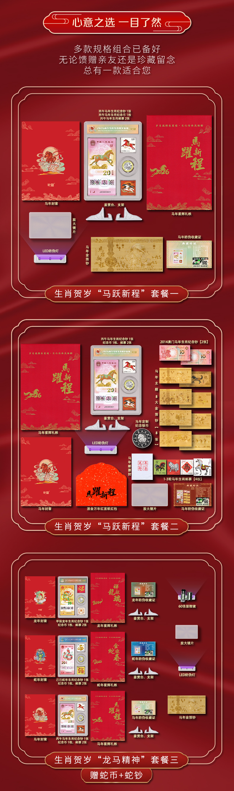 【预售爆抢马钞币 生肖邮币钞 2026年礼】马跃新程 祥云献瑞 生肖贺岁星辉系列套装(1月21日陆续发货,购买任意规格赠送随机面额蒙古马钞一张)