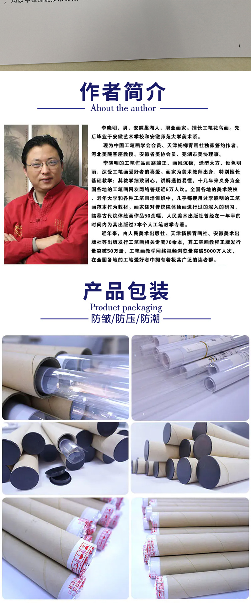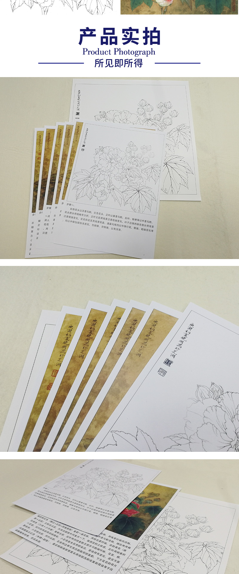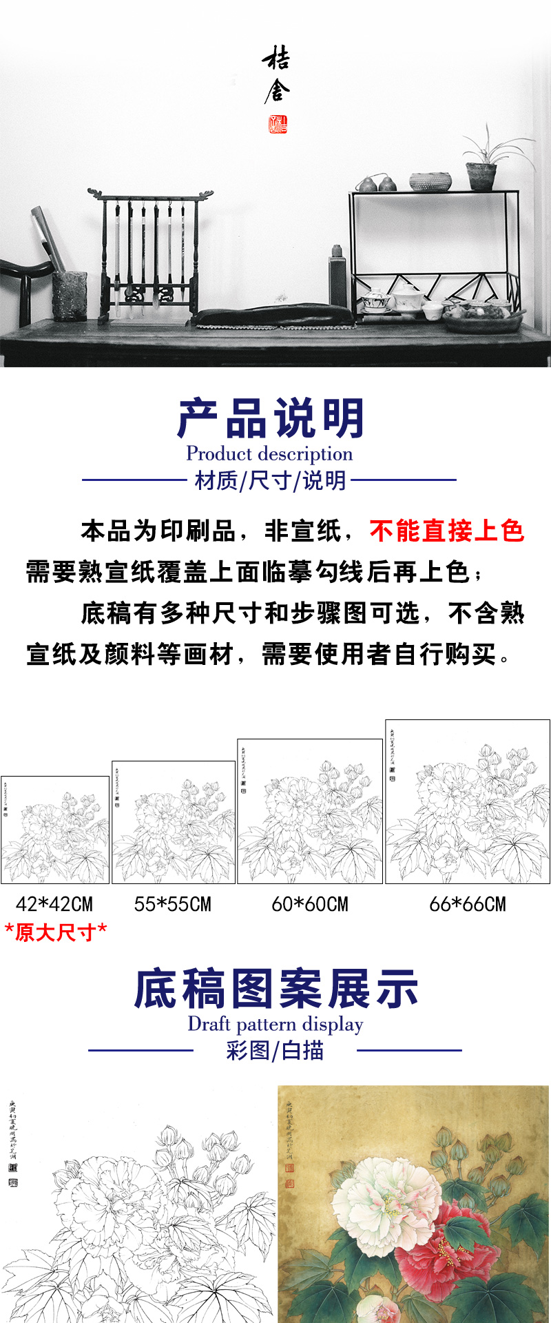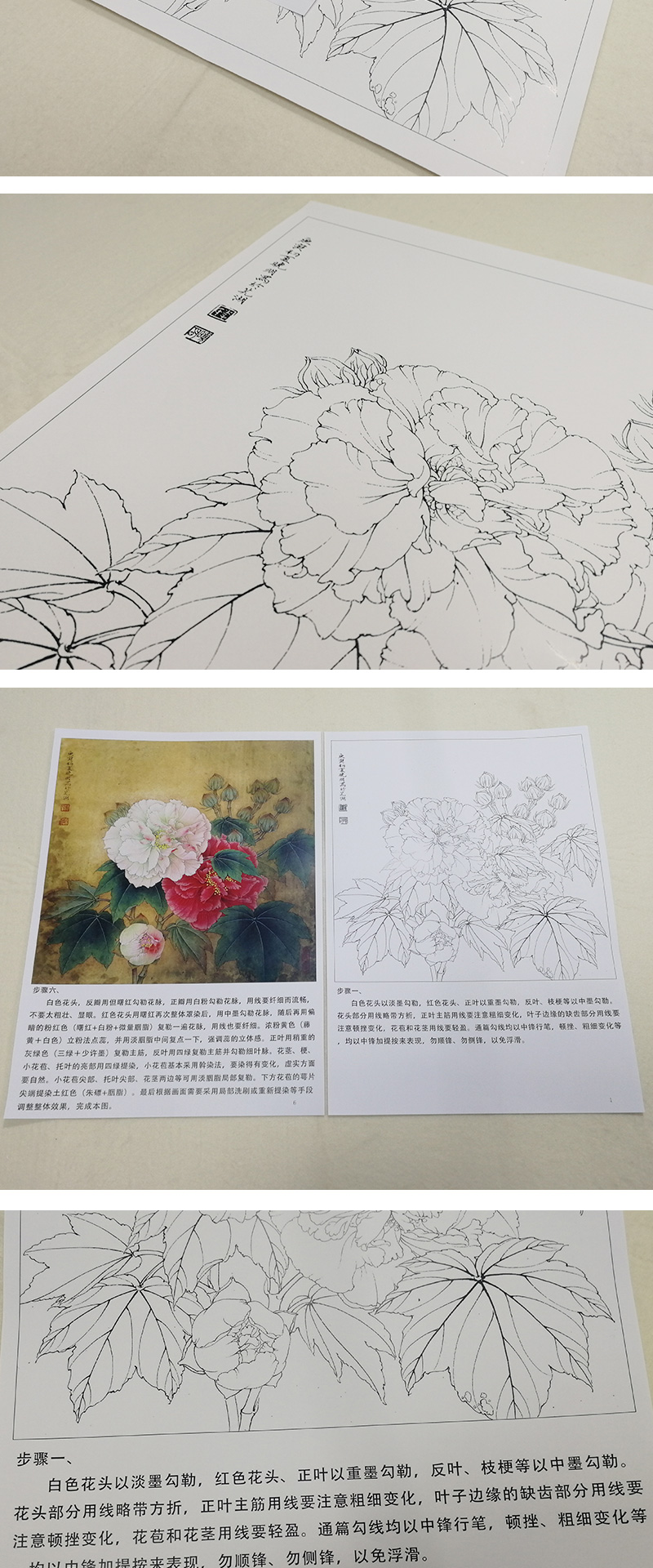 【有步骤、大彩图】李晓明工笔画白描底稿斗方小品《双色芙蓉图》临摹勾线花鸟线稿KB23