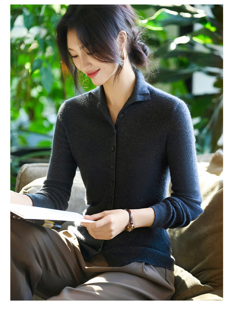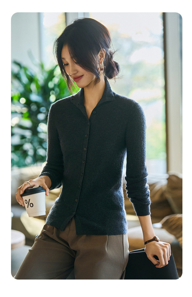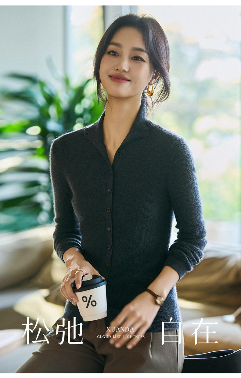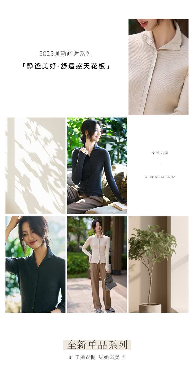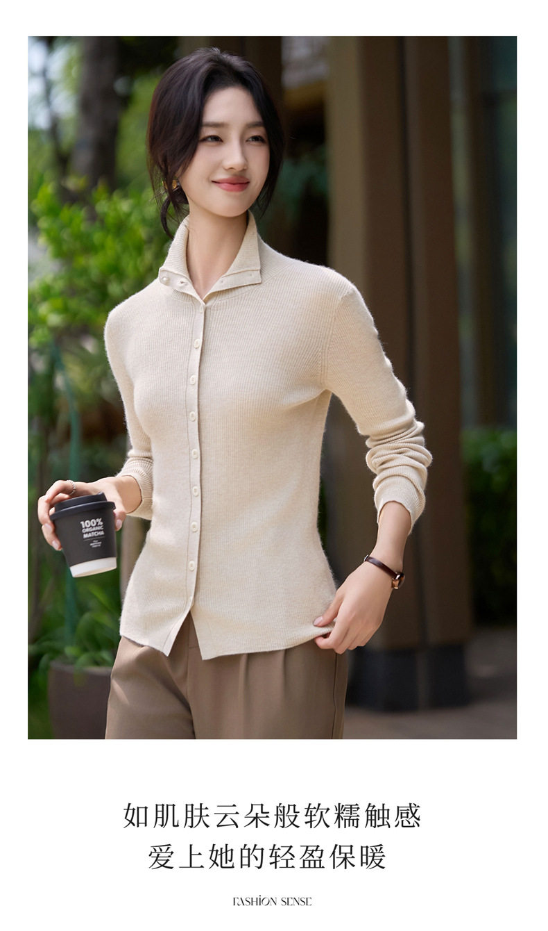 「自」全新升级【铂金会员183/天猫249/差价66】(11220)洛诗琳真丝羊绒混纺半高领毛衣2025冬季坑条显瘦纯色百搭针织开衫