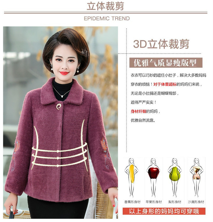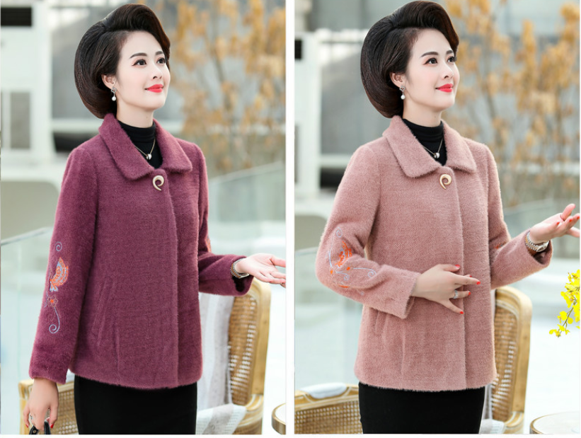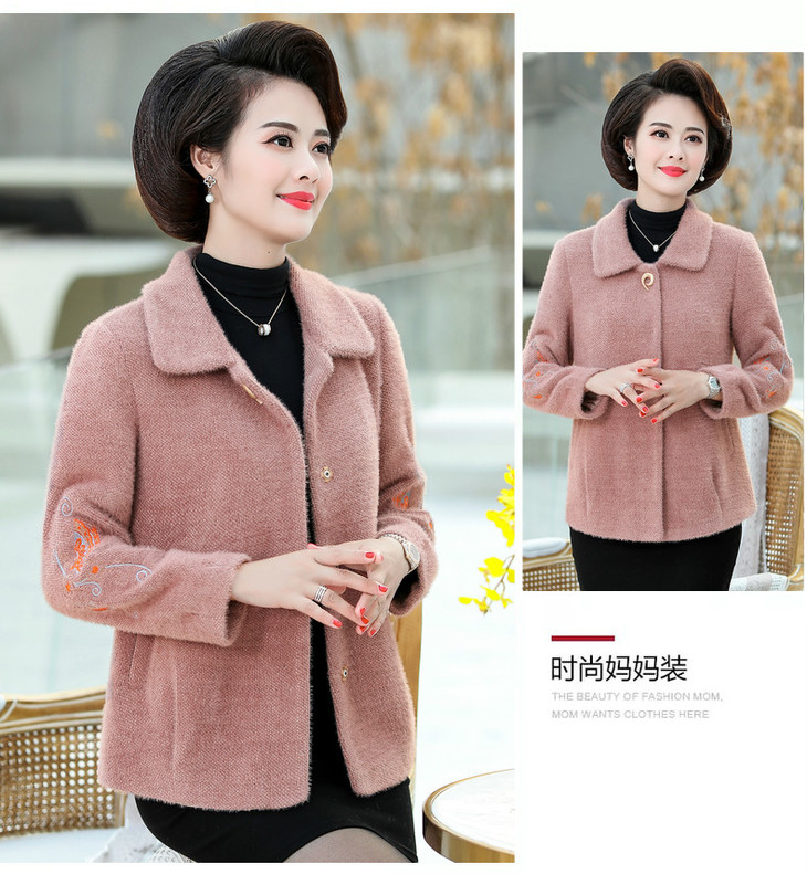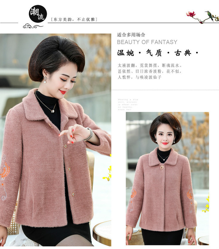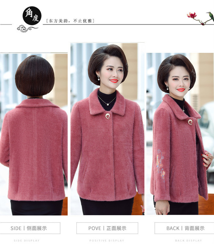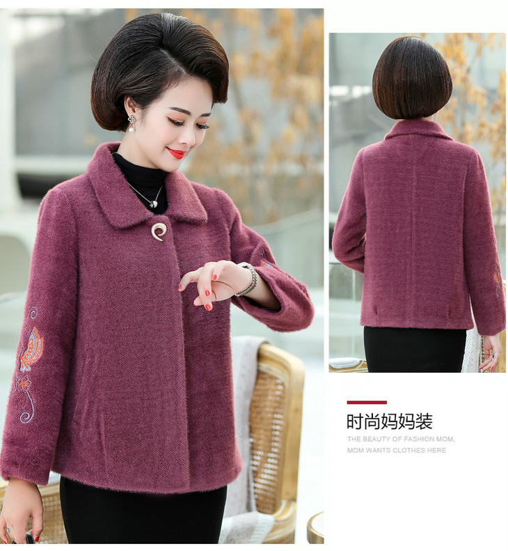 DQ-54174新品妈妈呢子秋冬装洋气水貂绒毛呢外套