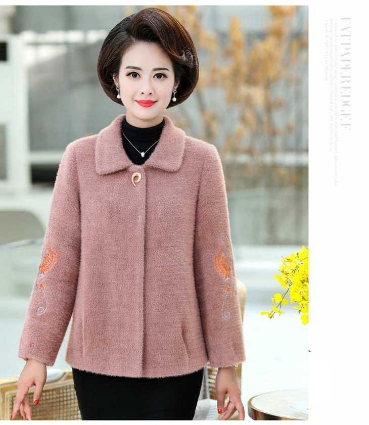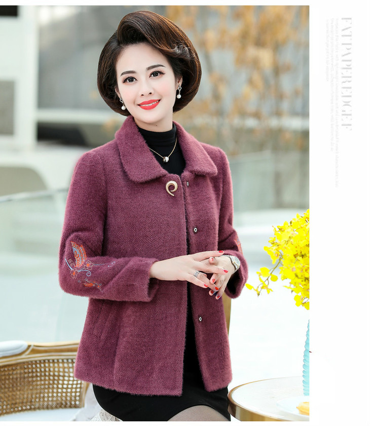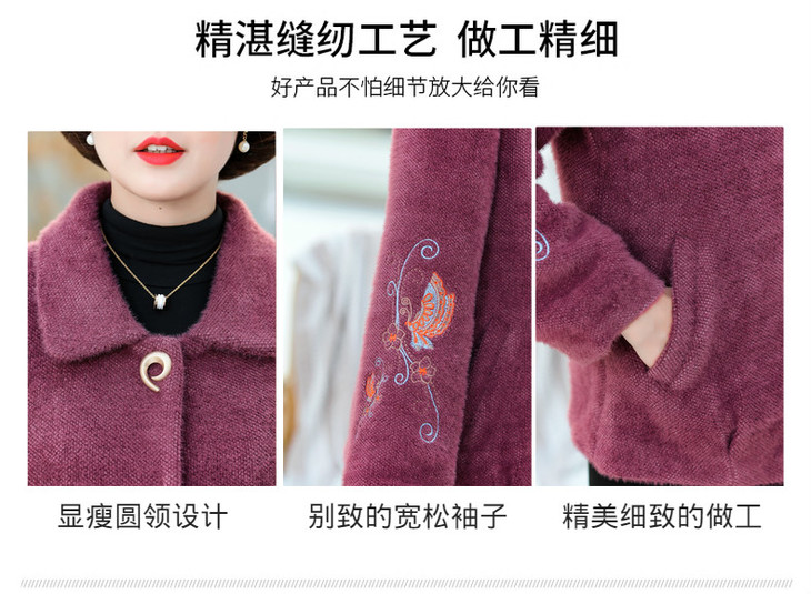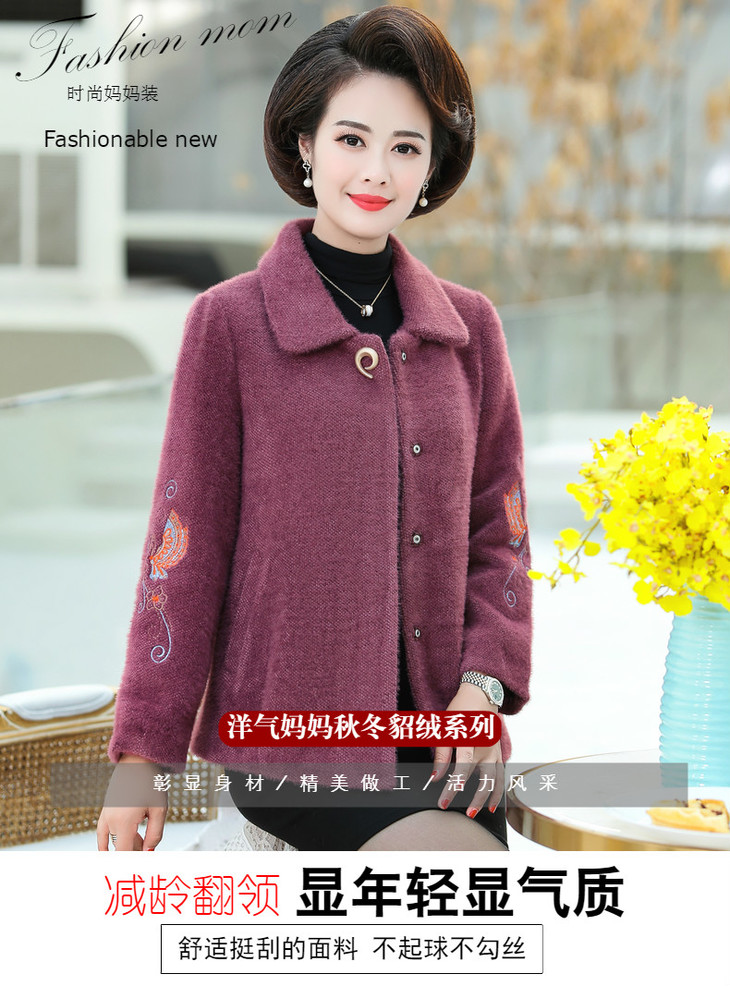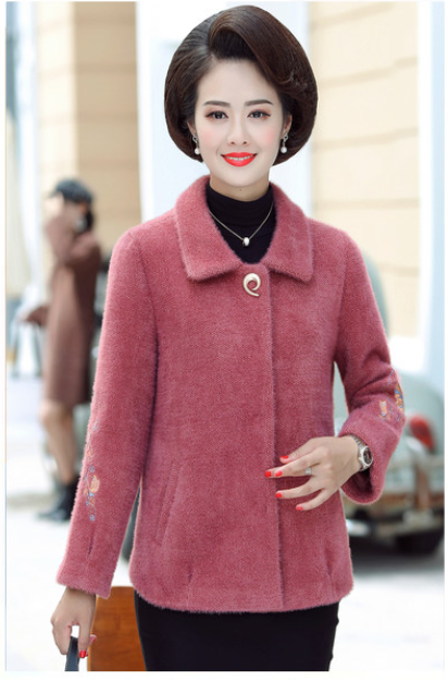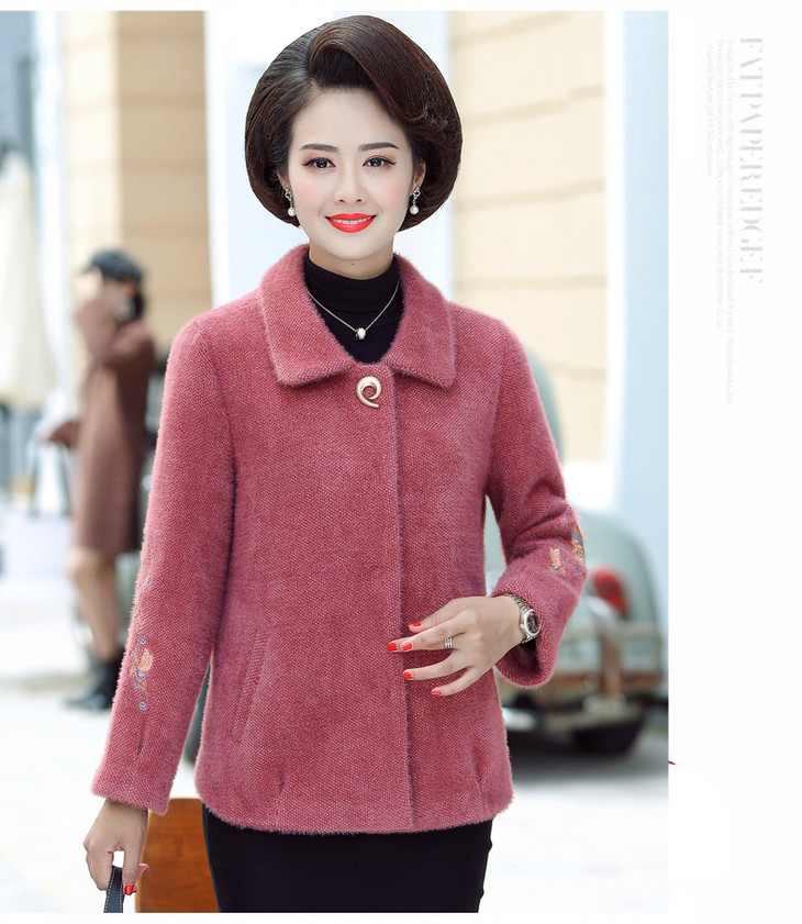 DQ-54174新品妈妈呢子秋冬装洋气水貂绒毛呢外套